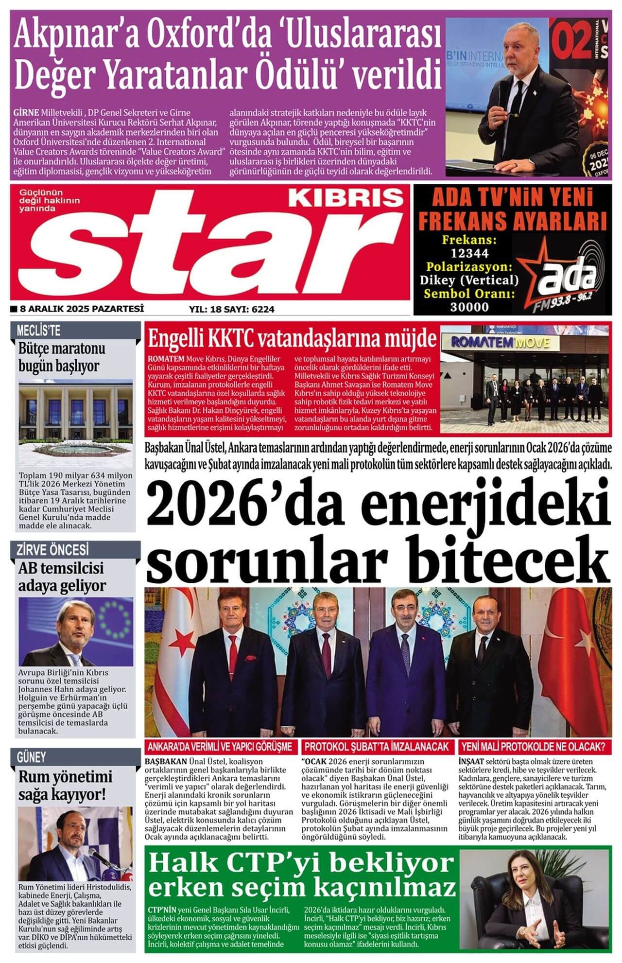 Sitede yayınlanan gazetelerdeki içeriklerden gazete sahipleri sorumludur. Yayınlanan gazeteler ve içeriklerinden Kıbrıs Haber Ajans ve Ajans Cyprus sorumlu tutulamaz.