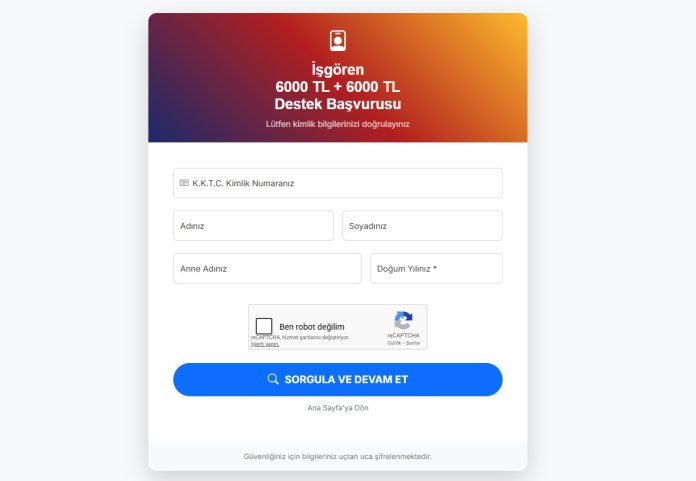 Çalışma ve Sosyal Güvenlik Bakanlığı tarafından duyurulan destek kapsamında, sigorta primleri asgari ücret üzerinden yatırılan KKTC vatandaşı çalışanlara, Şubat ve Mart 2026 aylarında iki taksit halinde toplam 12.000 TL ödeme yapılacağı açıklanmıştı. Başvuruların ise ihtiyat.gov.ct.tr adresi üzerinden oluşturulan online portal aracılığıyla alınacağı duyuruldu.