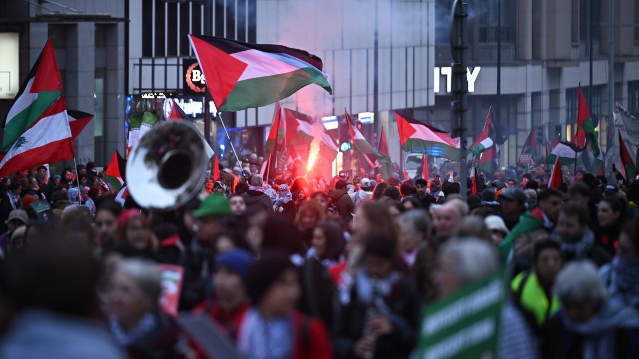 “Sivilleri bombalamak meşru müdafaa değil. Soykırıma hayır de!”, “Kurtuluşa erişene kadar direniş!” ve “Filistin için ayağa kalkın!” yazılı dövizler taşıyan göstericiler, Belçika hükümetini İsrail’e karşı kapsamlı askeri ambargo uygulamaya davet etti.