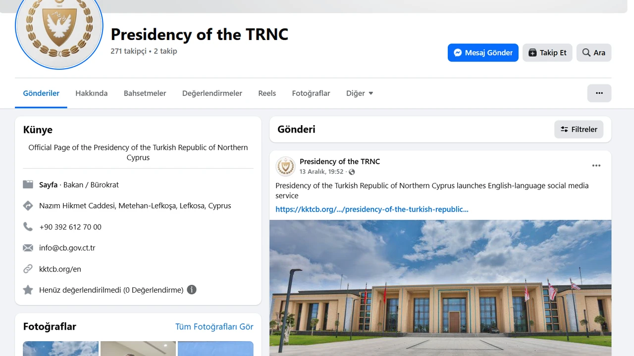 Facebook: Presidency of the TRNC