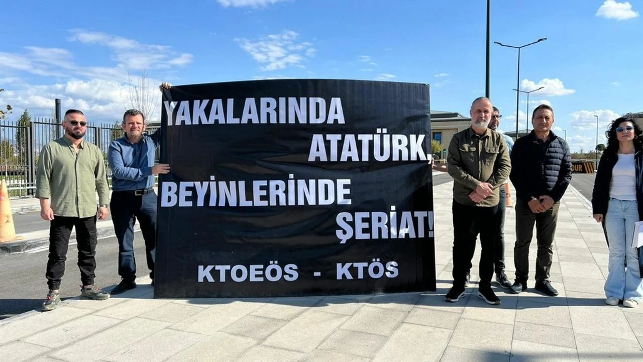 Kıbrıs Türk Öğretmenler Sendikası (KTÖS) ile Kıbrıs Türk Orta Eğitim Öğretmenler Sendikası (KTOEÖS), Cumhurbaşkanlığı önünde eylem yaptı.