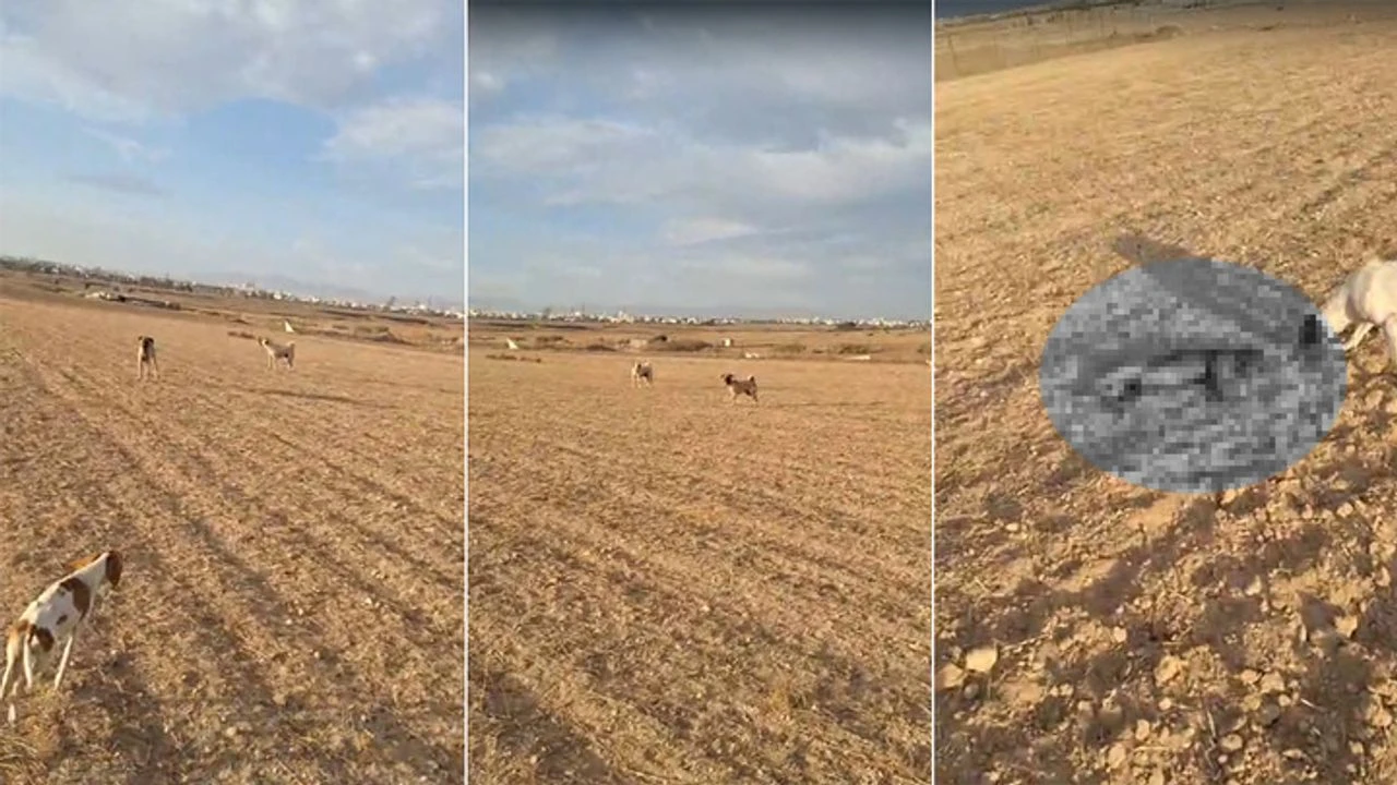 Söz konusu görüntüde, bir av köpeğinin sözü edilen kangallar tarafından parçalandıktan sonraki anlar ve sahibinin gözyaşıyla dolu isyanı görülüyor.