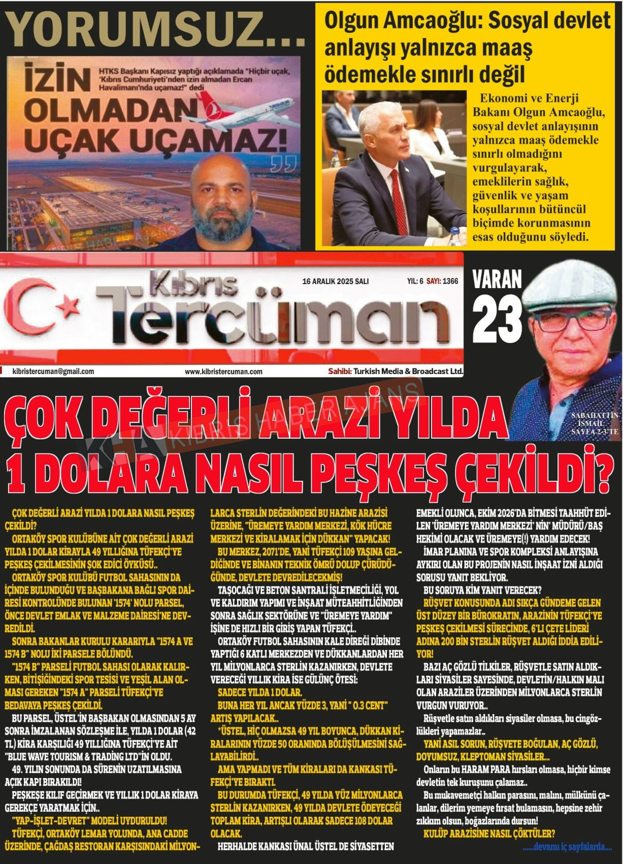 Sitede yayınlanan gazetelerdeki içeriklerden gazete sahipleri sorumludur. Yayınlanan gazeteler ve içeriklerinden Kıbrıs Haber Ajans ve Ajans Cyprus sorumlu tutulamaz.