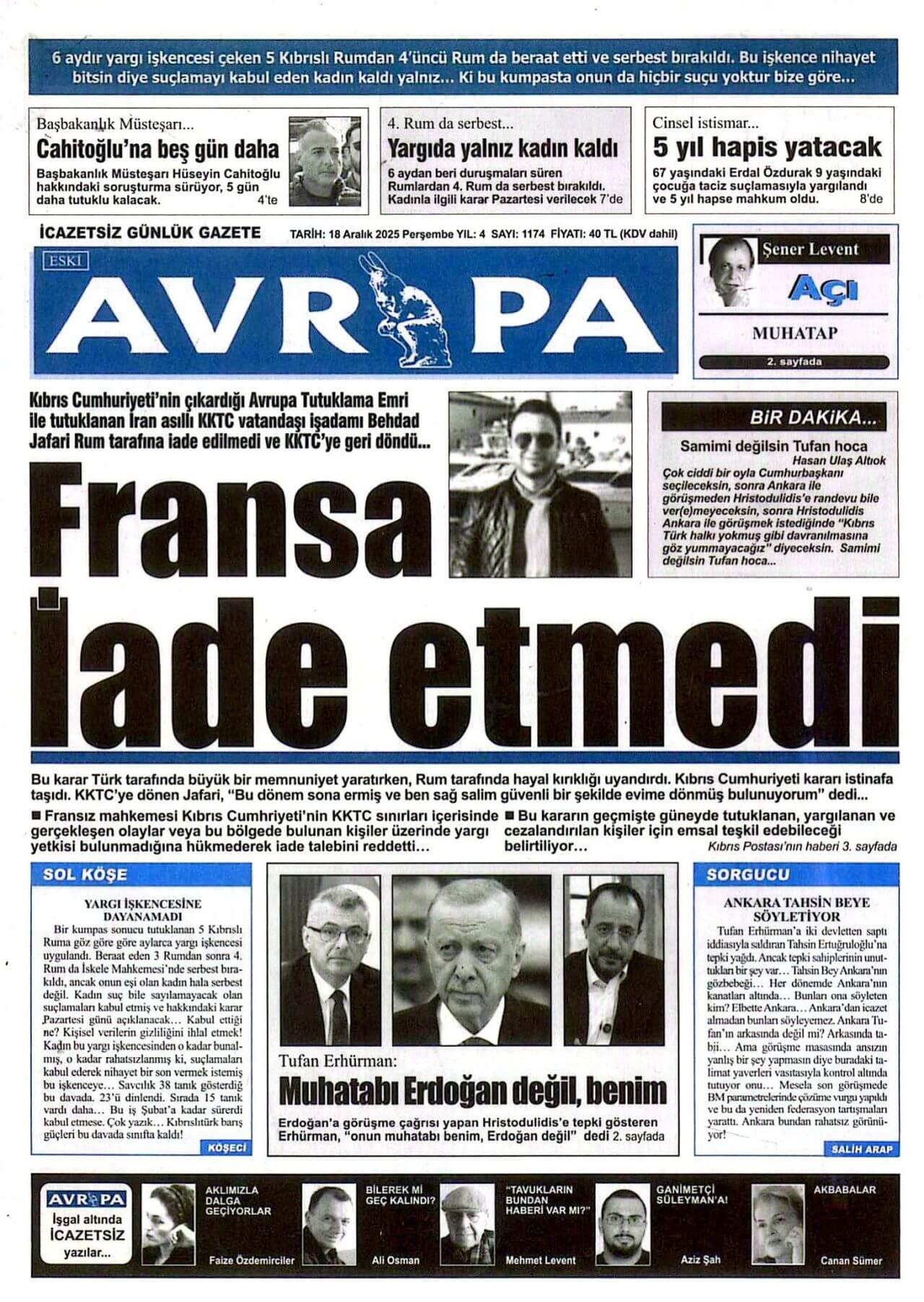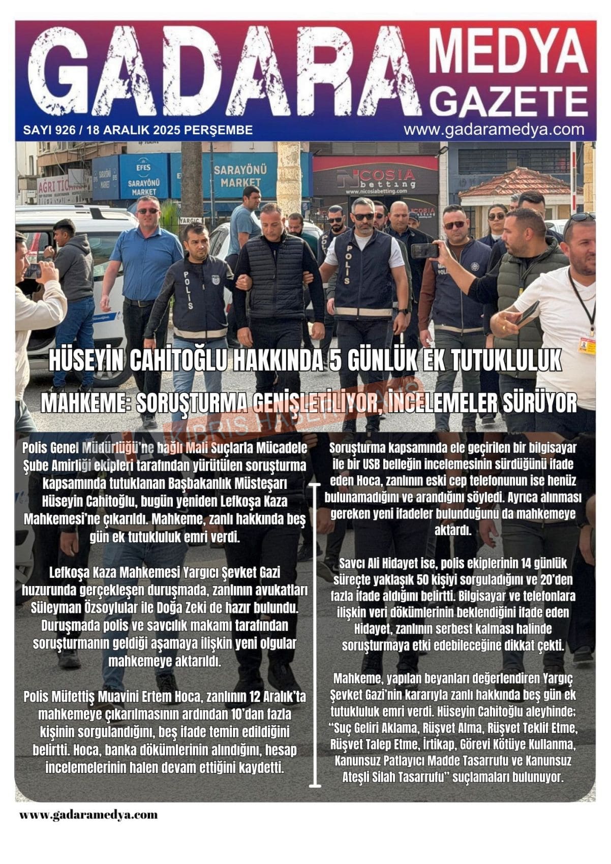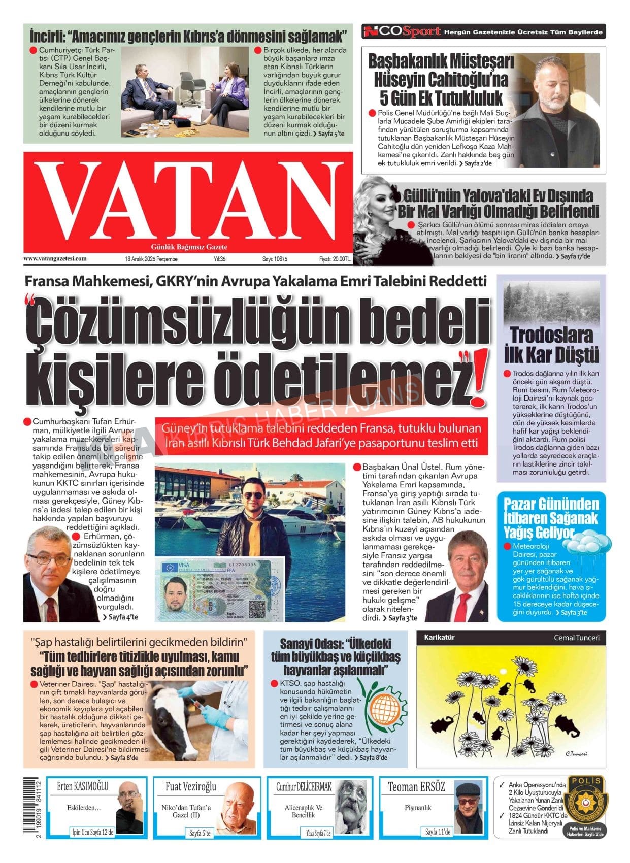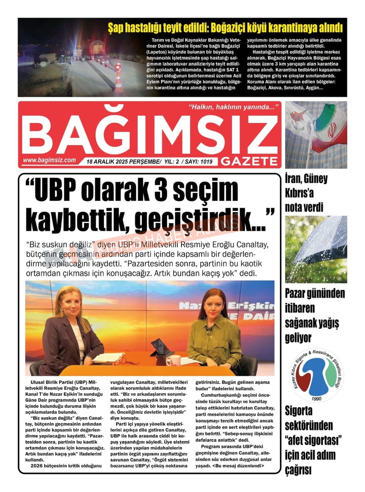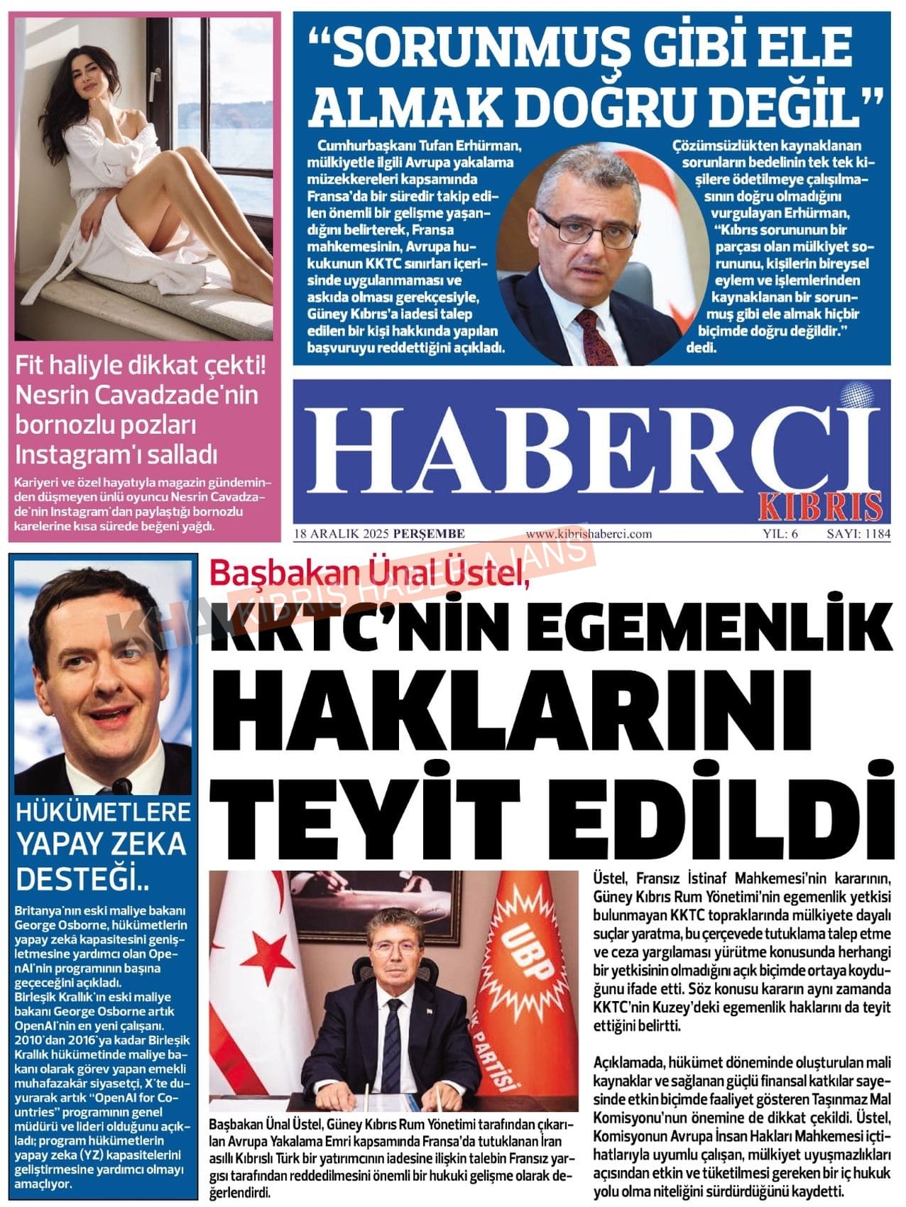 Sitede yayınlanan gazetelerdeki içeriklerden gazete sahipleri sorumludur. Yayınlanan gazeteler ve içeriklerinden Kıbrıs Haber Ajans ve Ajans Cyprus sorumlu tutulamaz.
