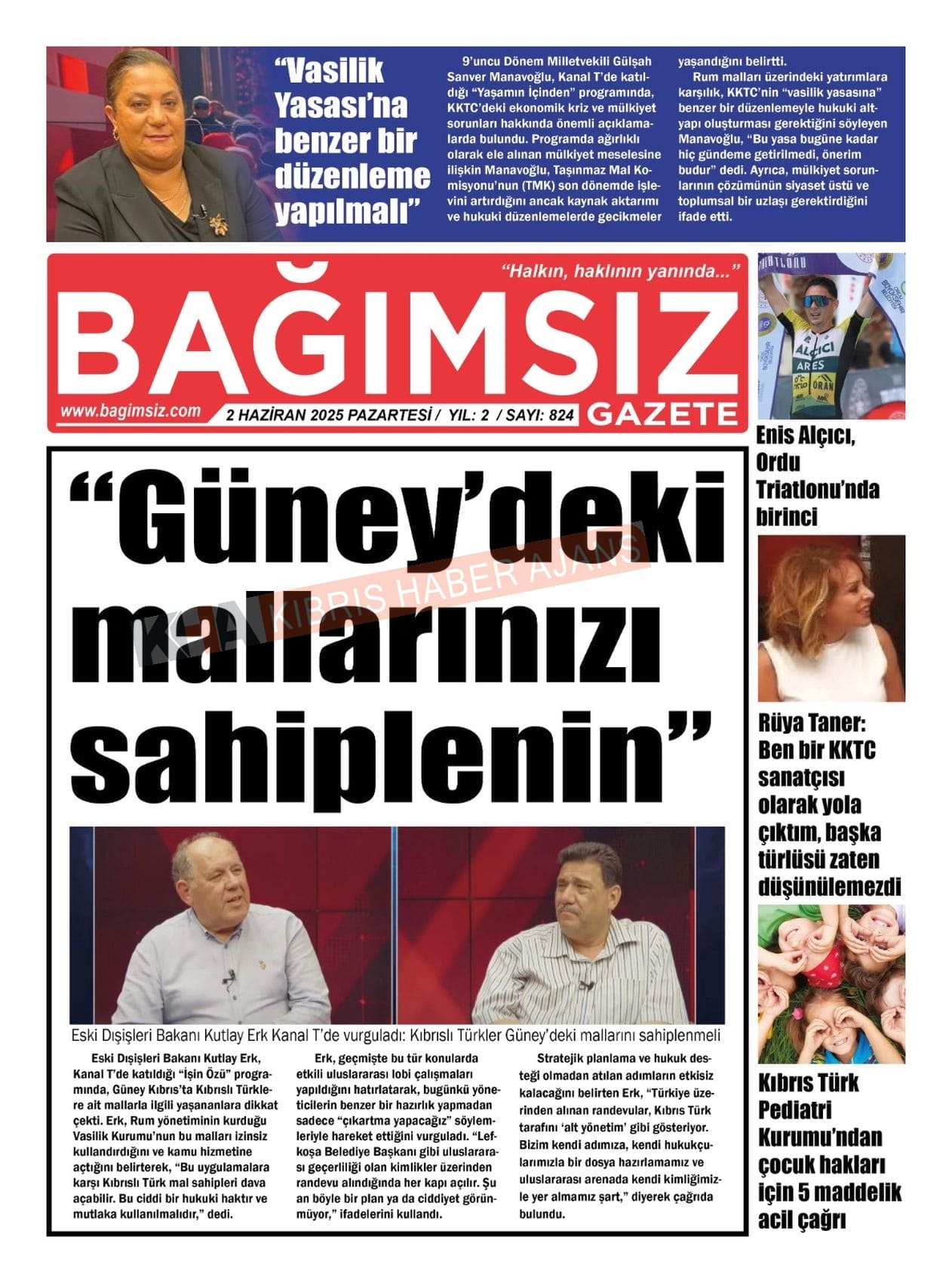 Sitede yayınlanan gazetelerdeki içeriklerden gazete sahipleri sorumludur. Yayınlanan gazeteler ve içeriklerinden Kıbrıs Haber Ajans ve Ajans Cyprus sorumlu tutulamaz.