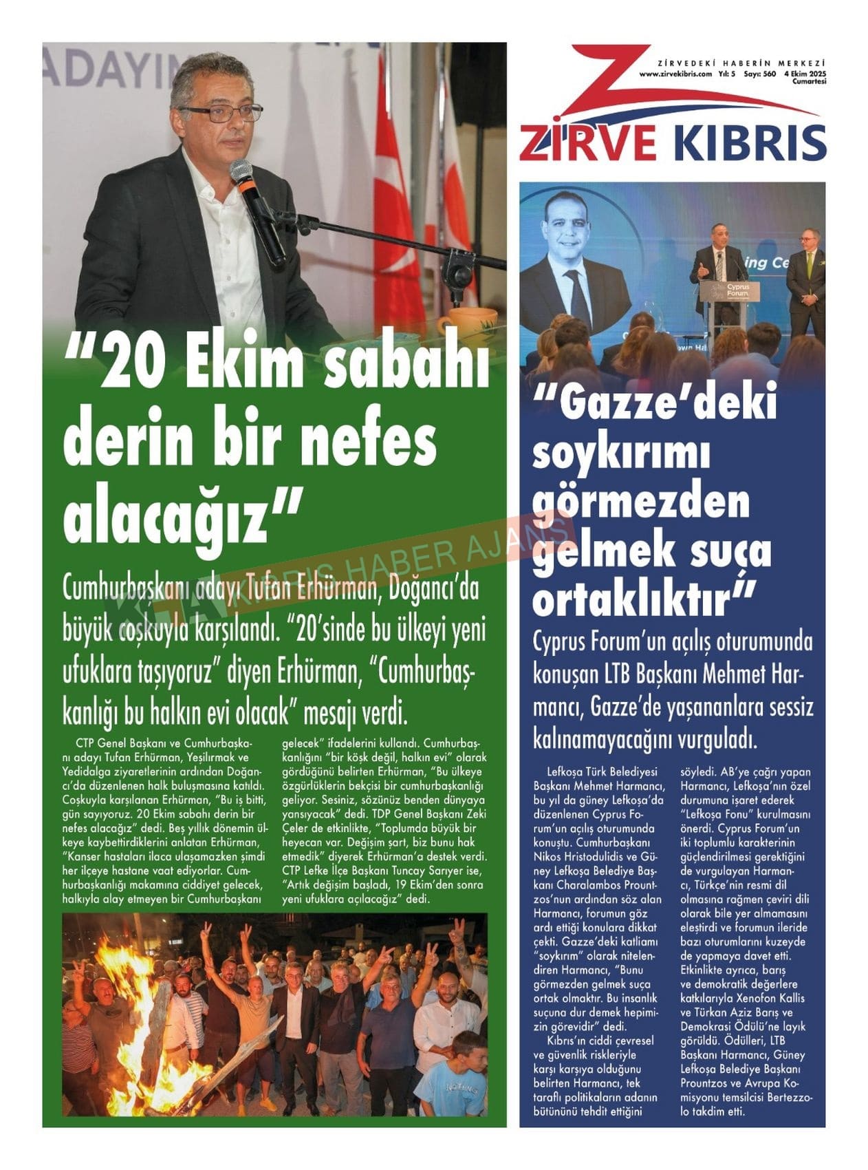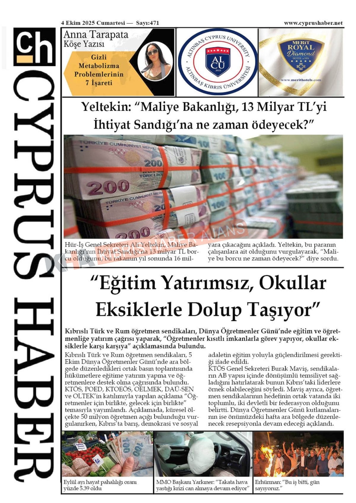 Sitede yayınlanan gazetelerdeki içeriklerden gazete sahipleri sorumludur. Yayınlanan gazeteler ve içeriklerinden Kıbrıs Haber Ajans ve Ajans Cyprus sorumlu tutulamaz.