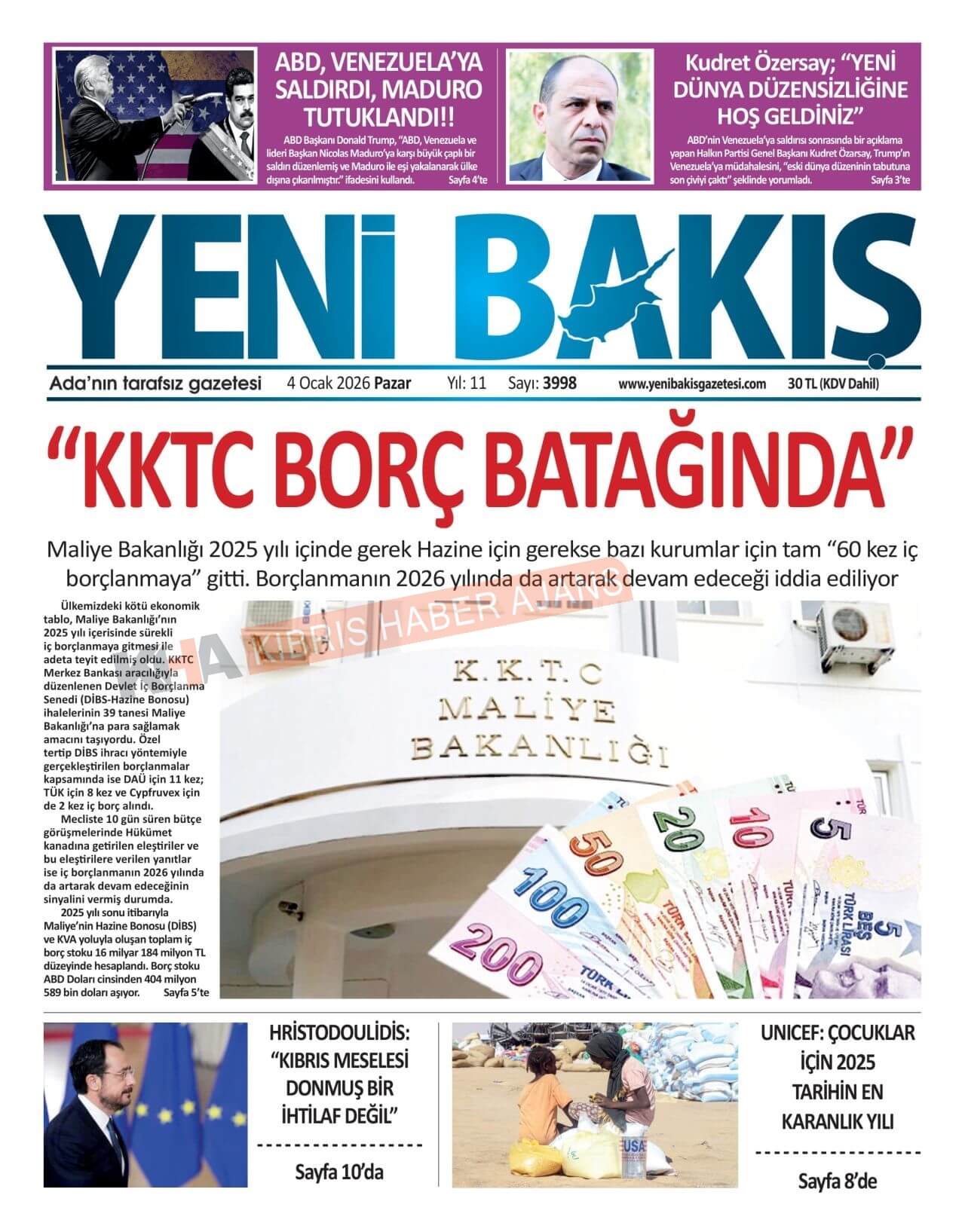 Sitede yayınlanan gazetelerdeki içeriklerden gazete sahipleri sorumludur. Yayınlanan gazeteler ve içeriklerinden Kıbrıs Haber Ajans ve Ajans Cyprus sorumlu tutulamaz.