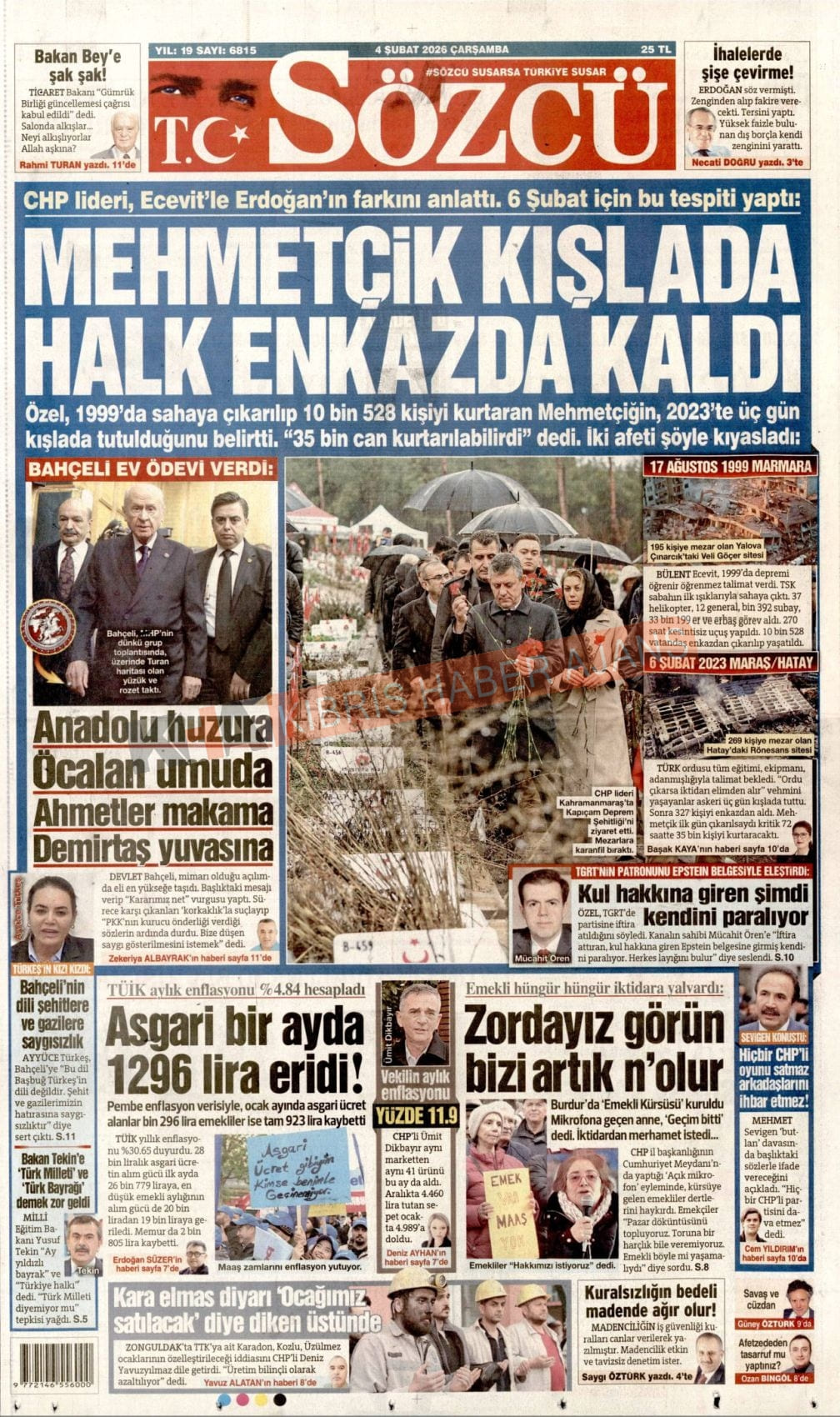 KIBRIS-TÜRKİYE Gazetelerinde Günün Manşetleri (04 ŞUBAT 2026)