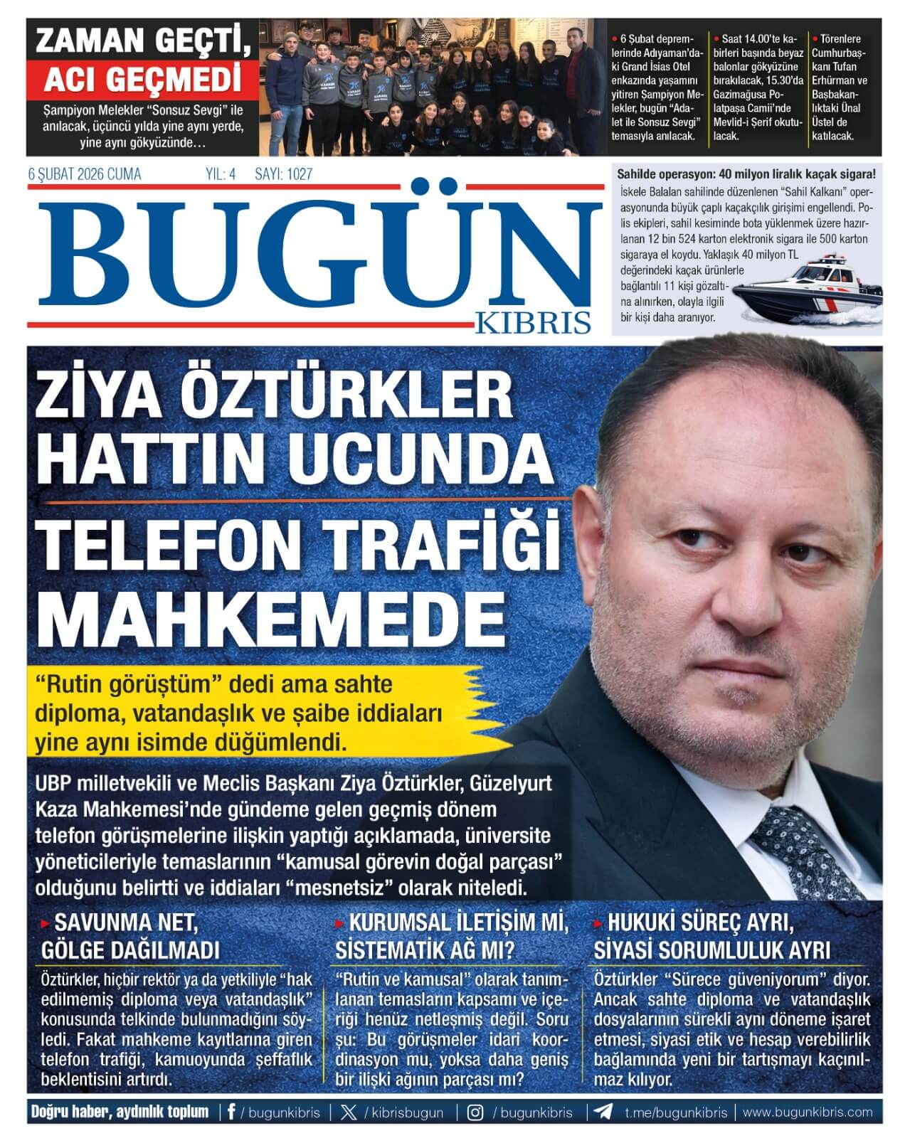 KIBRIS-TÜRKİYE Gazetelerinde Günün Manşetleri (06 ŞUBAT 2026)