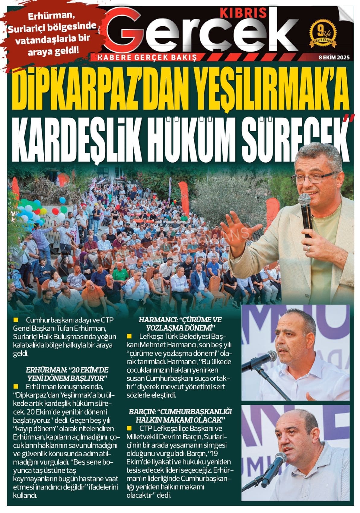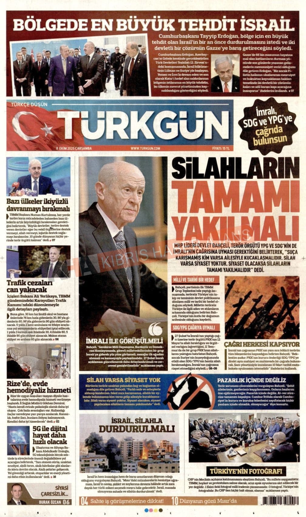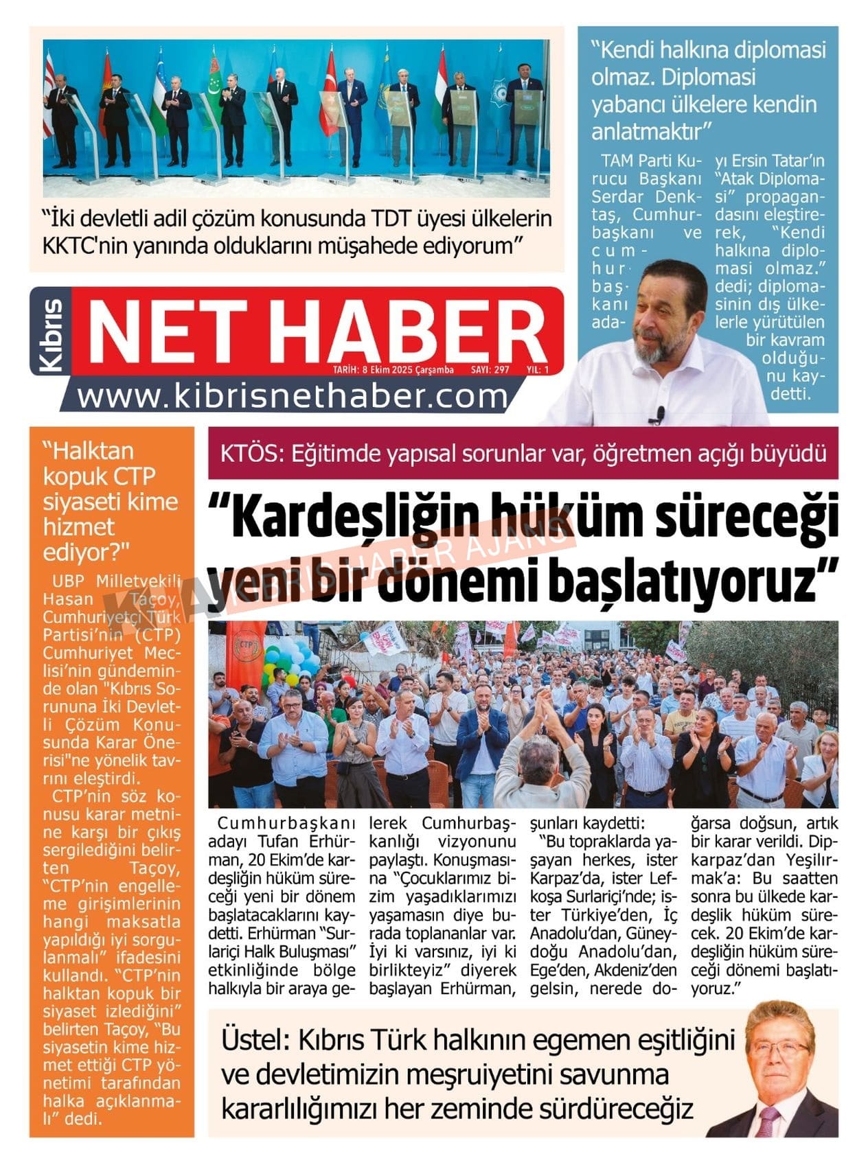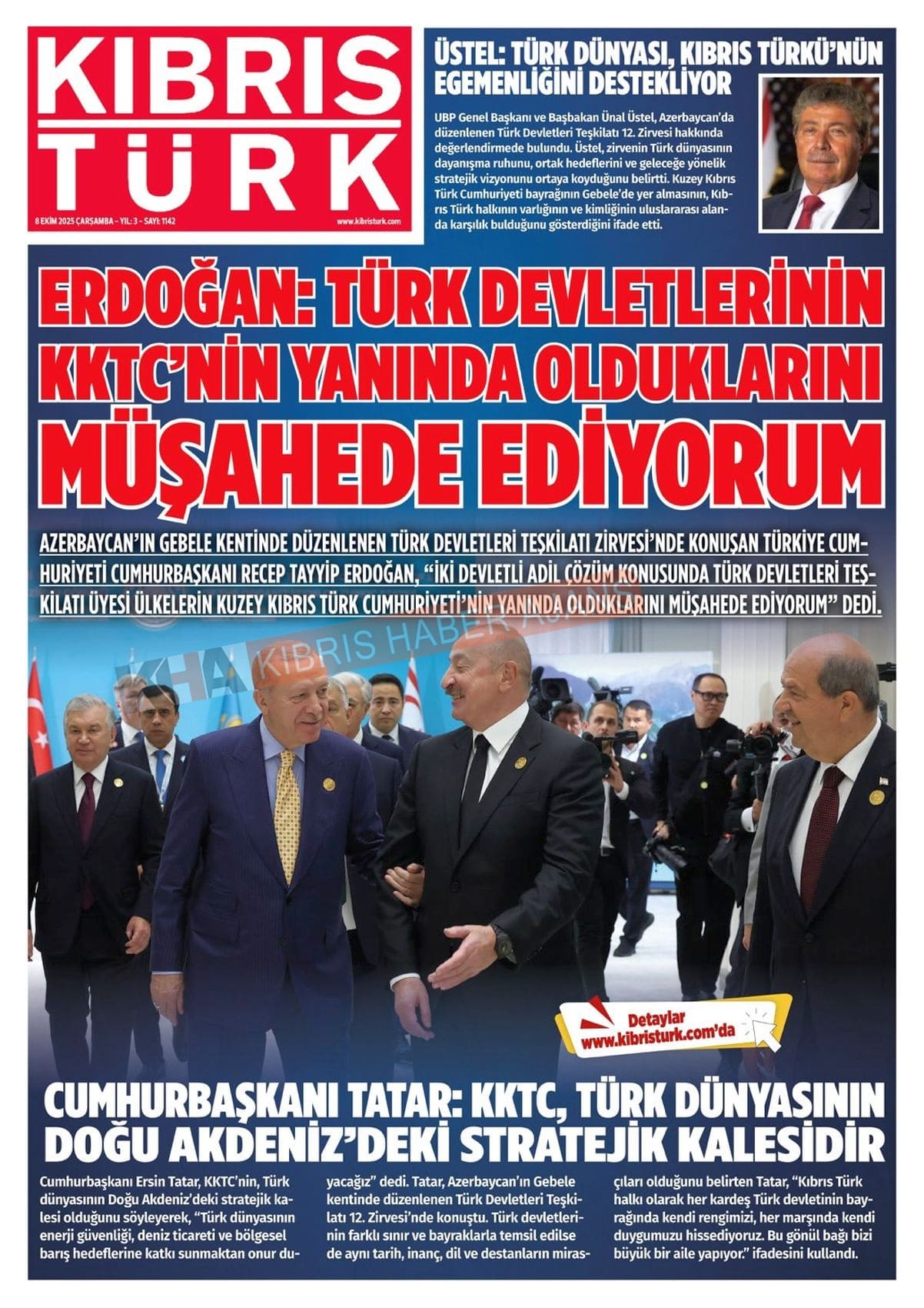 KIBRIS -TÜRKİYE Gazetelerinde Günün Manşetleri (08 EKİM 2025)