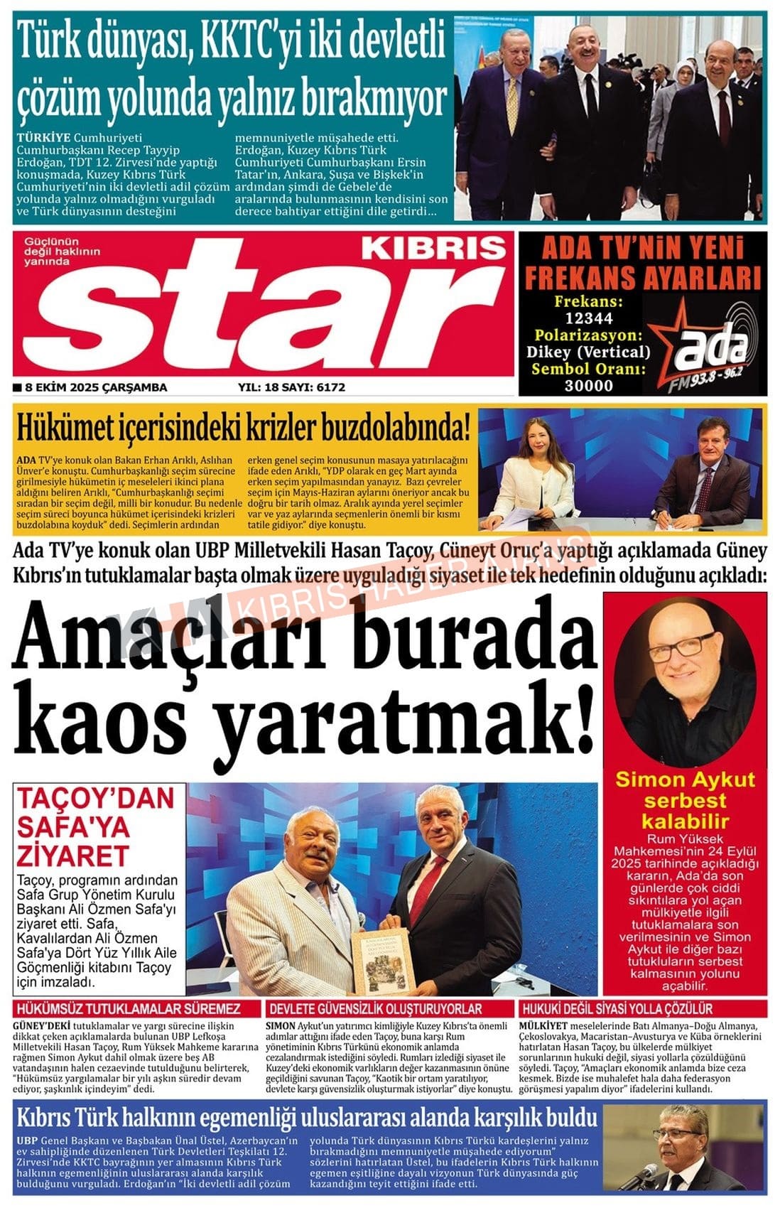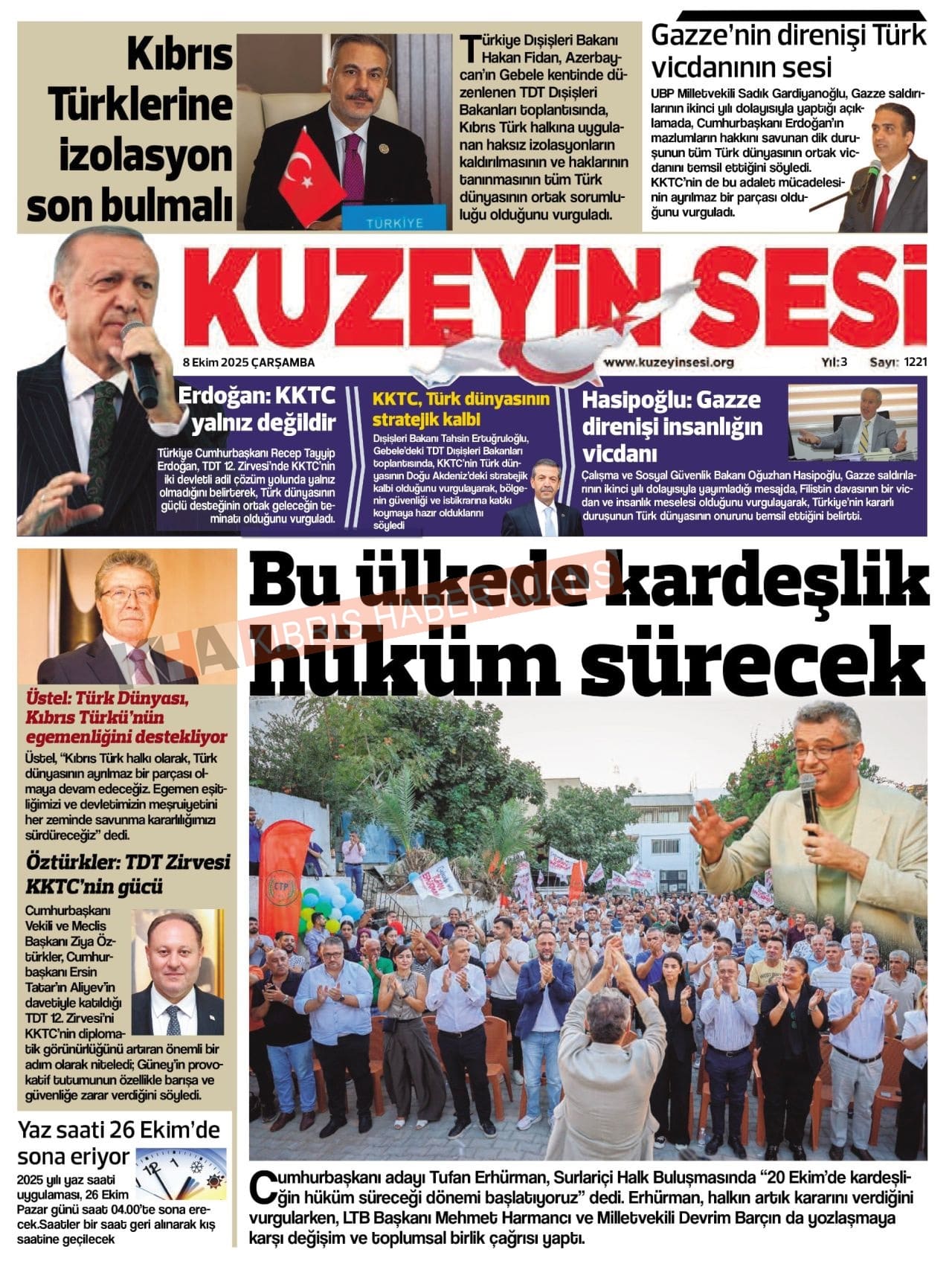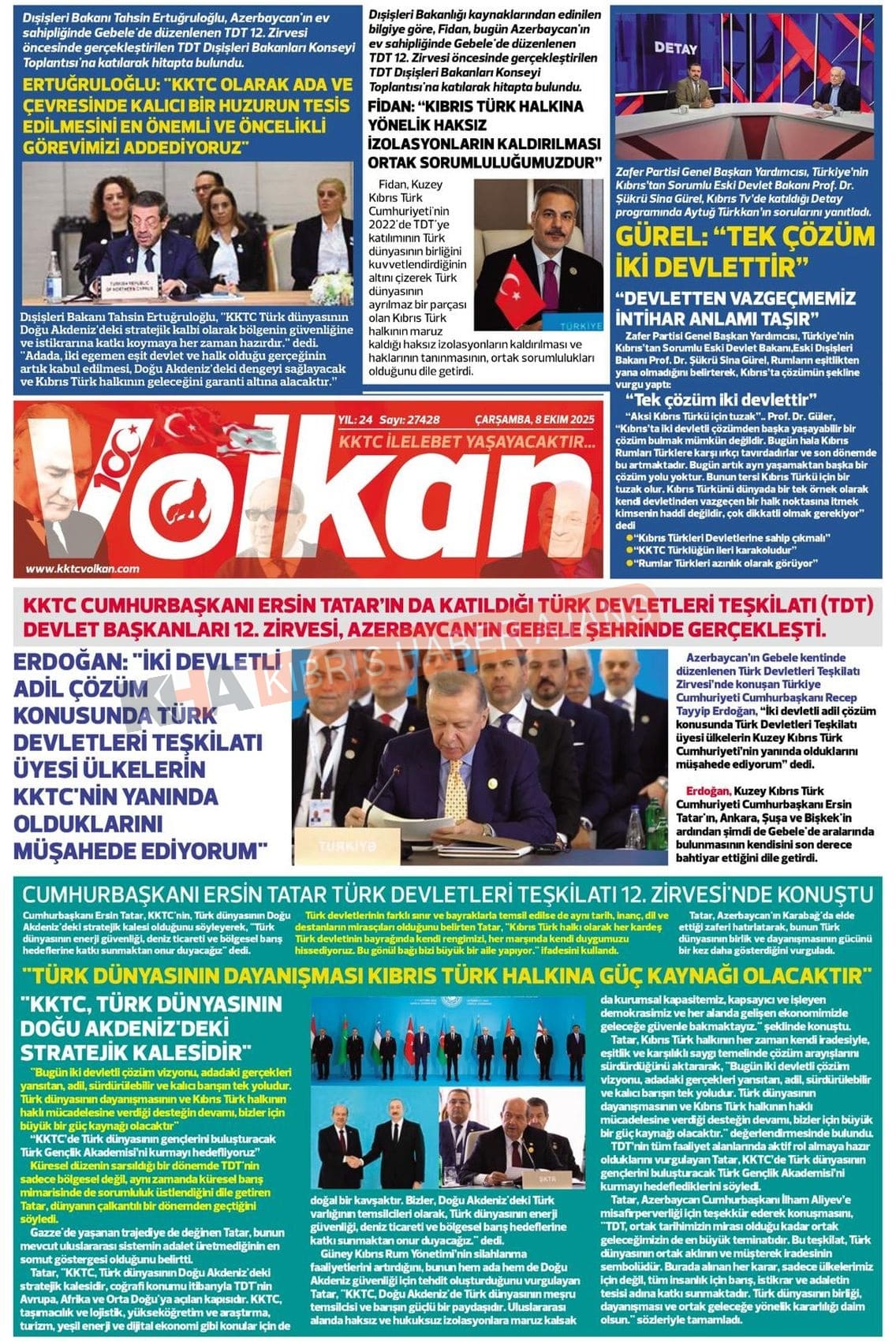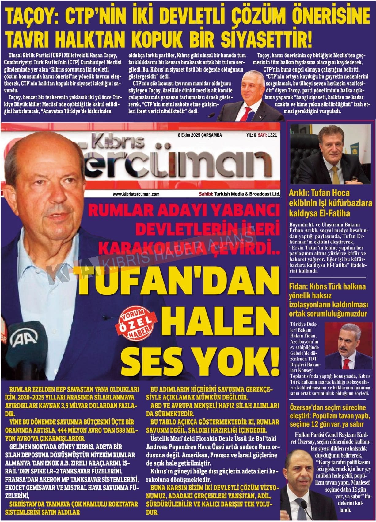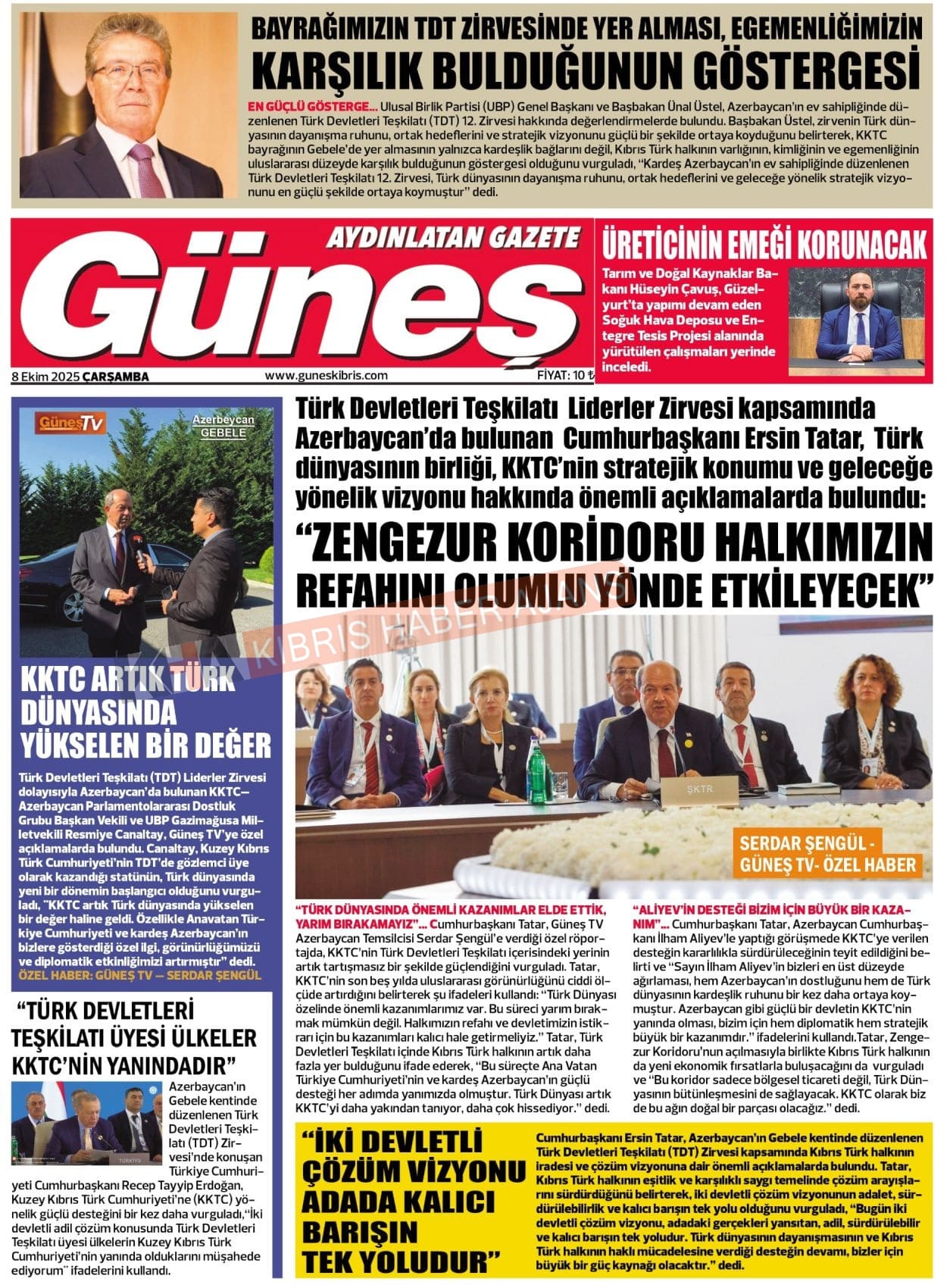 KIBRIS -TÜRKİYE Gazetelerinde Günün Manşetleri (08 EKİM 2025)