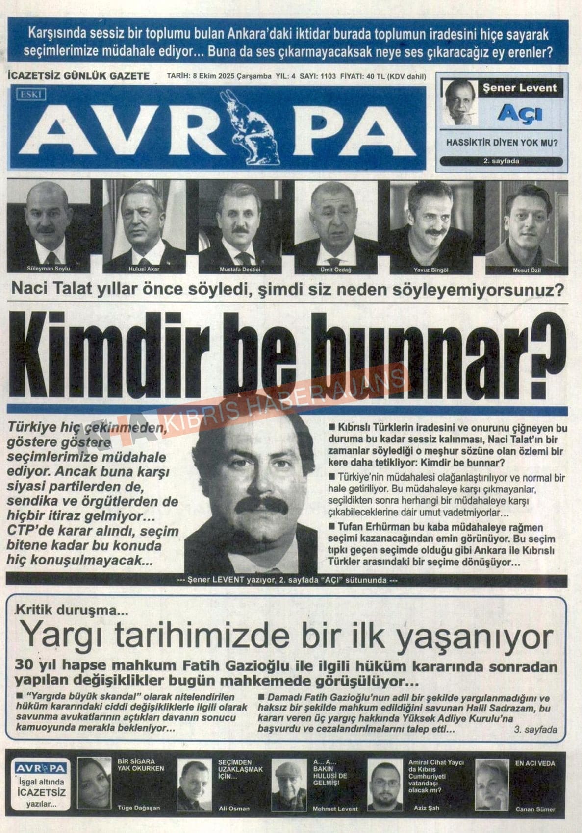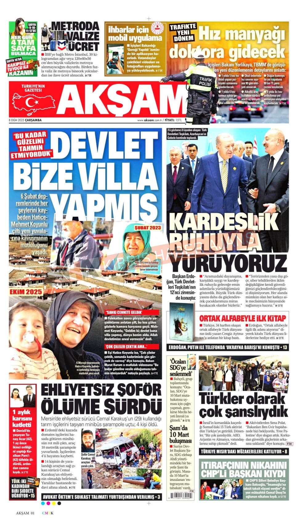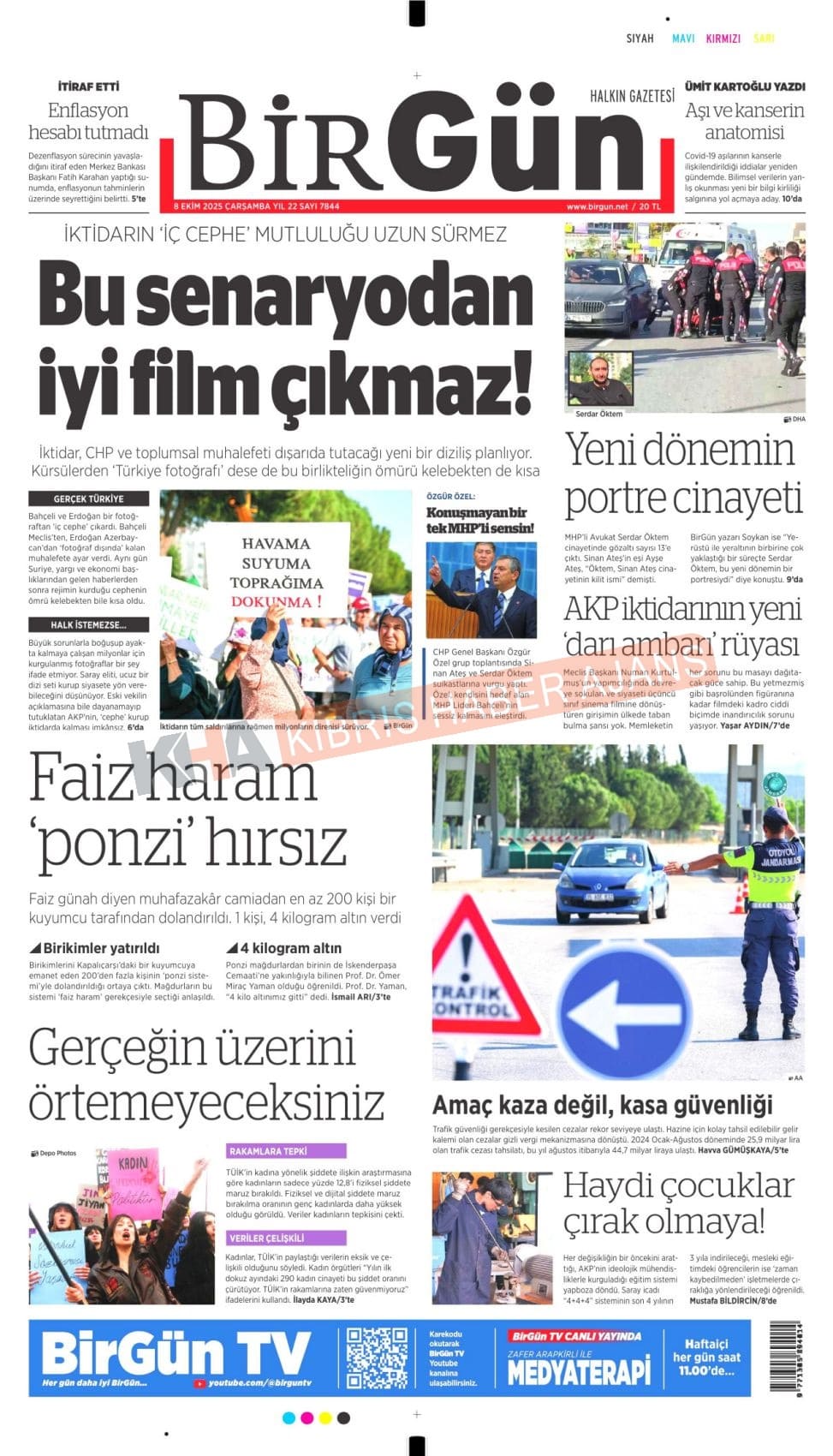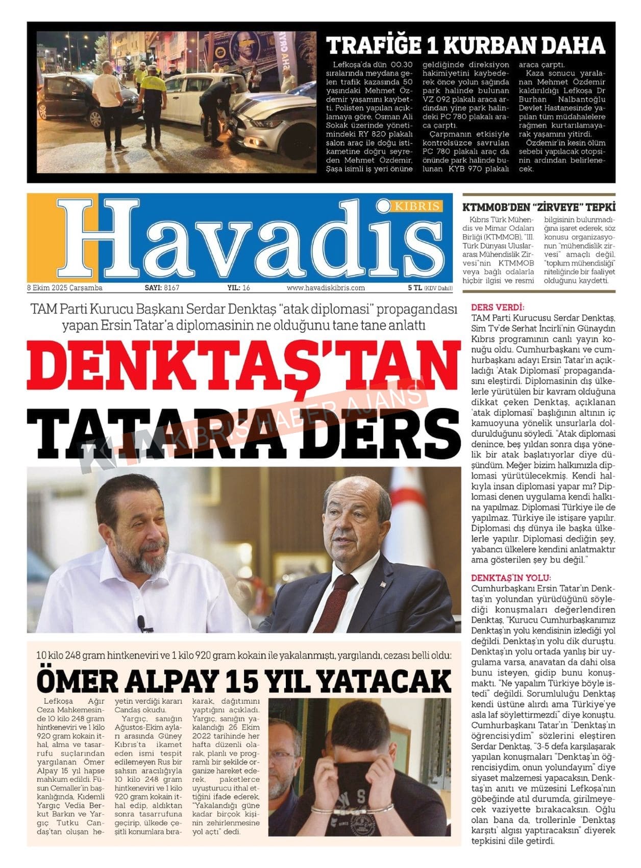 KIBRIS -TÜRKİYE Gazetelerinde Günün Manşetleri (08 EKİM 2025)