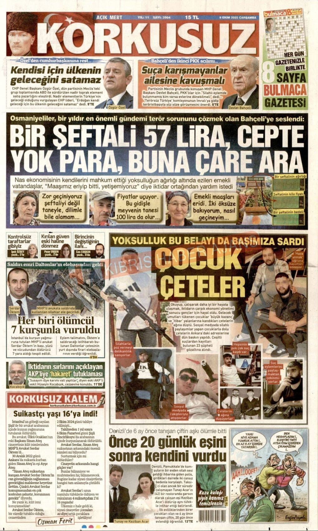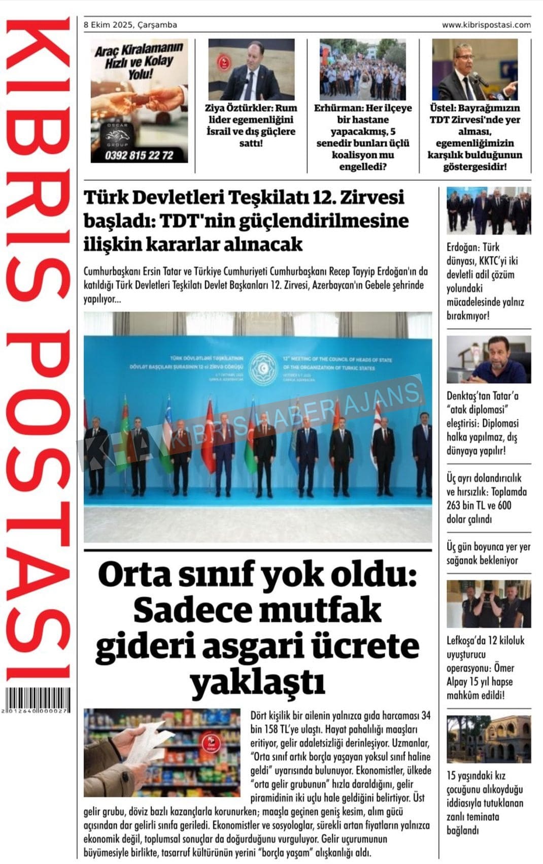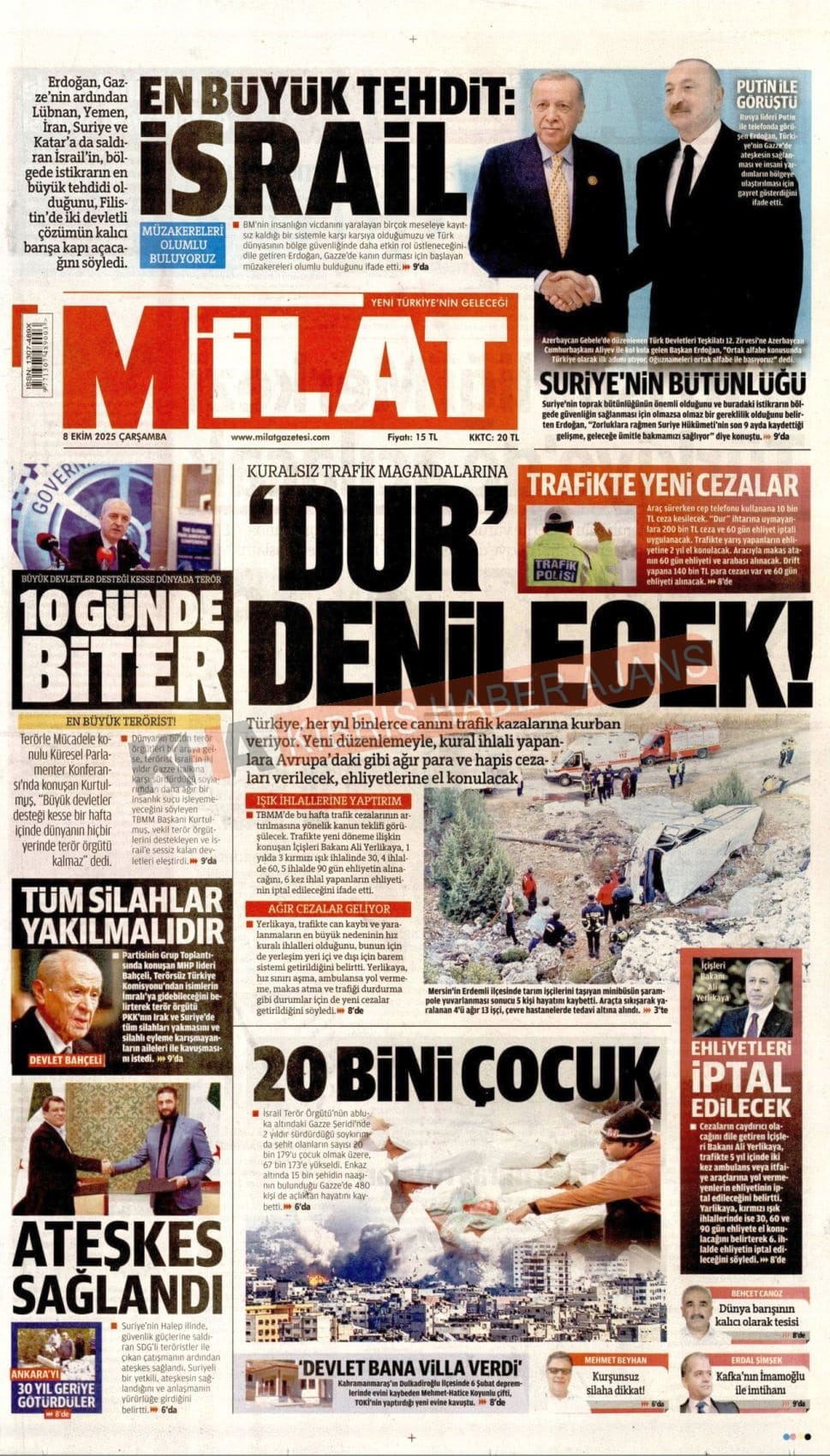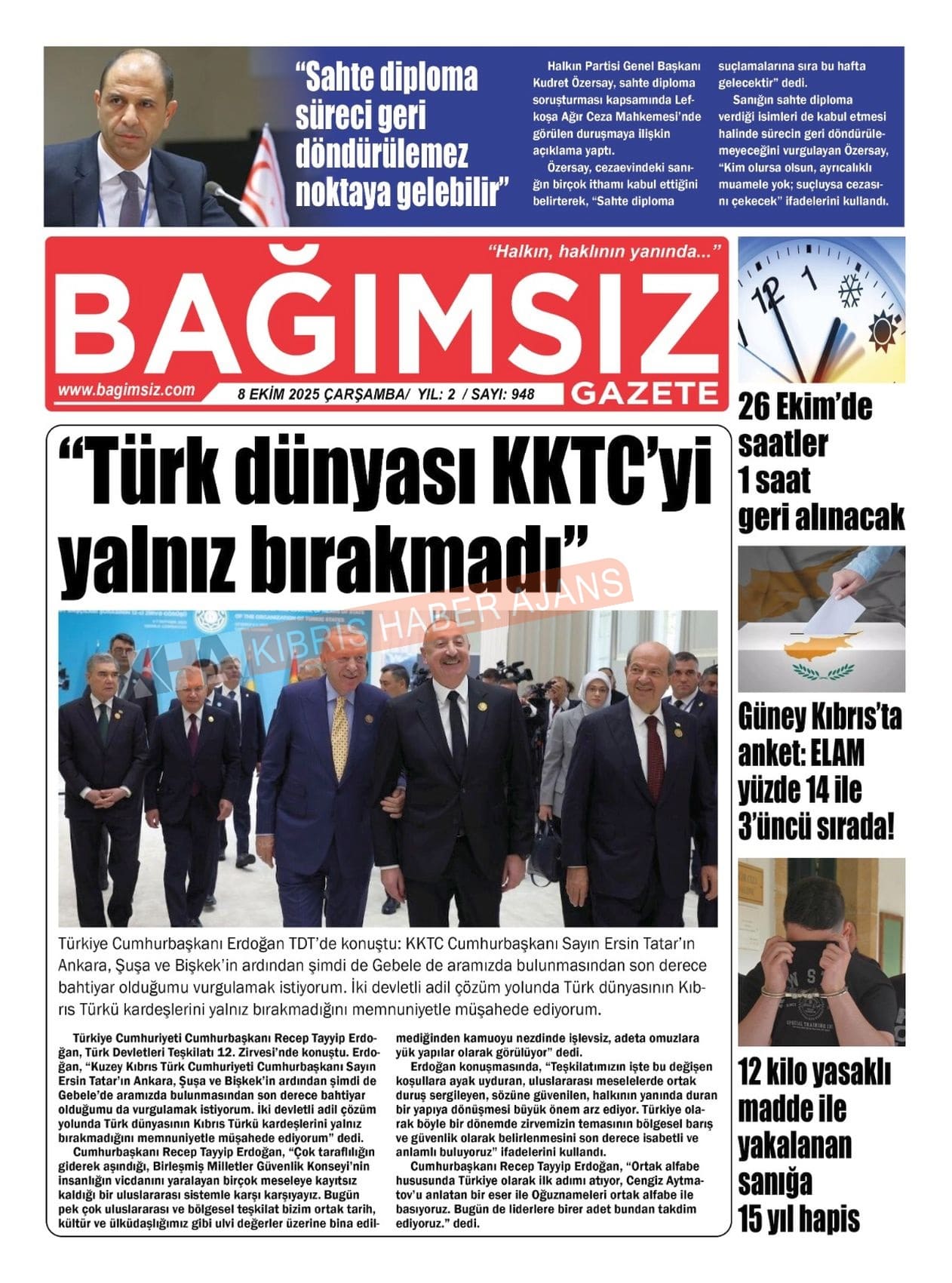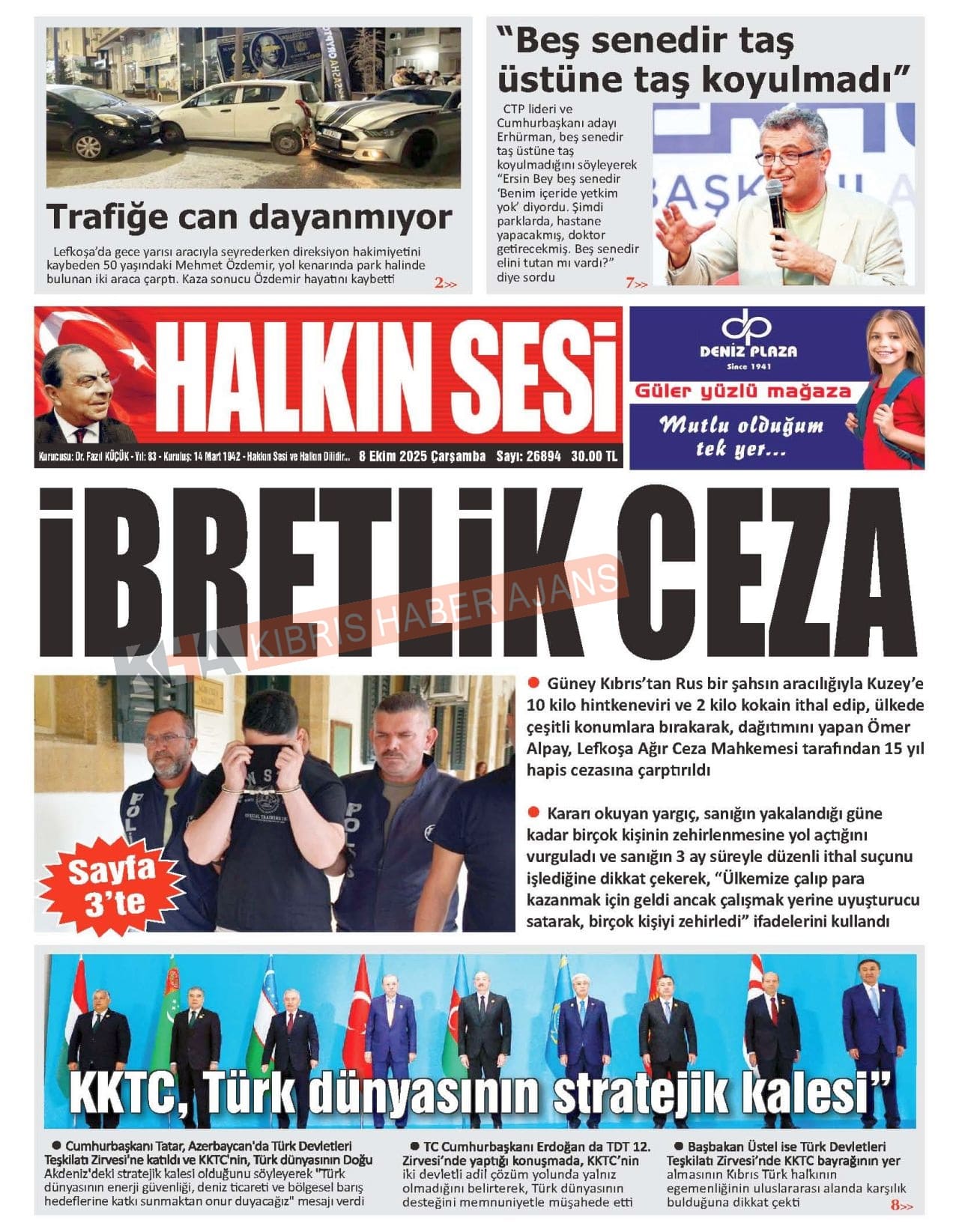 KIBRIS -TÜRKİYE Gazetelerinde Günün Manşetleri (08 EKİM 2025)