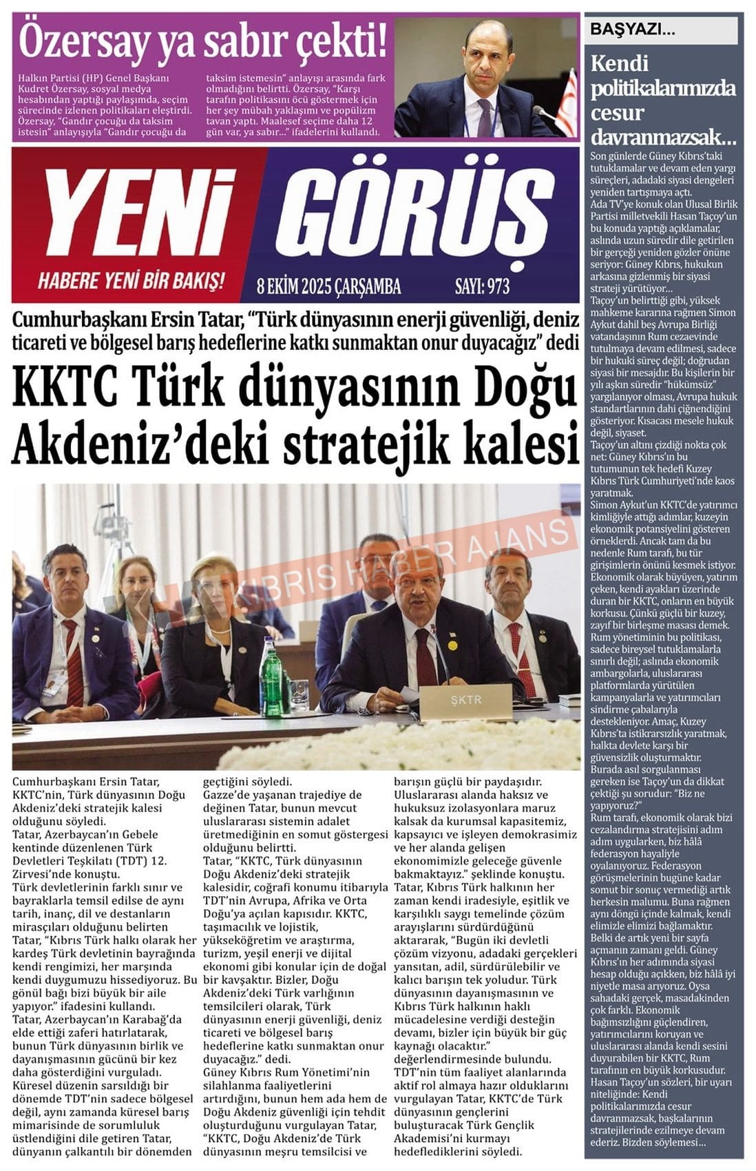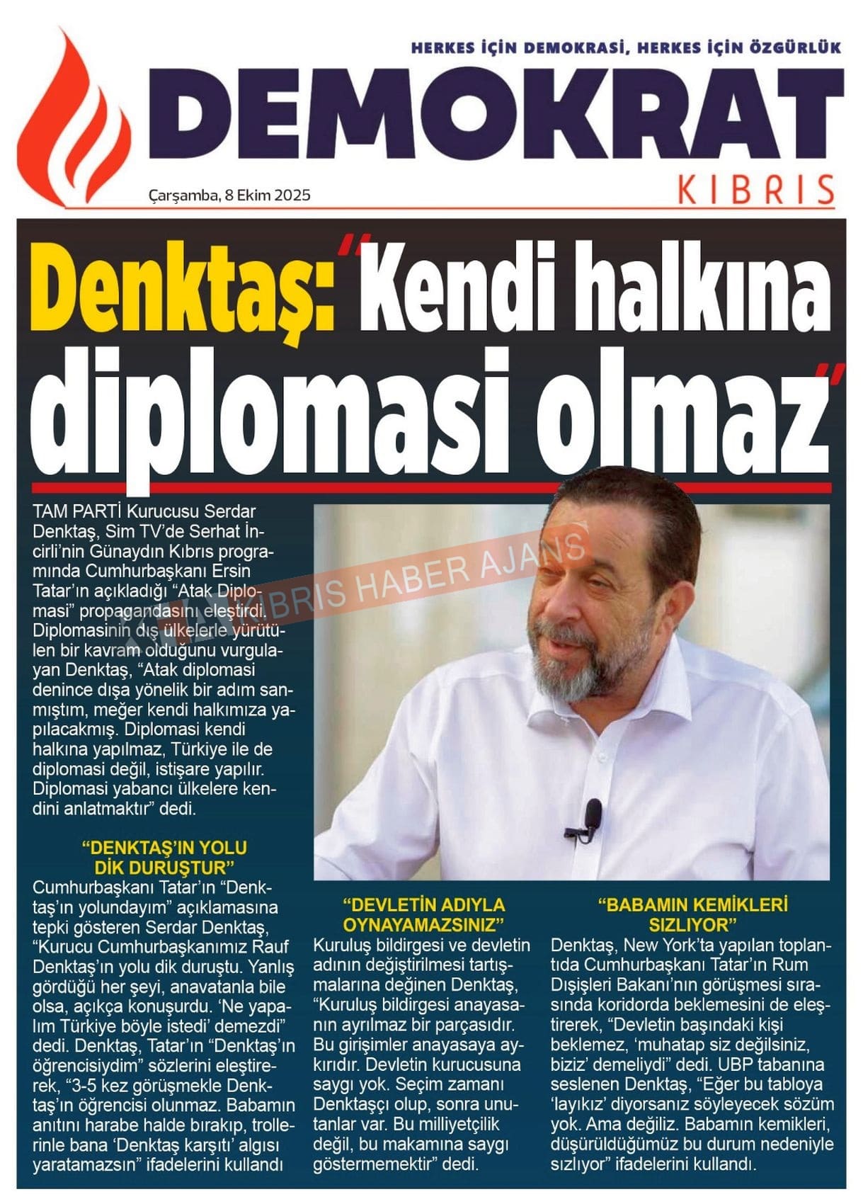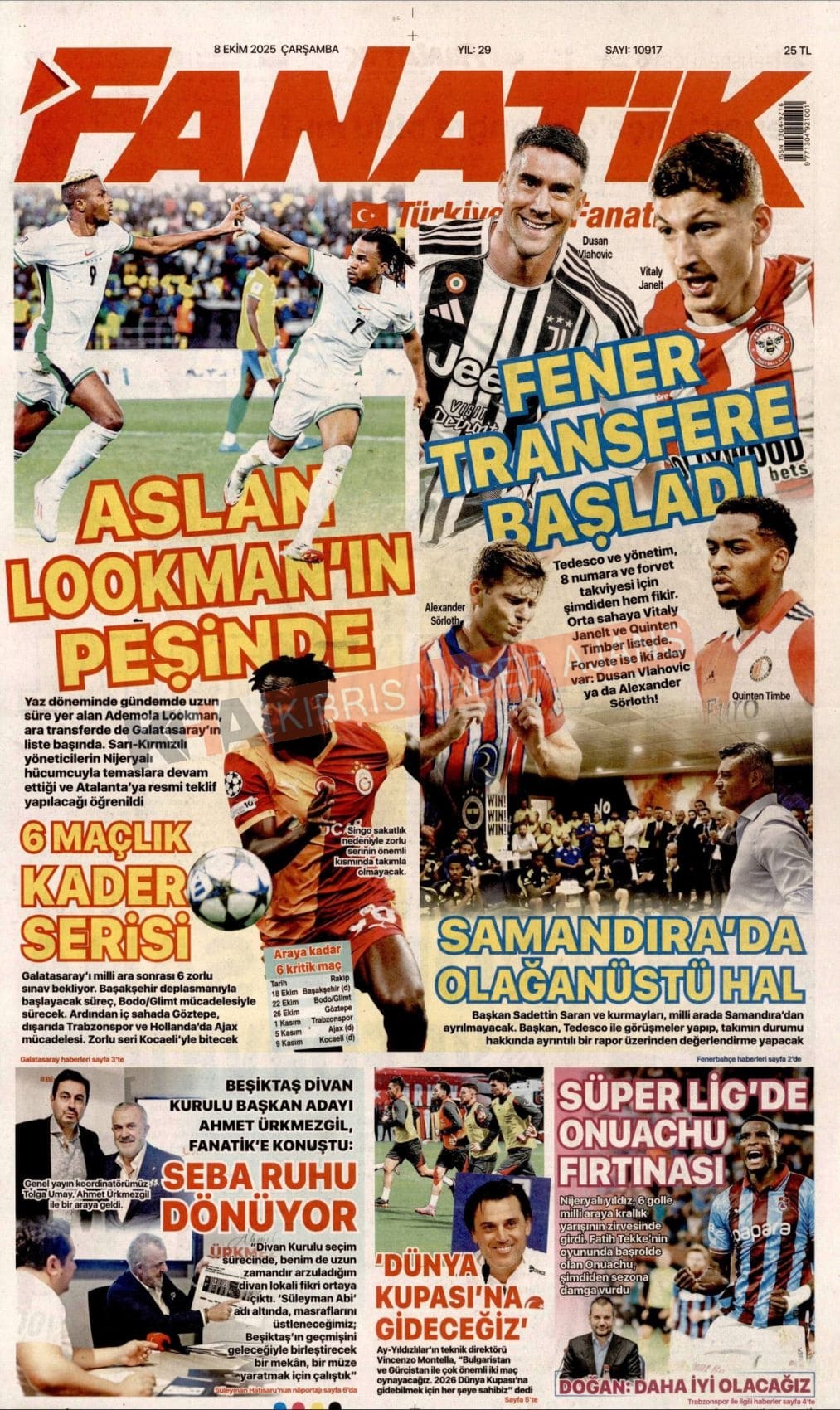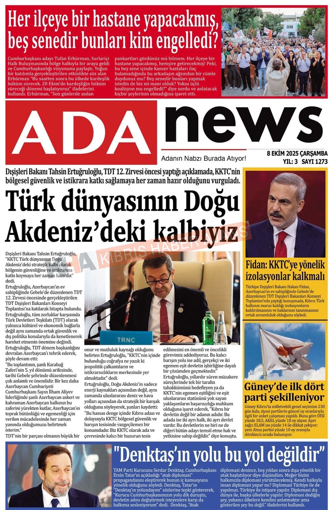 KIBRIS -TÜRKİYE Gazetelerinde Günün Manşetleri (08 EKİM 2025)