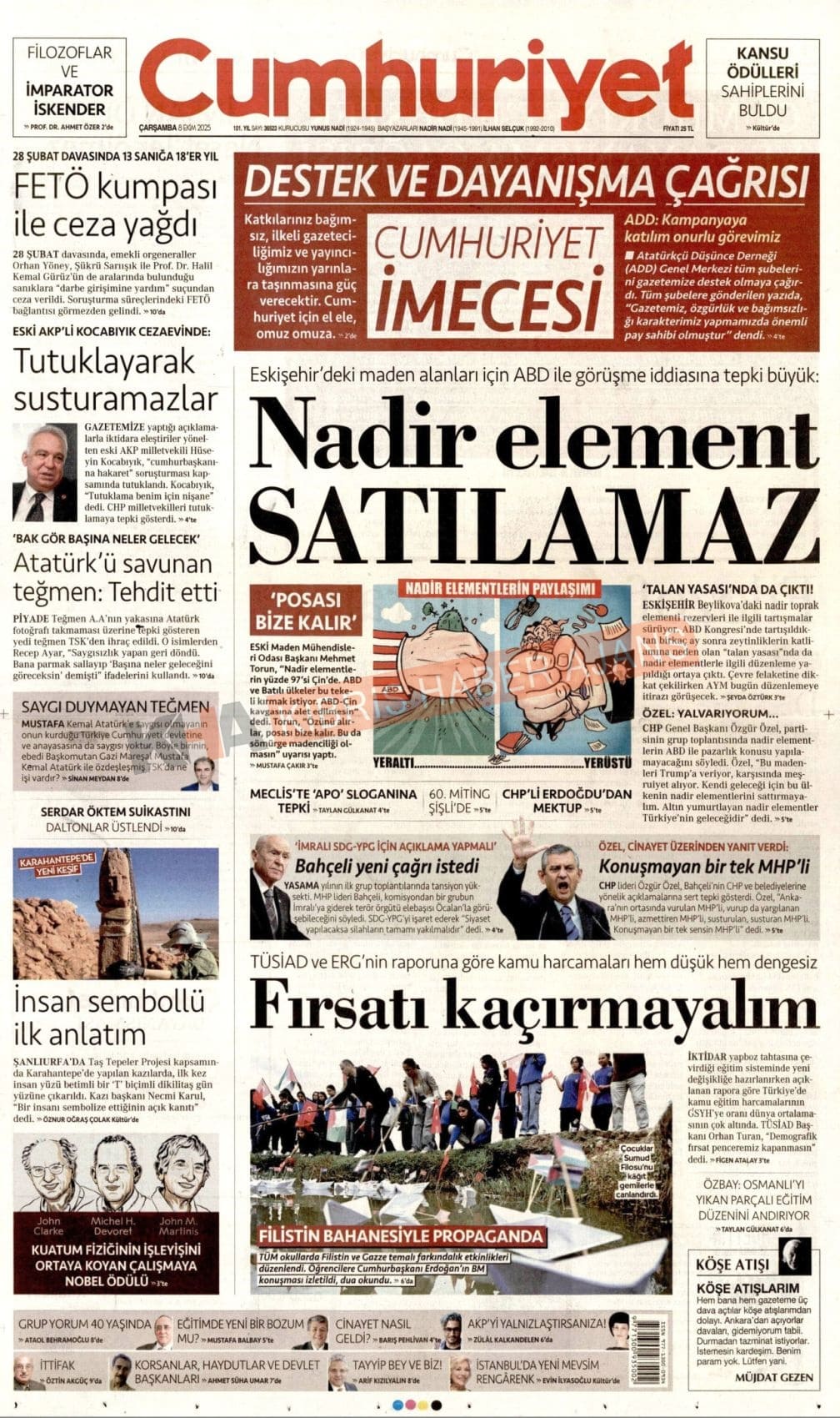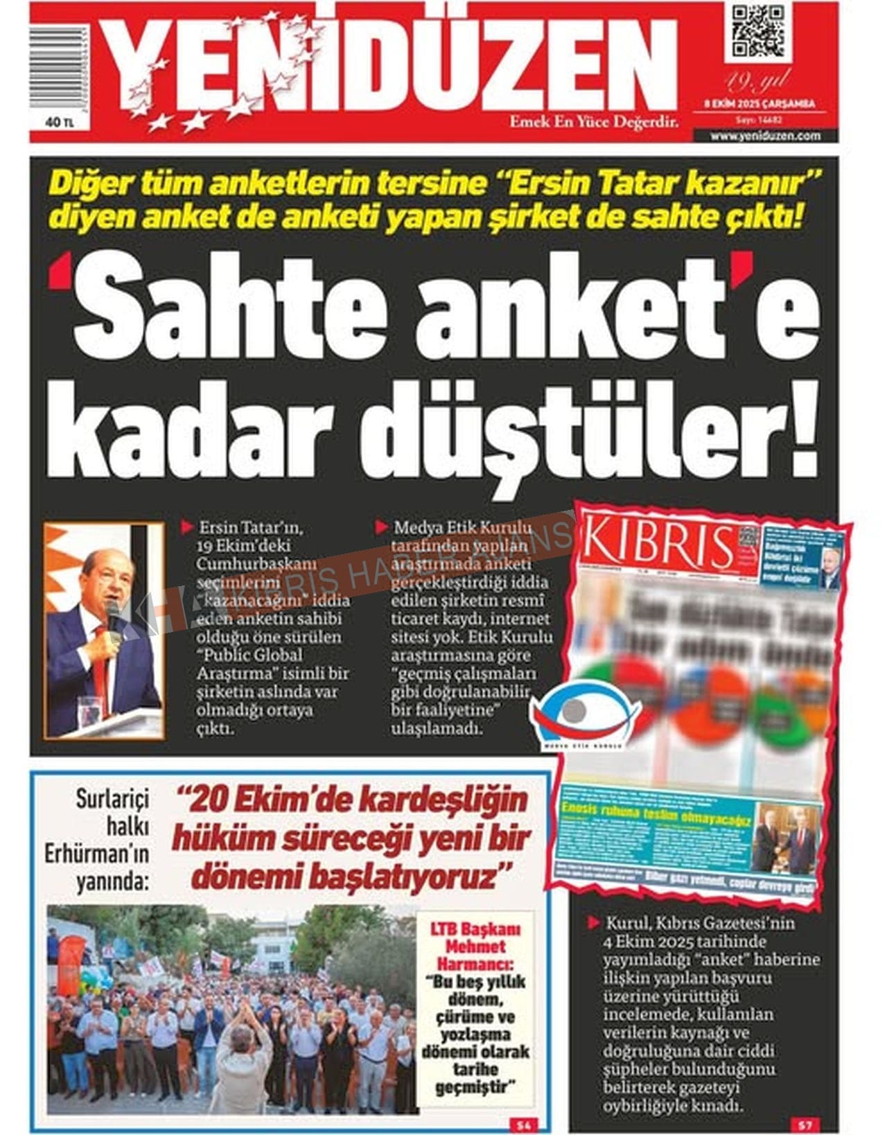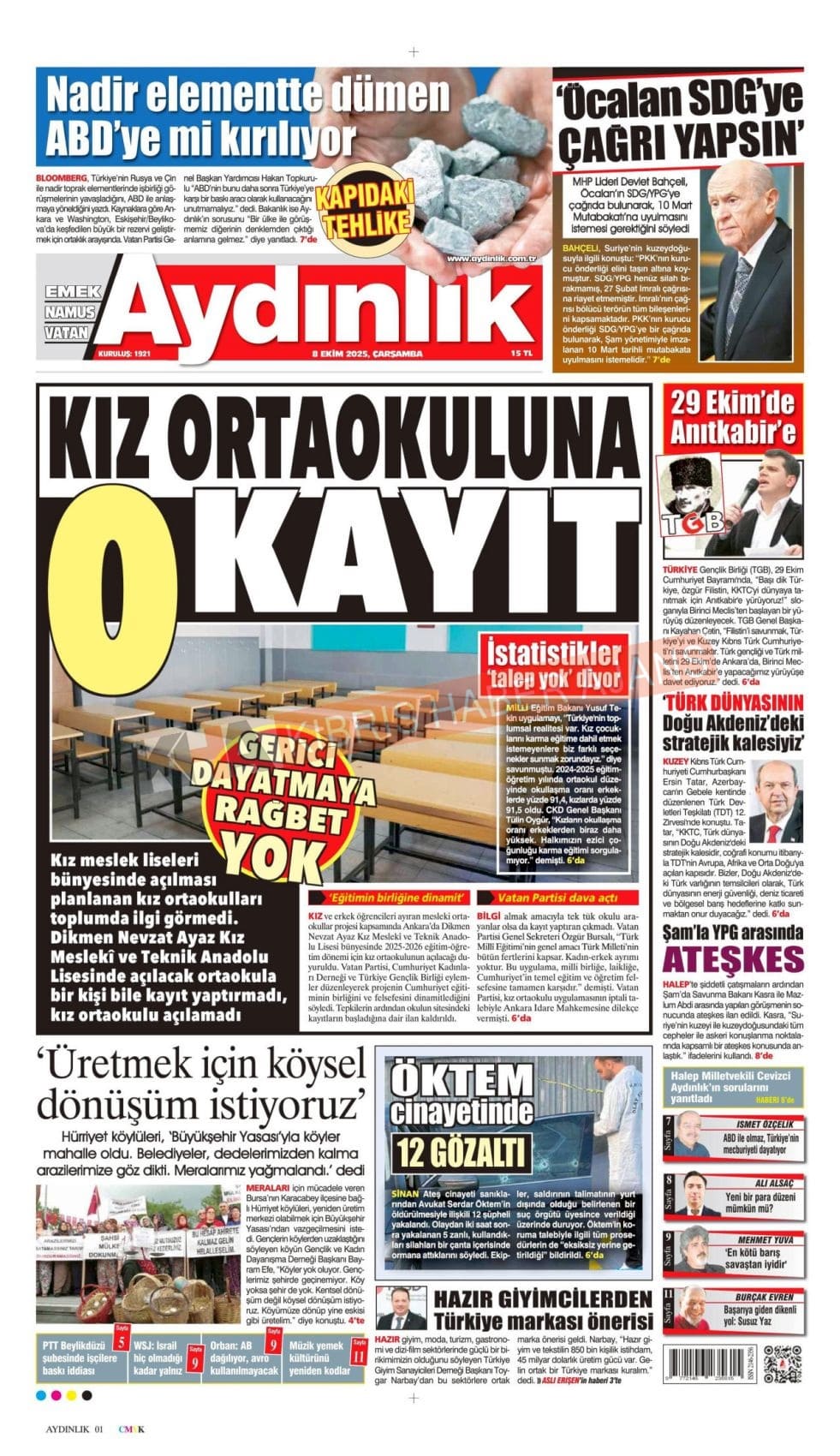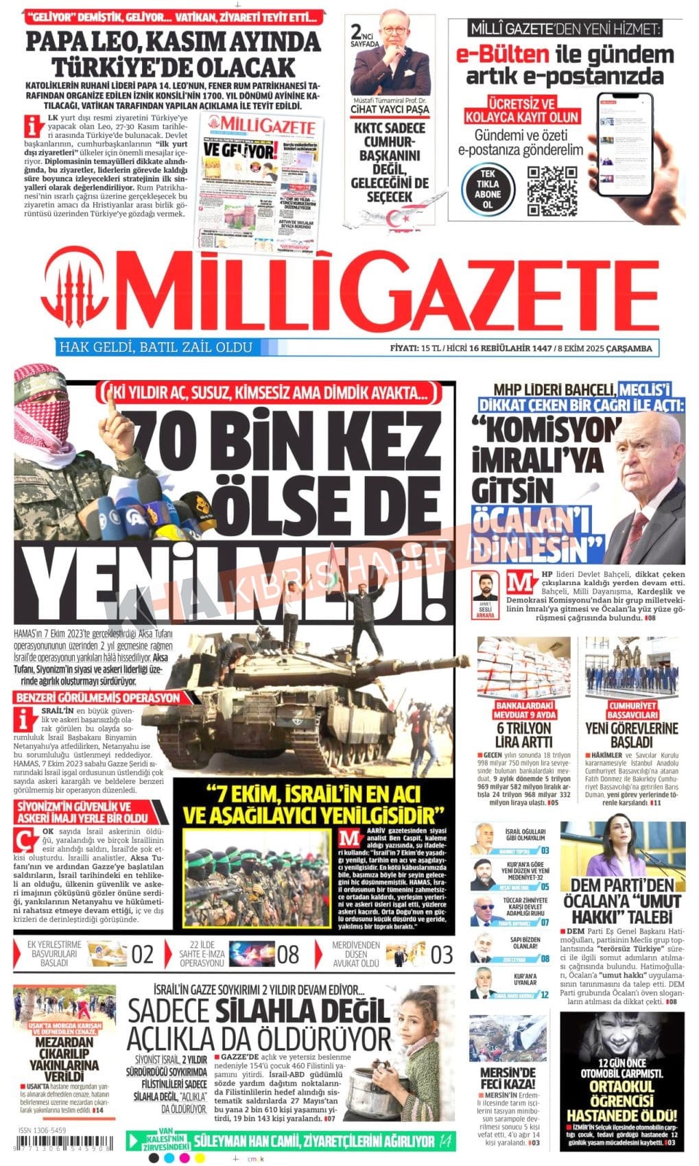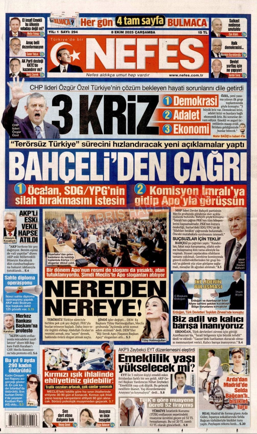 KIBRIS -TÜRKİYE Gazetelerinde Günün Manşetleri (08 EKİM 2025)