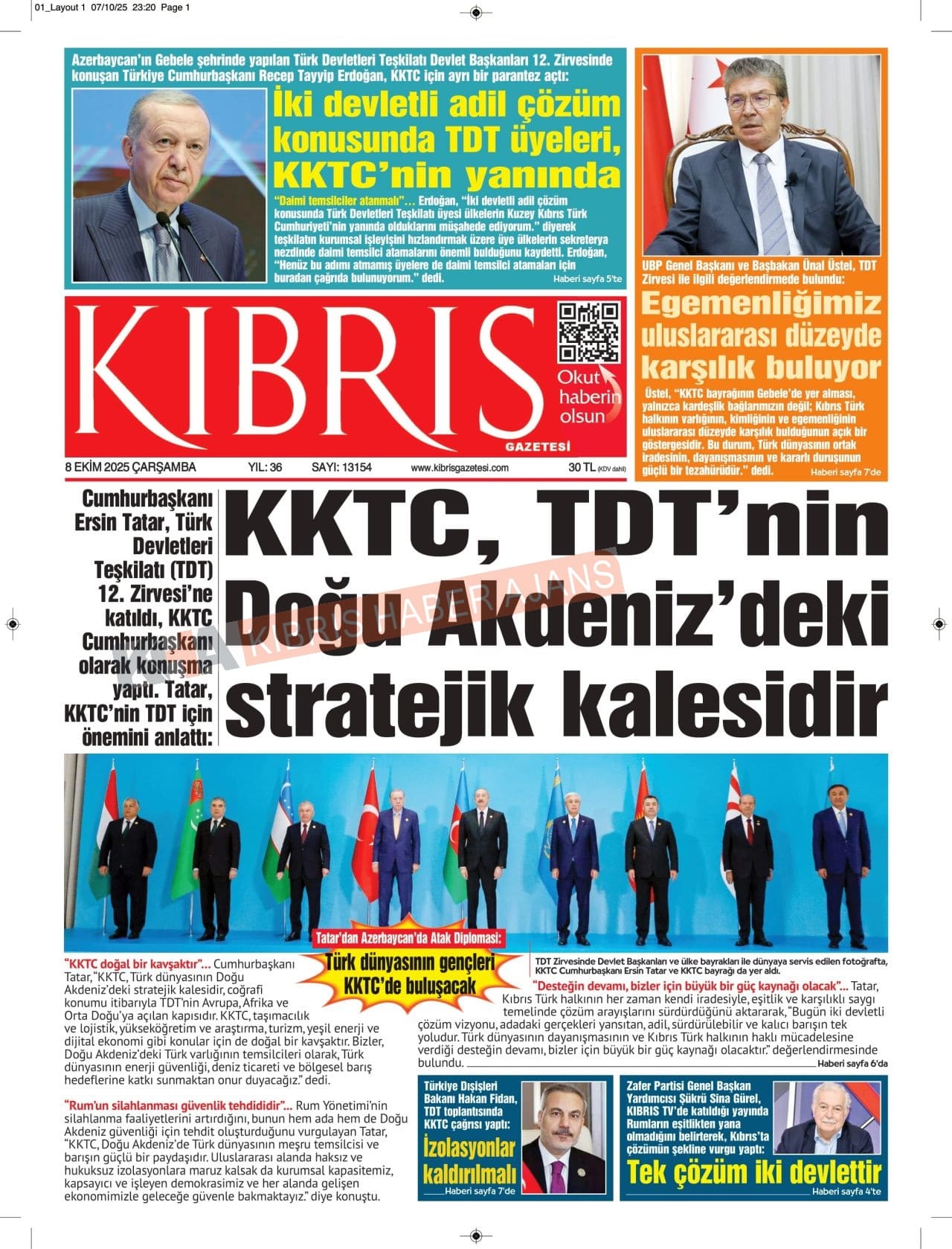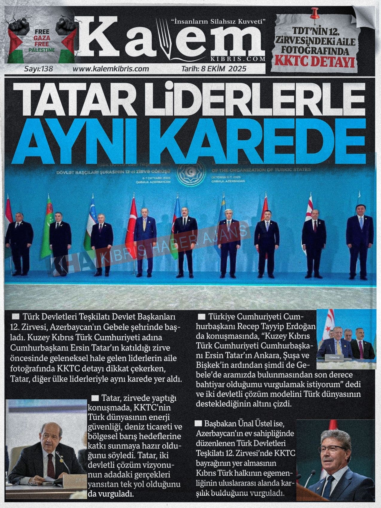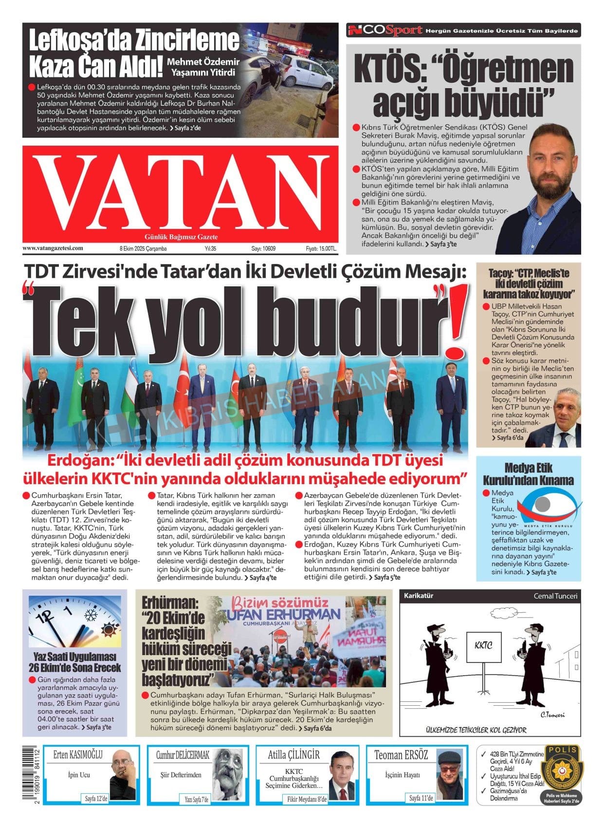 Ana SayfaGazetelerKIBRIS -TÜRKİYE Gazetelerinde Günün Manşetleri (08 EKİM 2025)