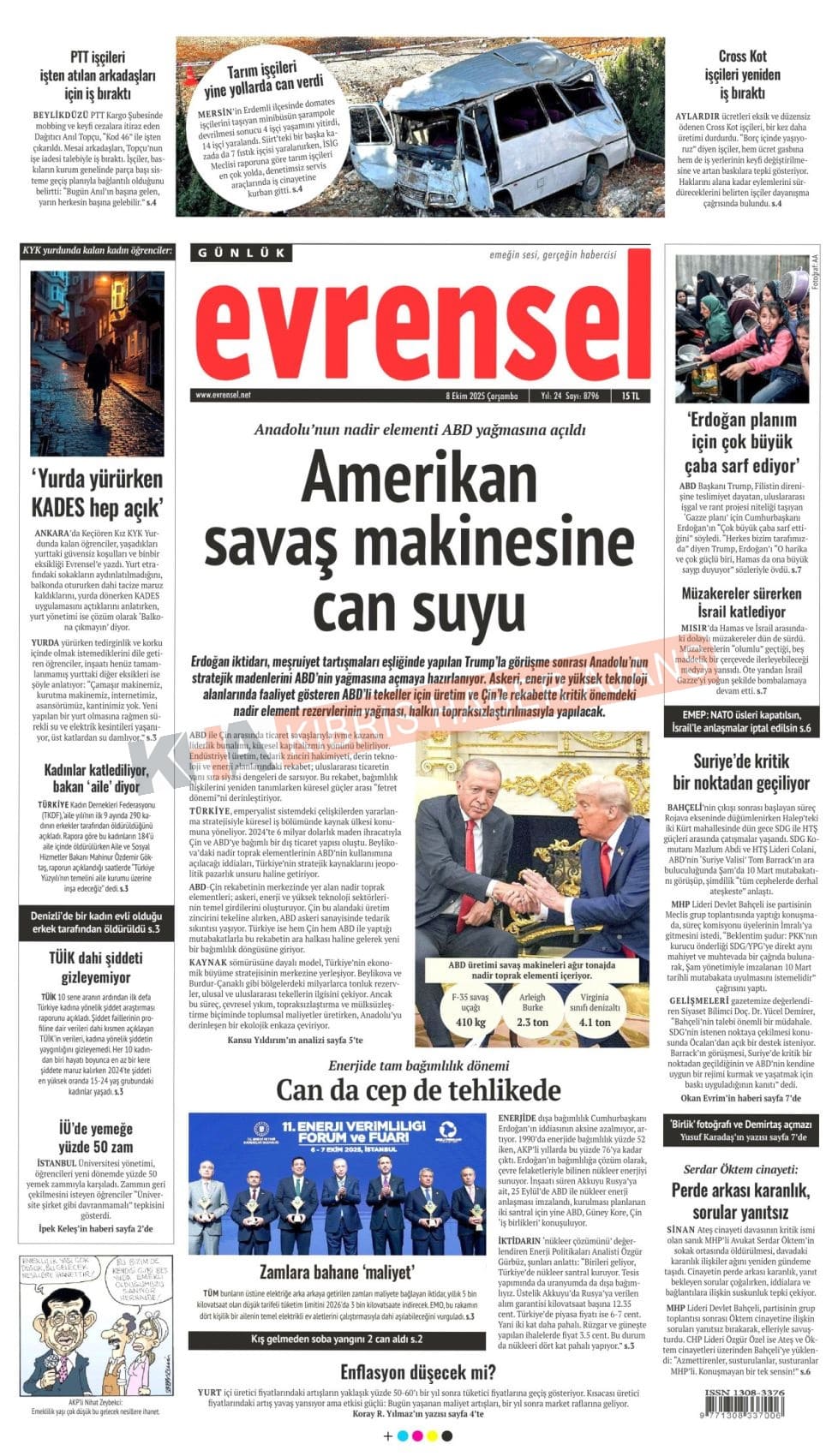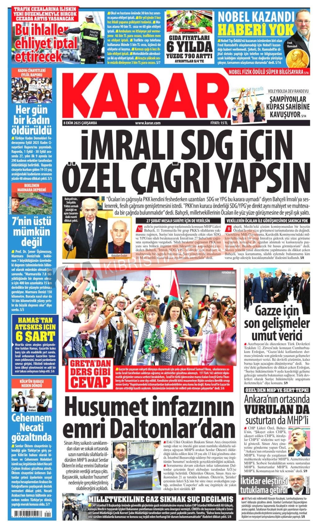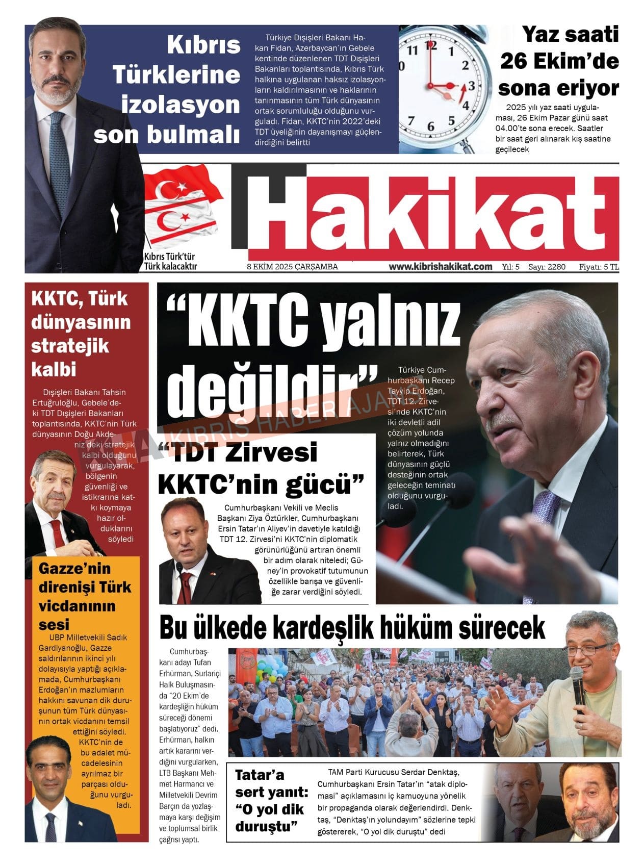 Ana SayfaGazetelerKIBRIS -TÜRKİYE Gazetelerinde Günün Manşetleri (08 EKİM 2025)