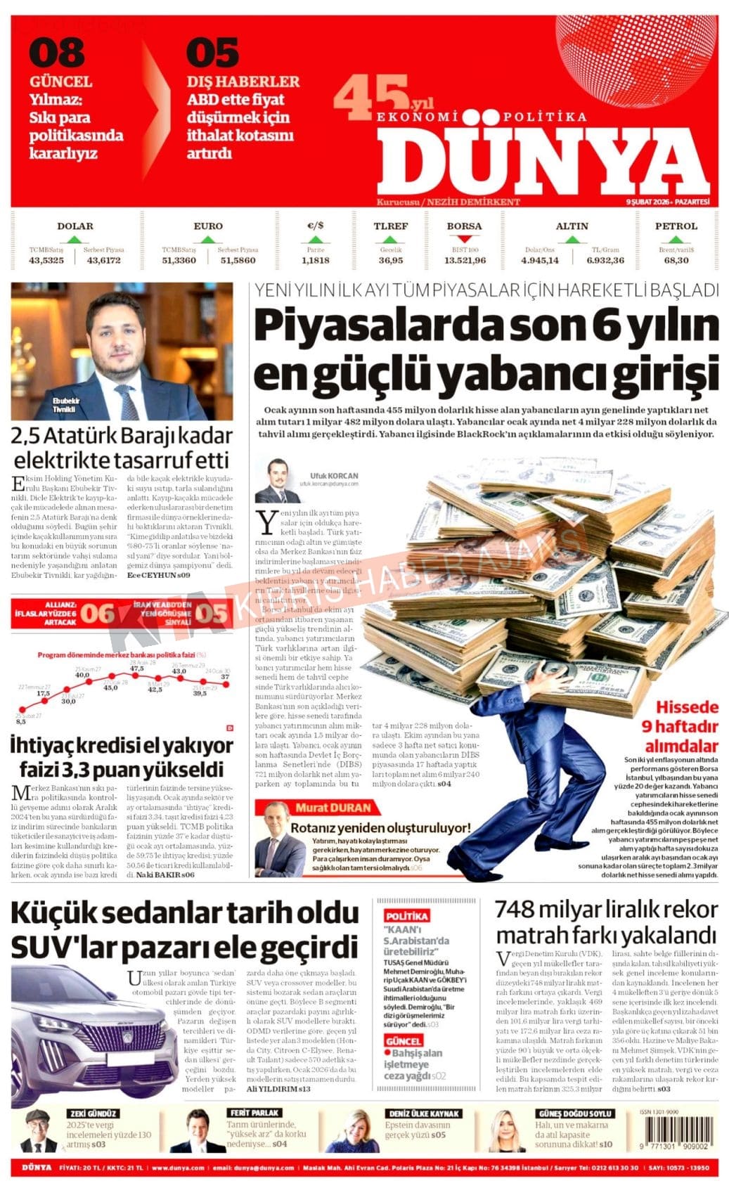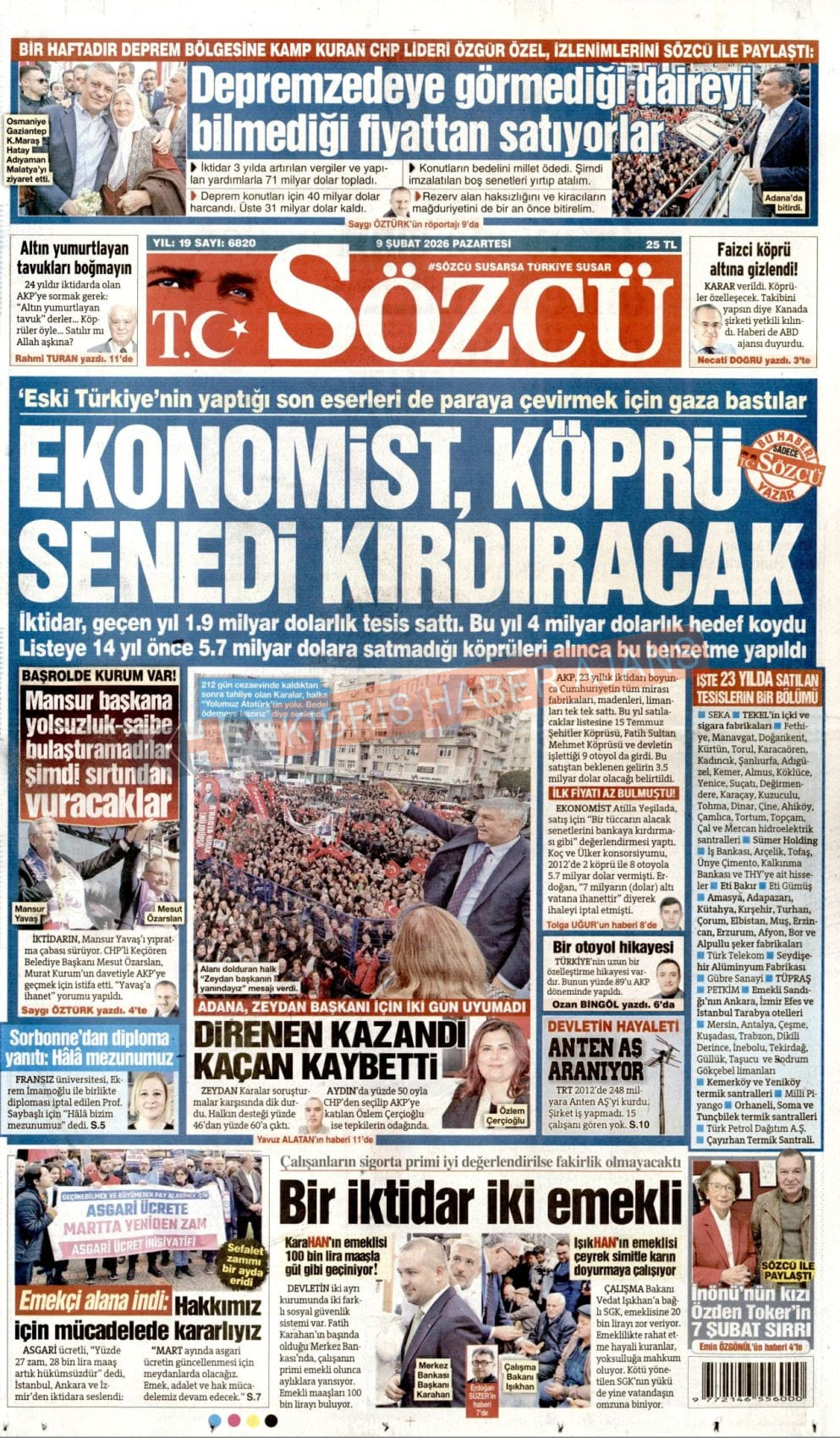 KIBRIS-TÜRKİYE Gazetelerinde Günün Manşetleri (09 ŞUBAT 2026)