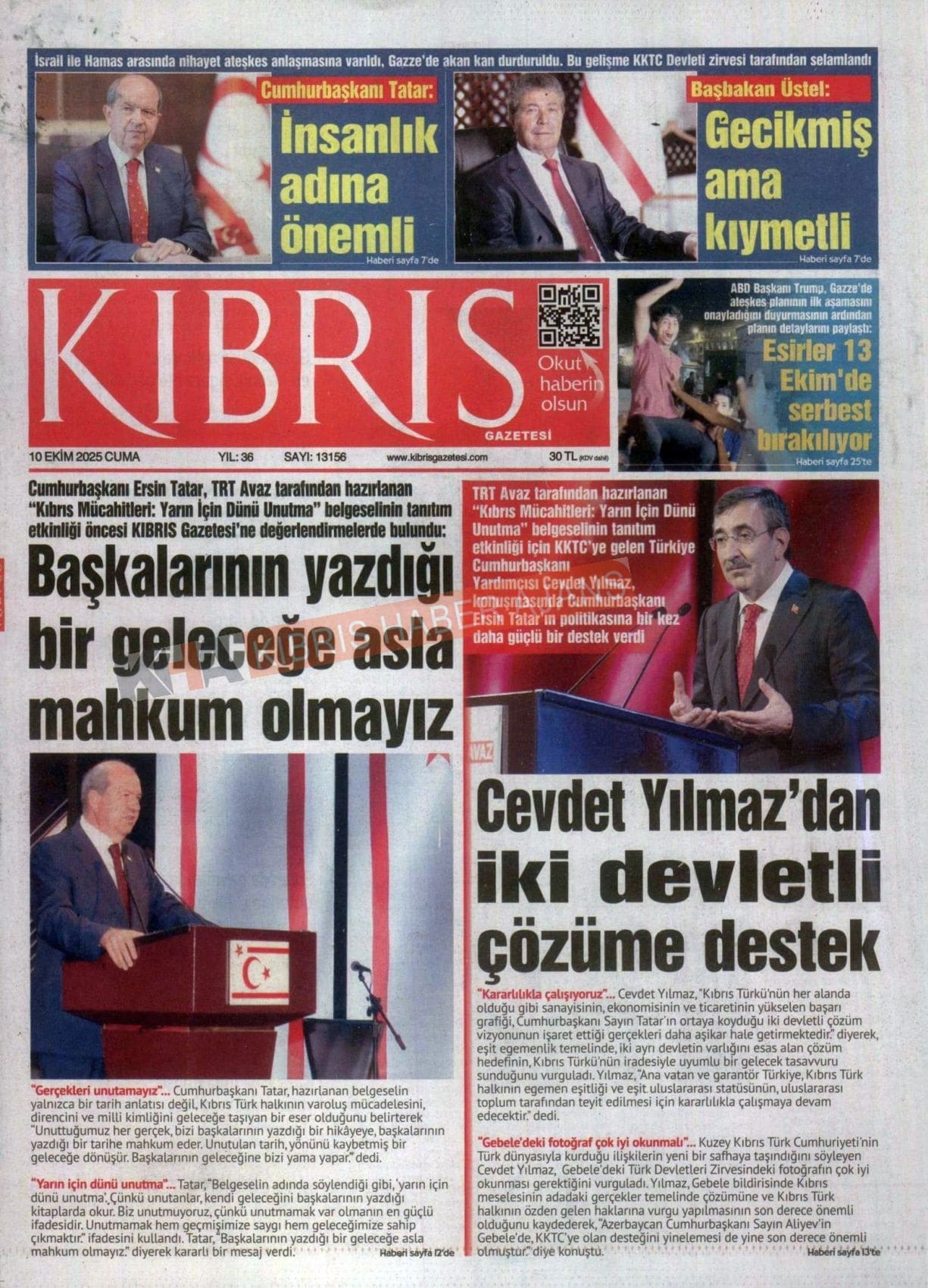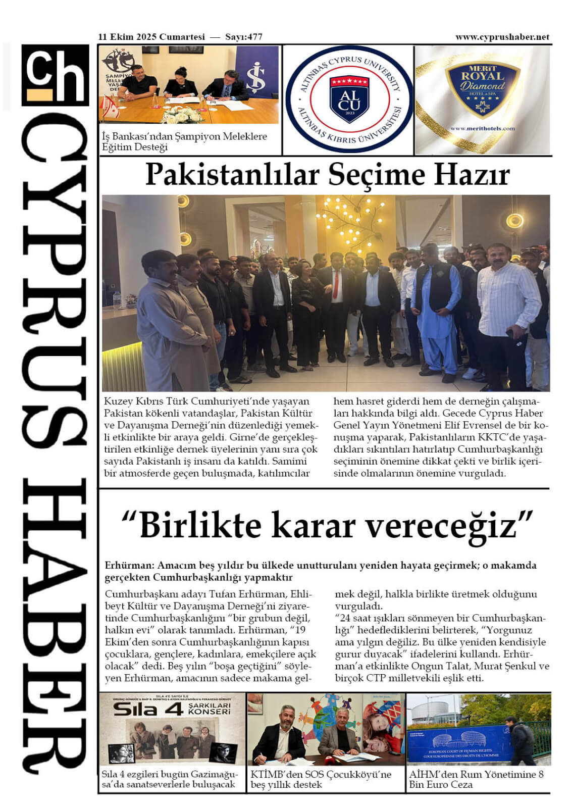 Sitede yayınlanan gazetelerdeki içeriklerden gazete sahipleri sorumludur. Yayınlanan gazeteler ve içeriklerinden Kıbrıs Haber Ajans ve Ajans Cyprus sorumlu tutulamaz.