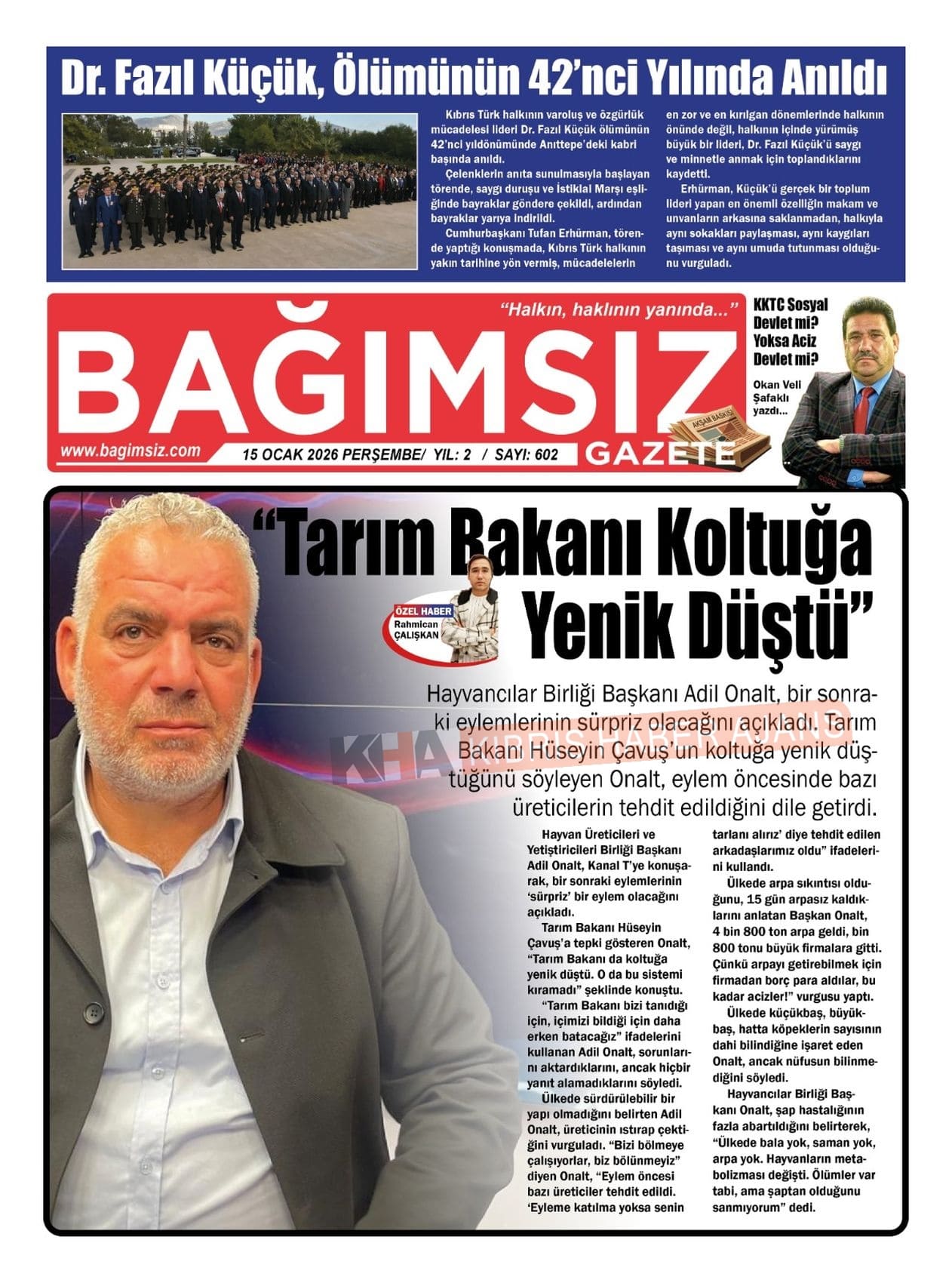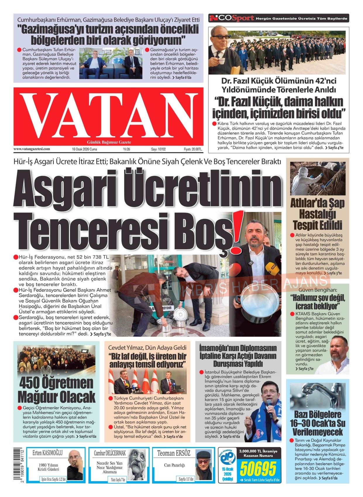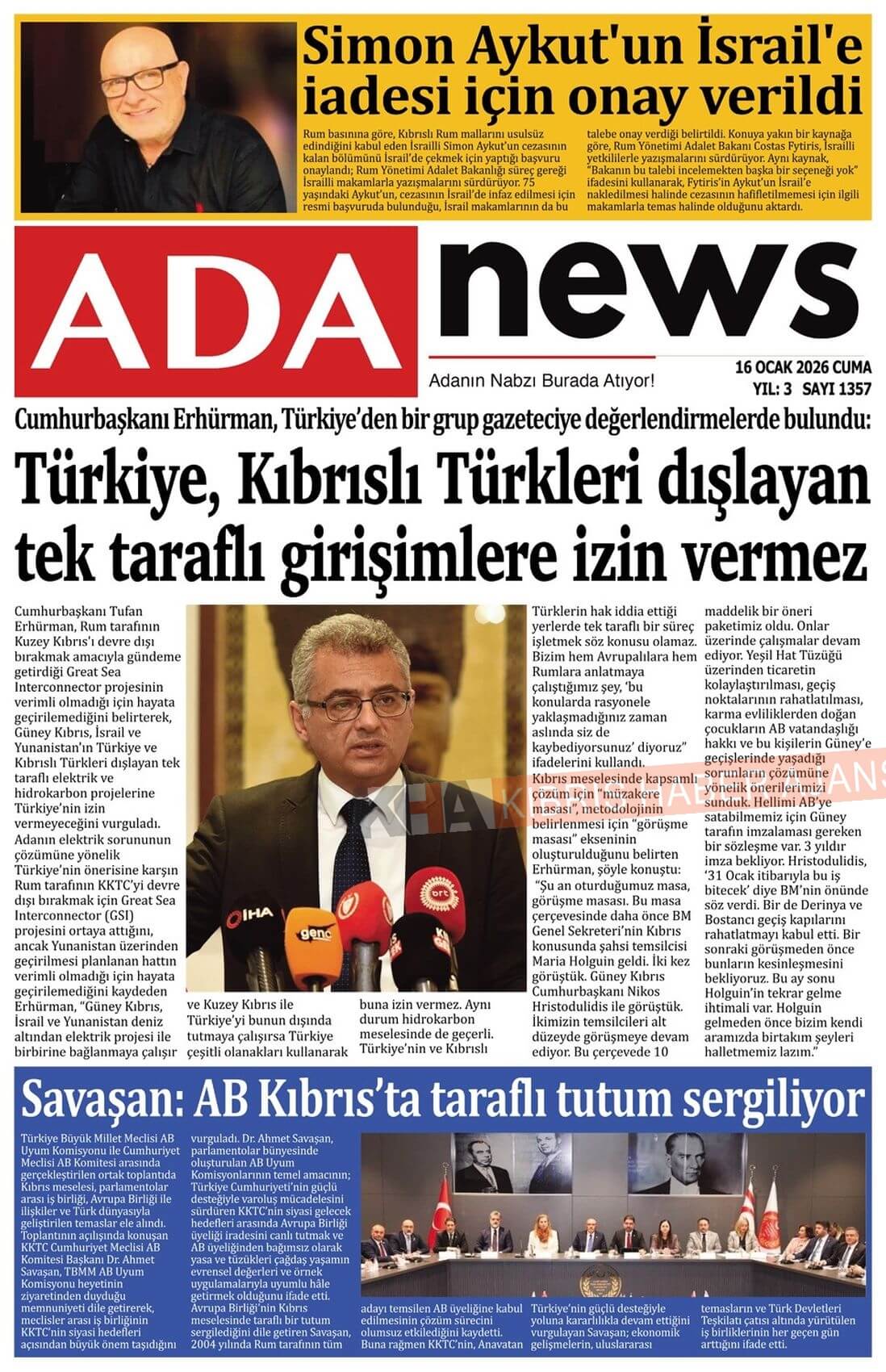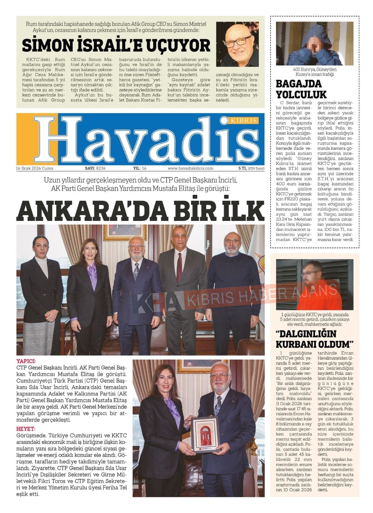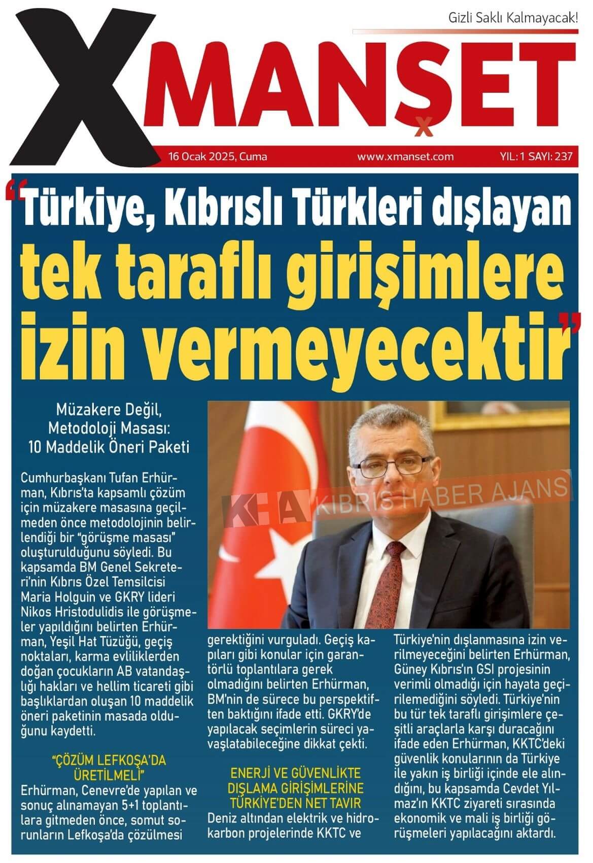 Sitede yayınlanan gazetelerdeki içeriklerden gazete sahipleri sorumludur. Yayınlanan gazeteler ve içeriklerinden Kıbrıs Haber Ajans ve Ajans Cyprus sorumlu tutulamaz.