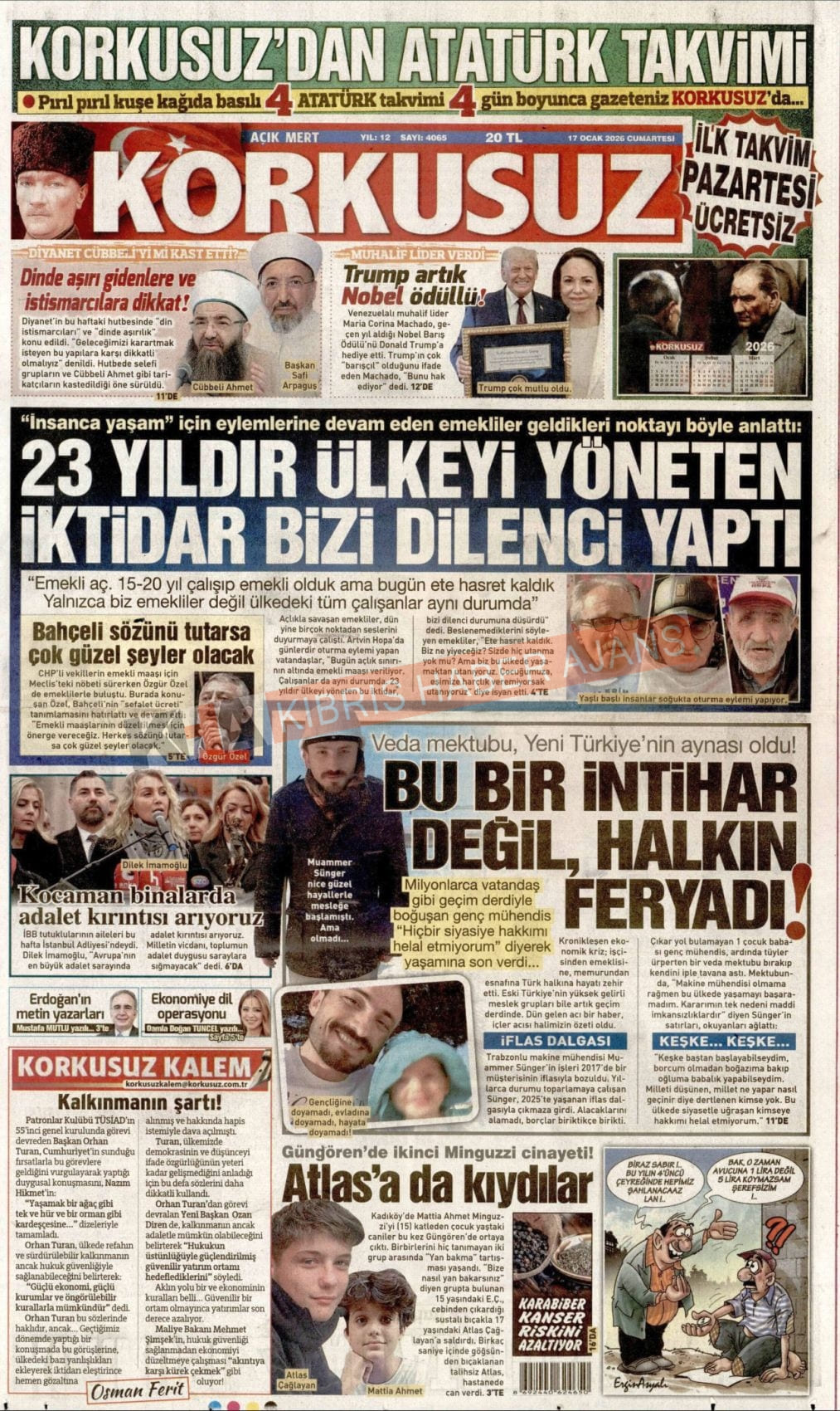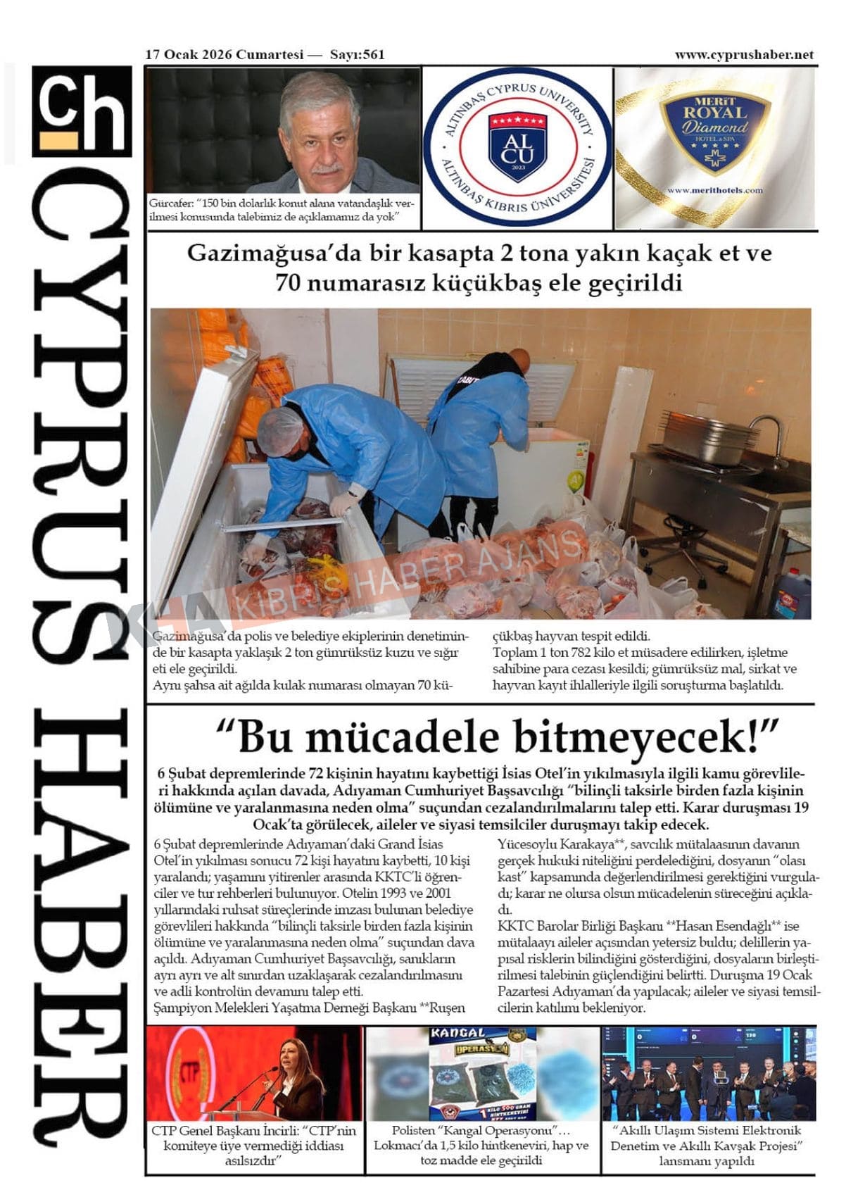Sitede yayınlanan gazetelerdeki içeriklerden gazete sahipleri sorumludur. Yayınlanan gazeteler ve içeriklerinden Kıbrıs Haber Ajans ve Ajans Cyprus sorumlu tutulamaz.
