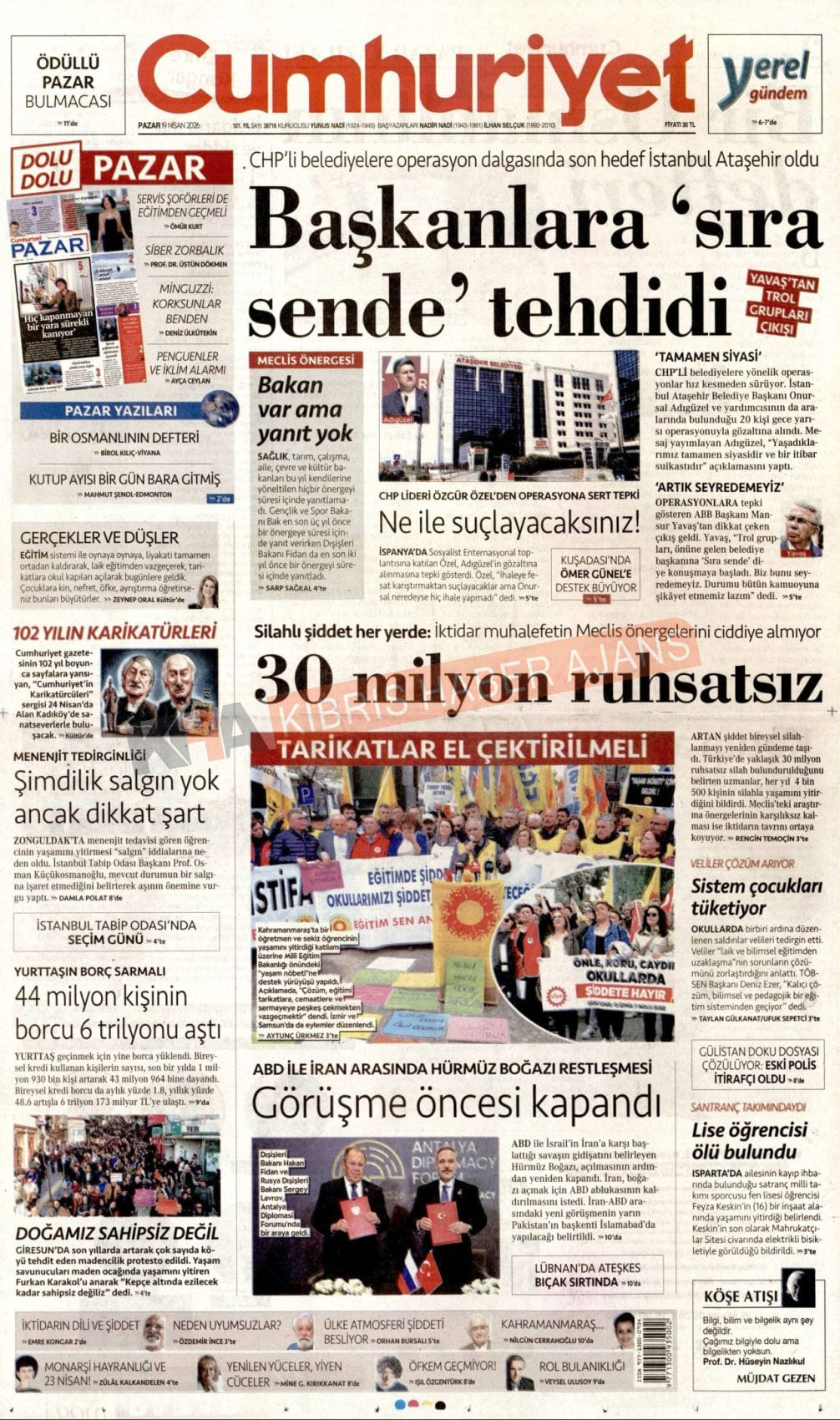 Sitede yayınlanan gazetelerdeki içeriklerden gazete sahipleri sorumludur. Yayınlanan gazeteler ve içeriklerinden Kıbrıs Haber Ajans ve Ajans Cyprus sorumlu tutulamaz.