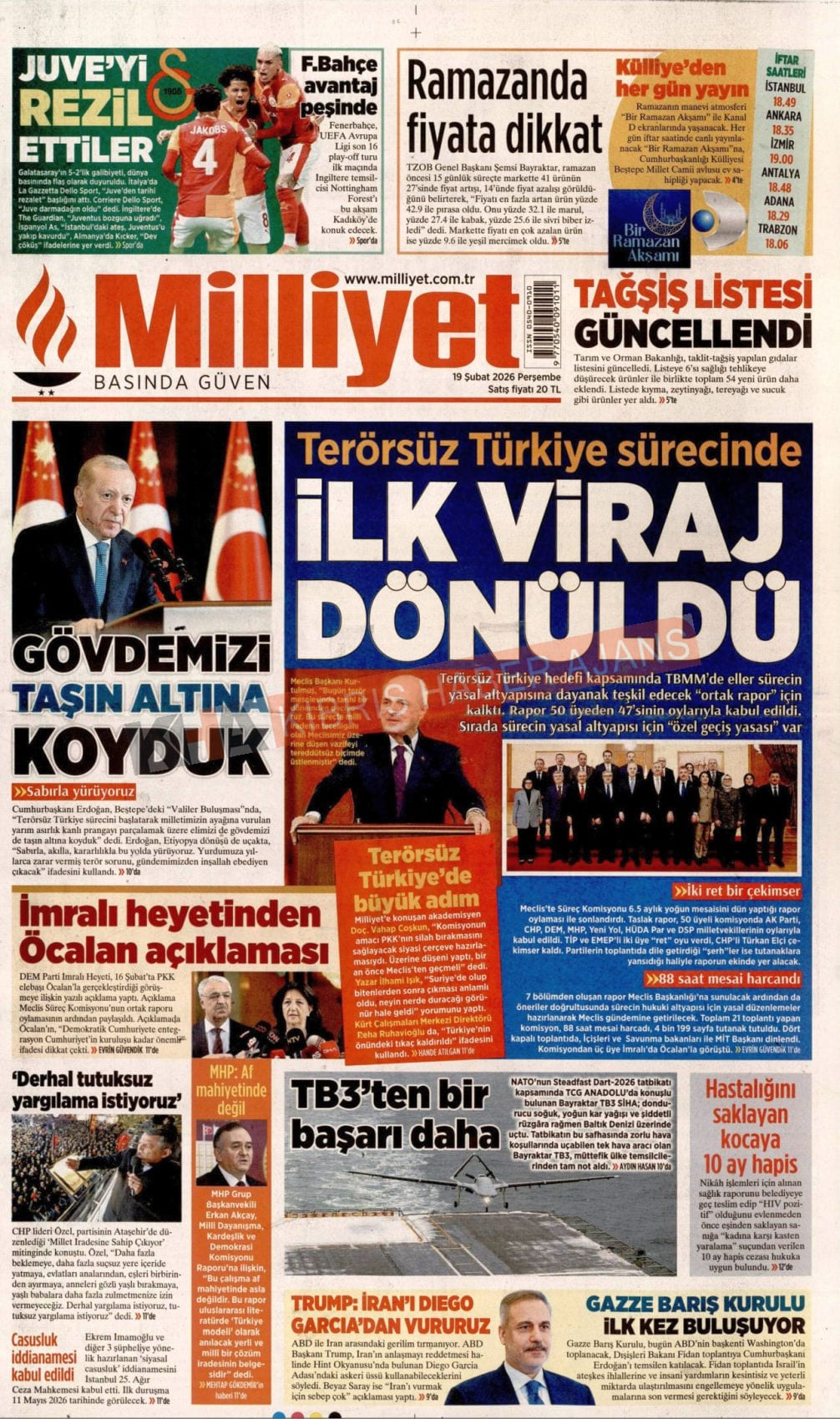 KIBRIS-TÜRKİYE Gazetelerinde Günün Manşetleri (19 ŞUBAT 2026)