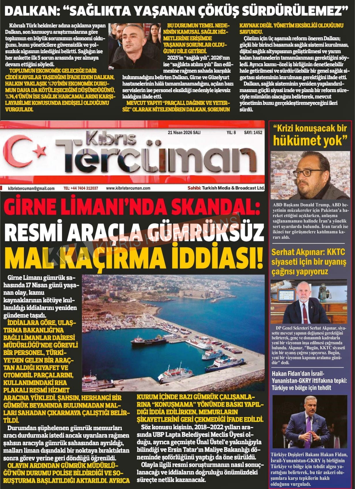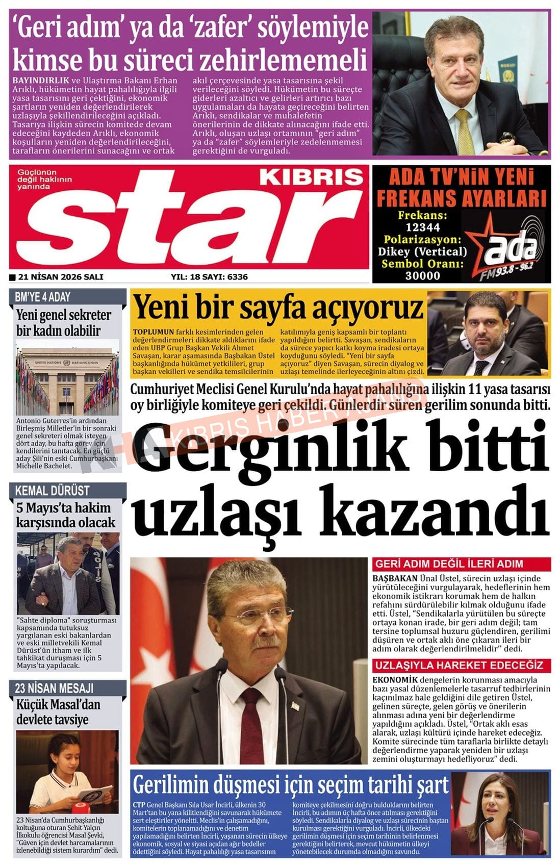 KIBRIS -TÜRKİYE Gazetelerinde Günün Manşetleri (21 NİSAN 2026)