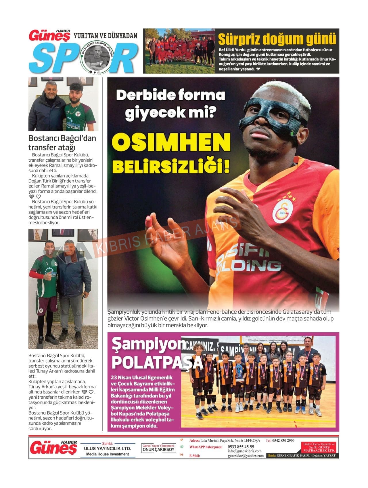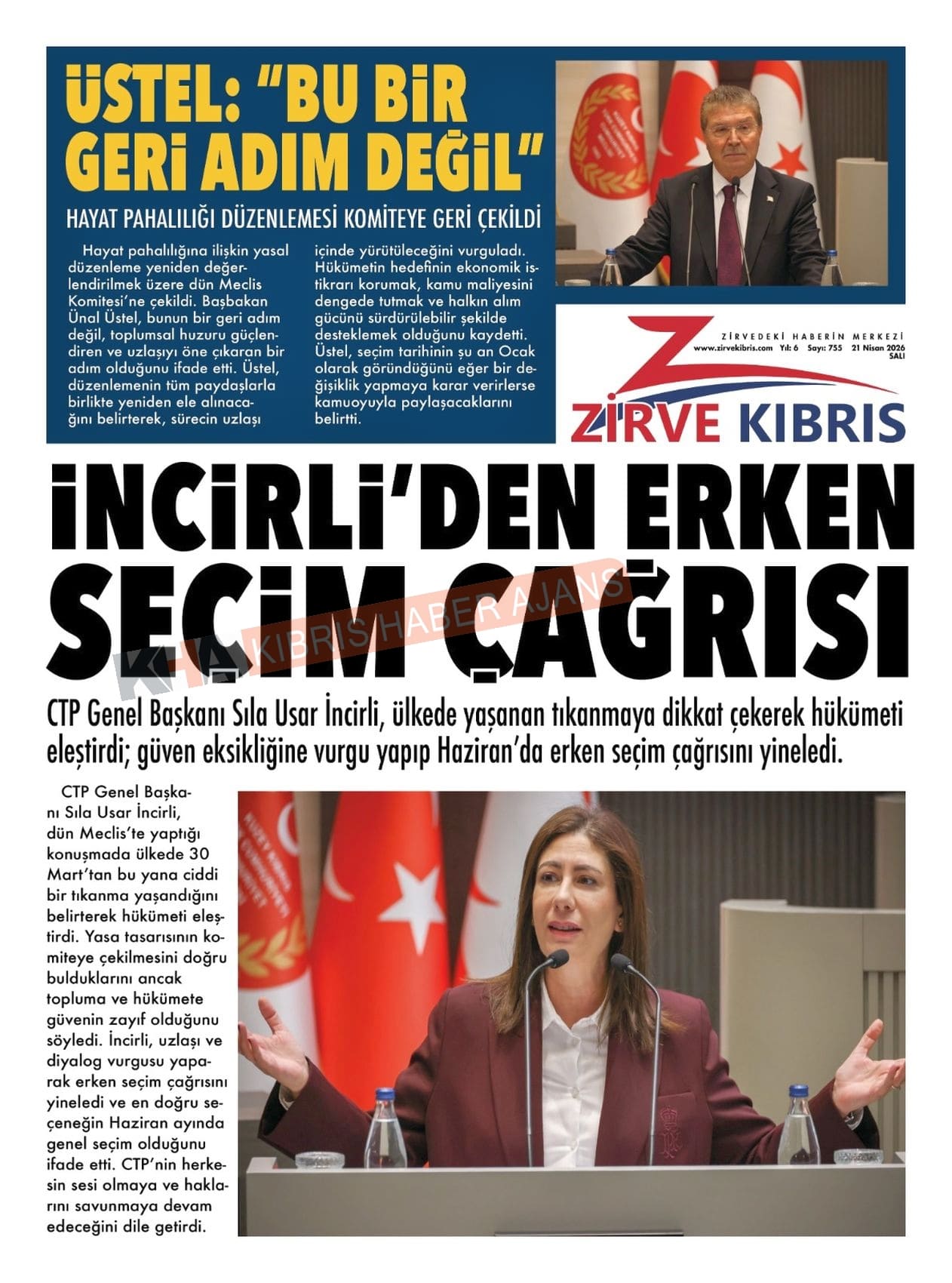 Sitede yayınlanan gazetelerdeki içeriklerden gazete sahipleri sorumludur. Yayınlanan gazeteler ve içeriklerinden Kıbrıs Haber Ajans ve Ajans Cyprus sorumlu tutulamaz.