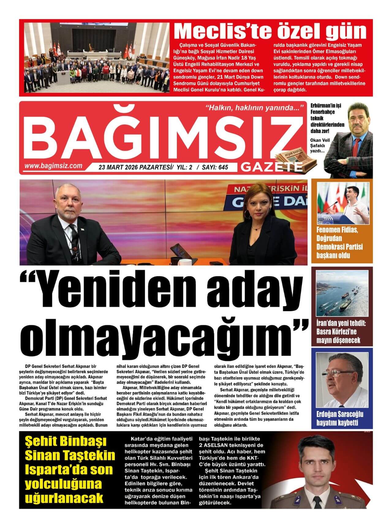 Ana SayfaGazetelerKIBRIS -TÜRKİYE Gazetelerinde Günün Manşetleri (24 MART 2026)