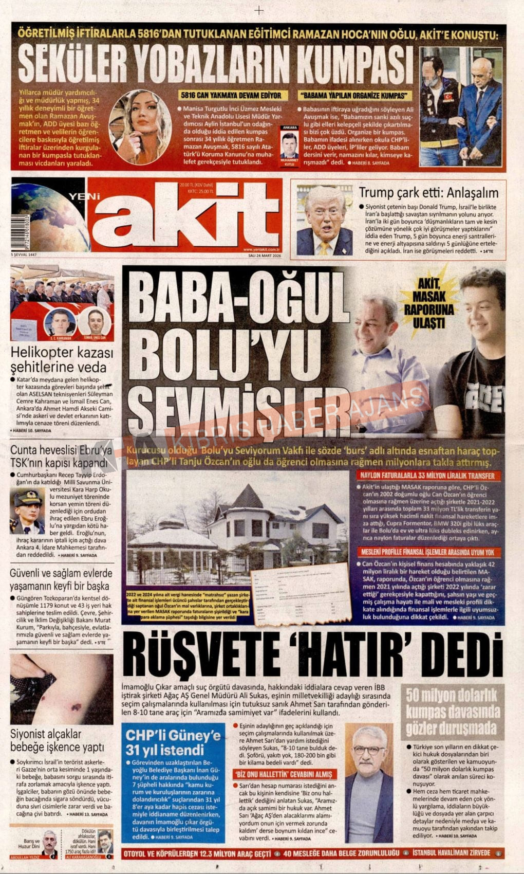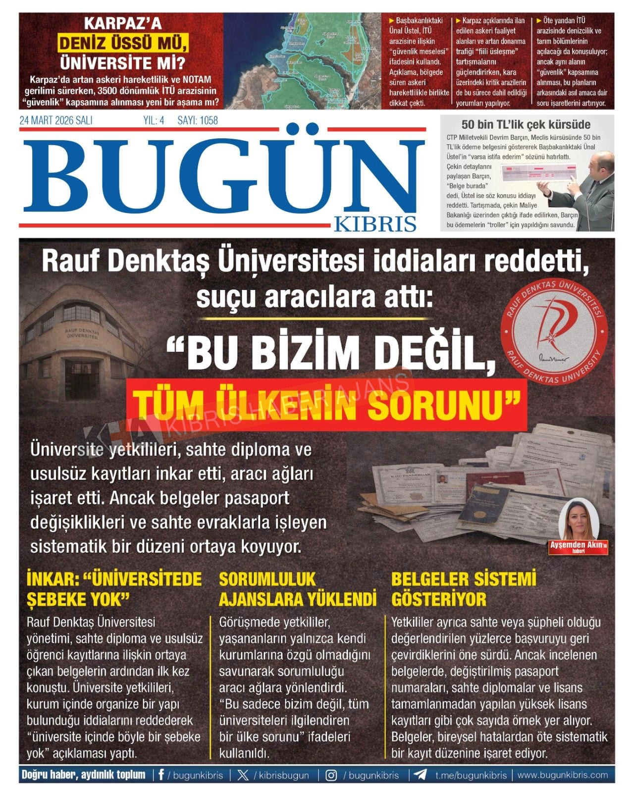 KIBRIS -TÜRKİYE Gazetelerinde Günün Manşetleri (24 MART 2026)