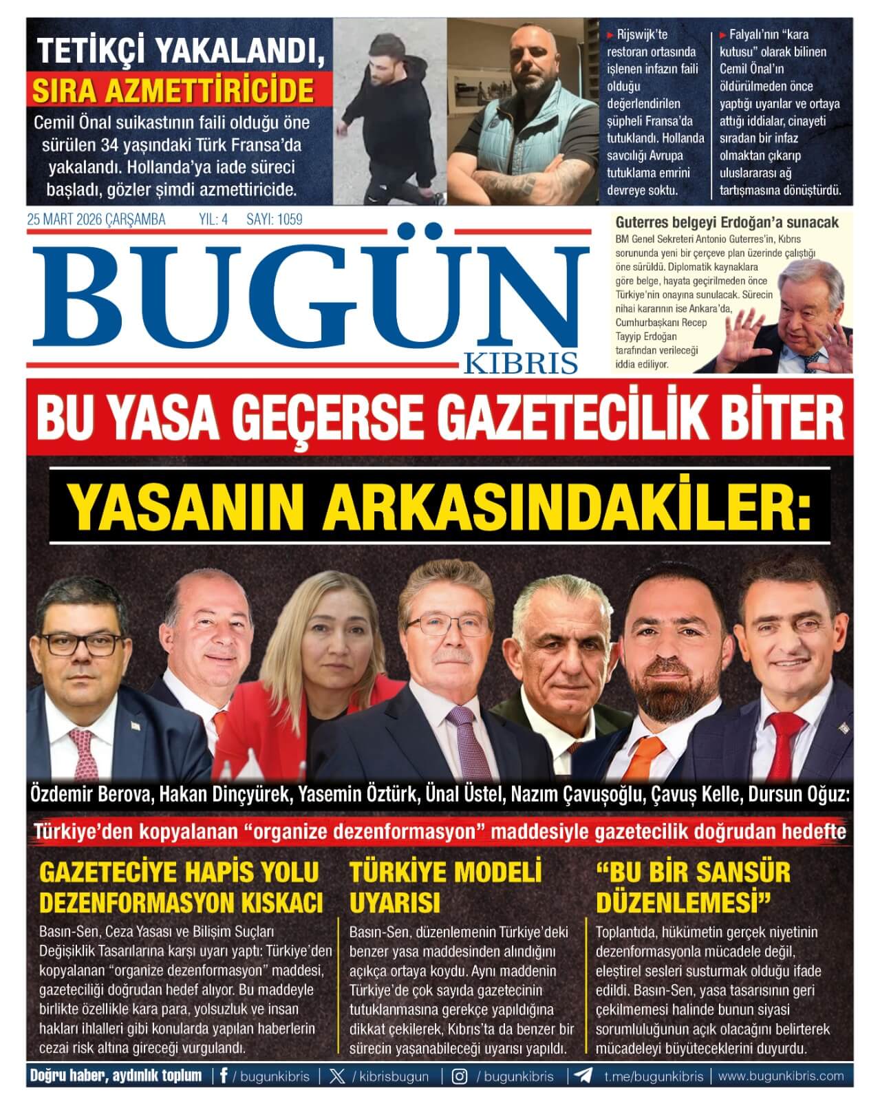 KIBRIS -TÜRKİYE Gazetelerinde Günün Manşetleri (25 MART 2026)