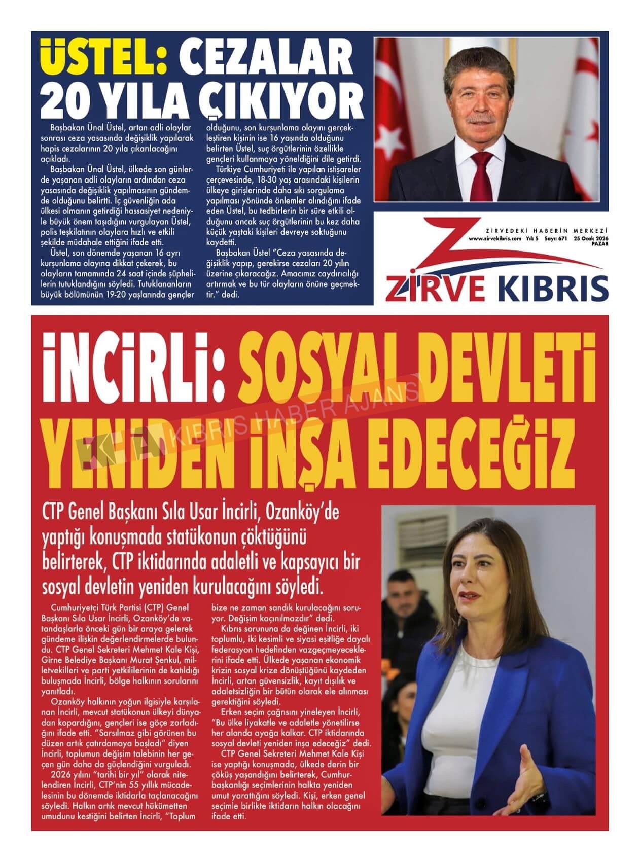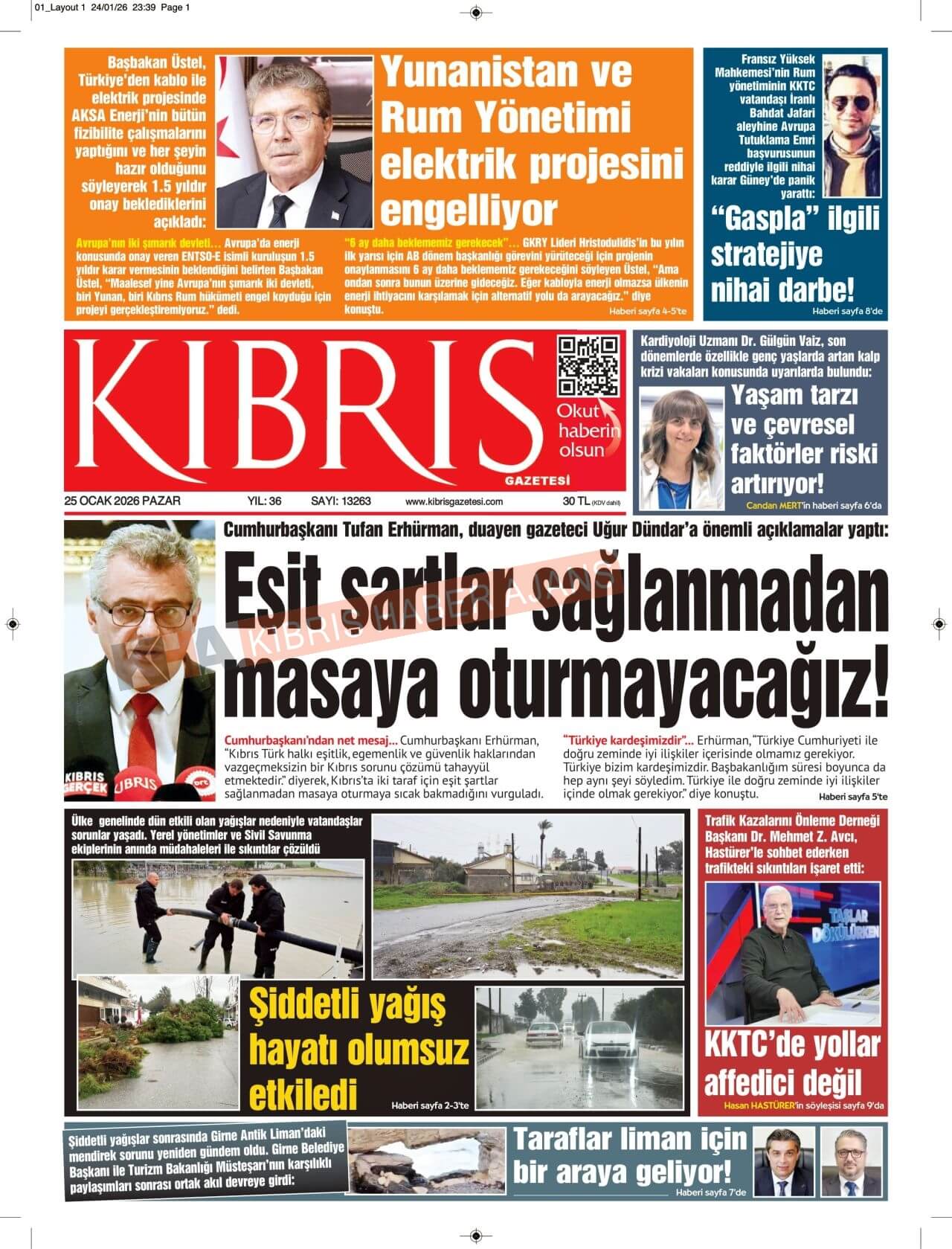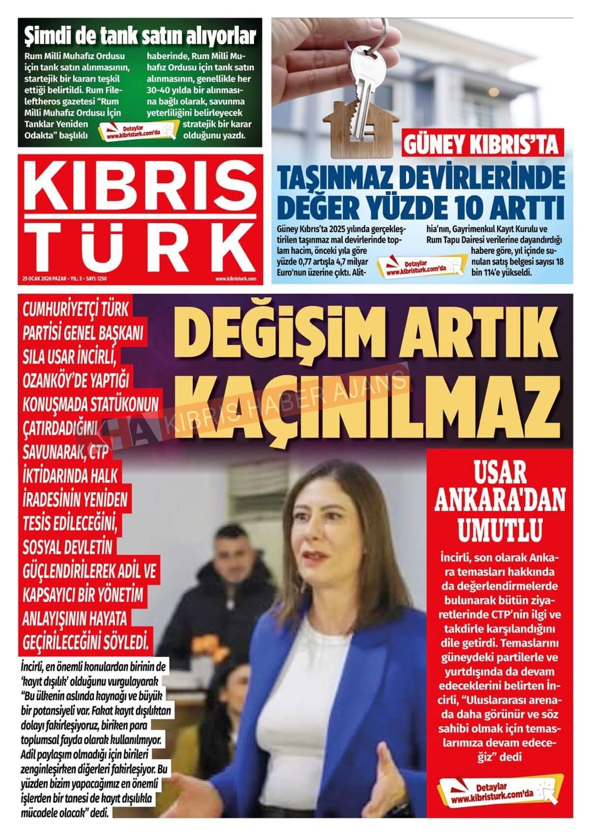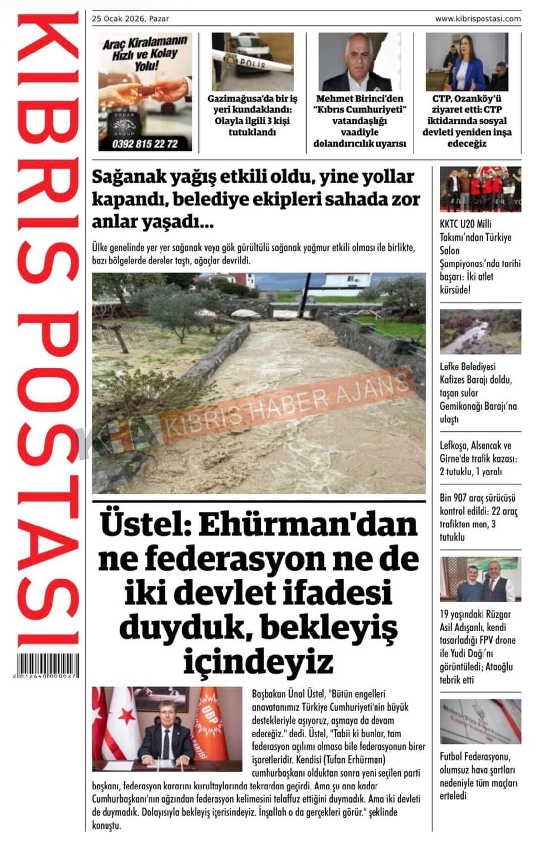 KIBRIS-TÜRKİYE Gazetelerinde Günün Manşetleri (25 OCAK 2026)