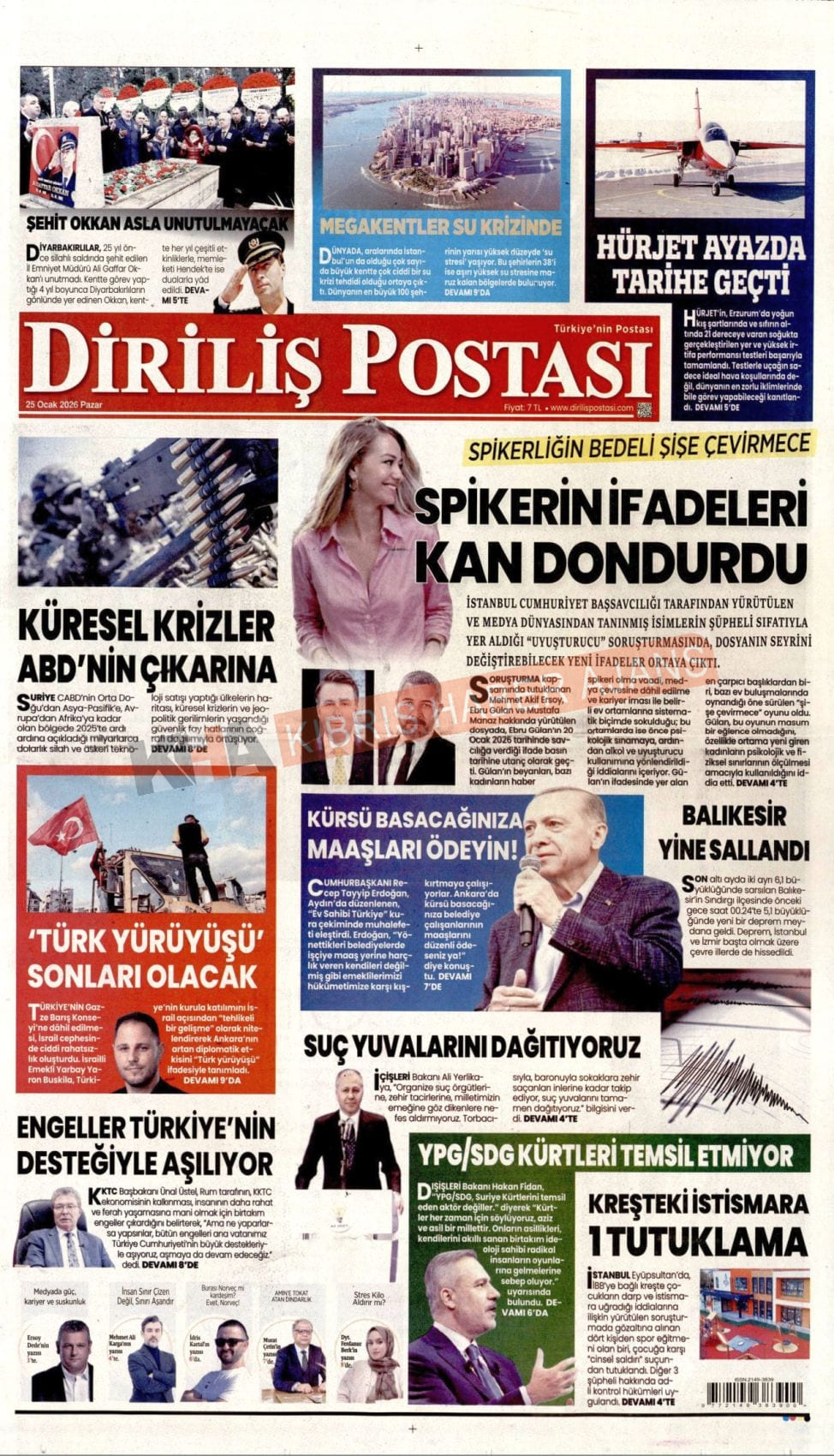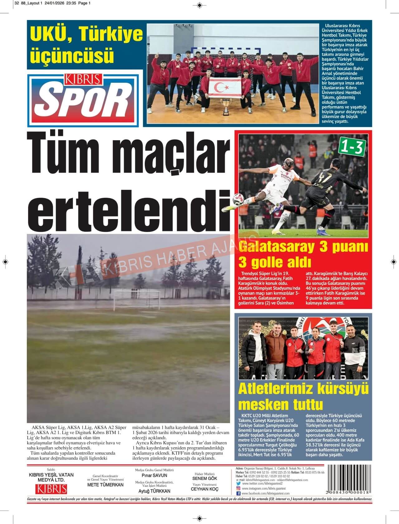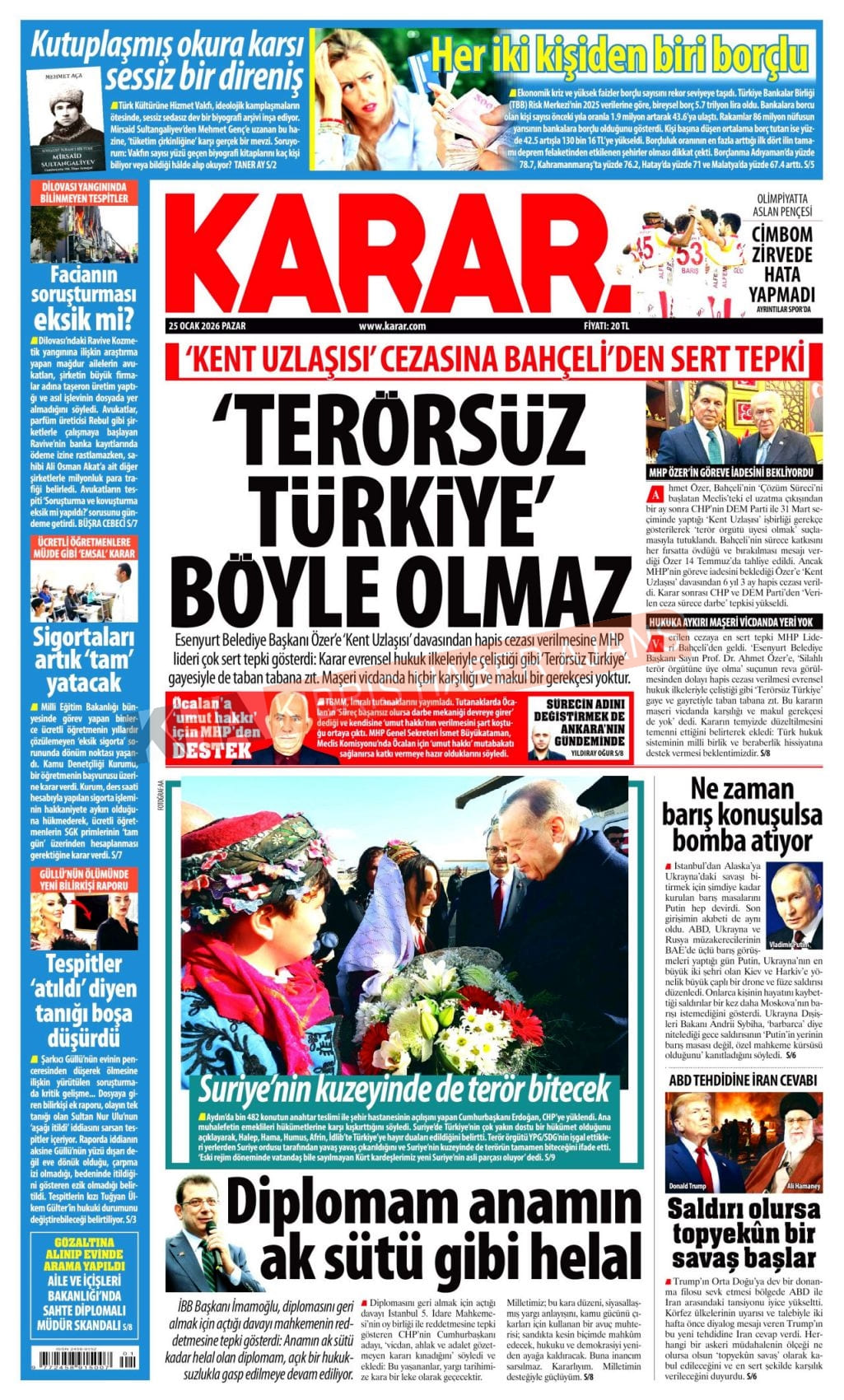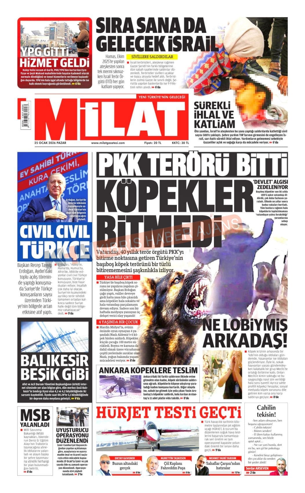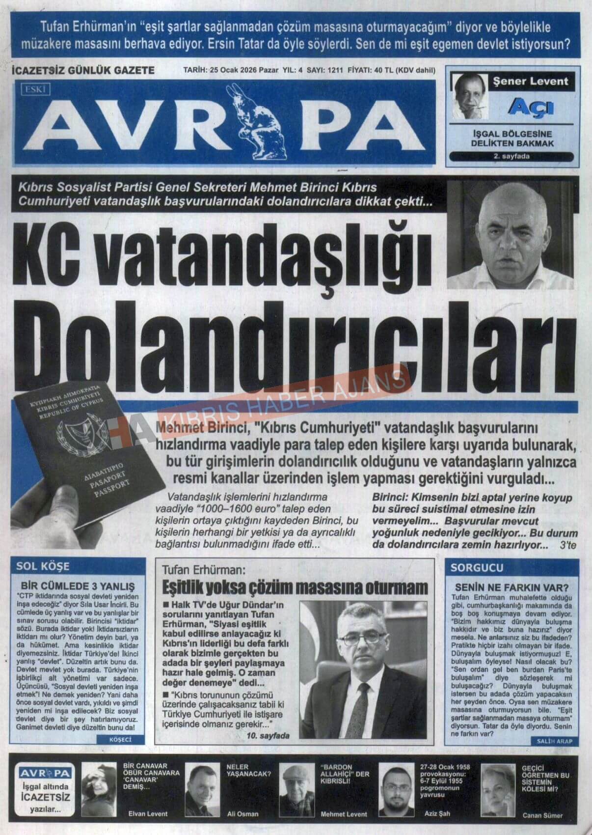 KIBRIS-TÜRKİYE Gazetelerinde Günün Manşetleri (25 OCAK 2026)