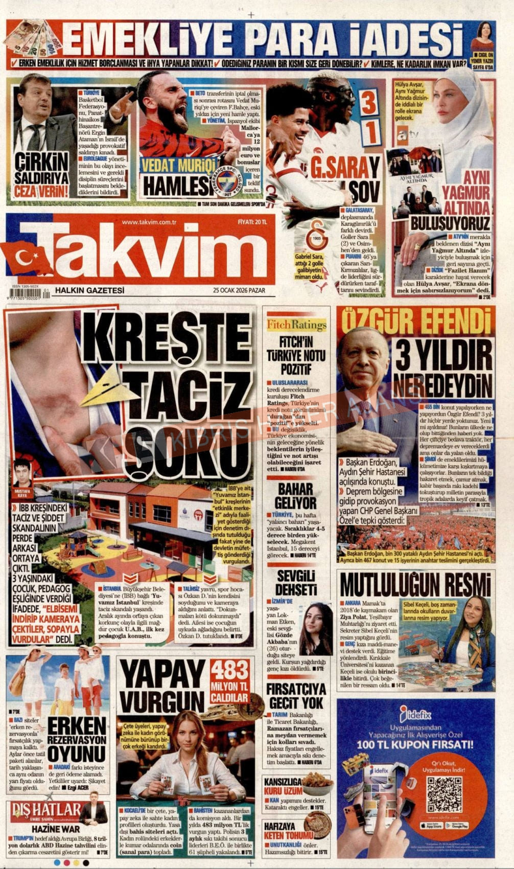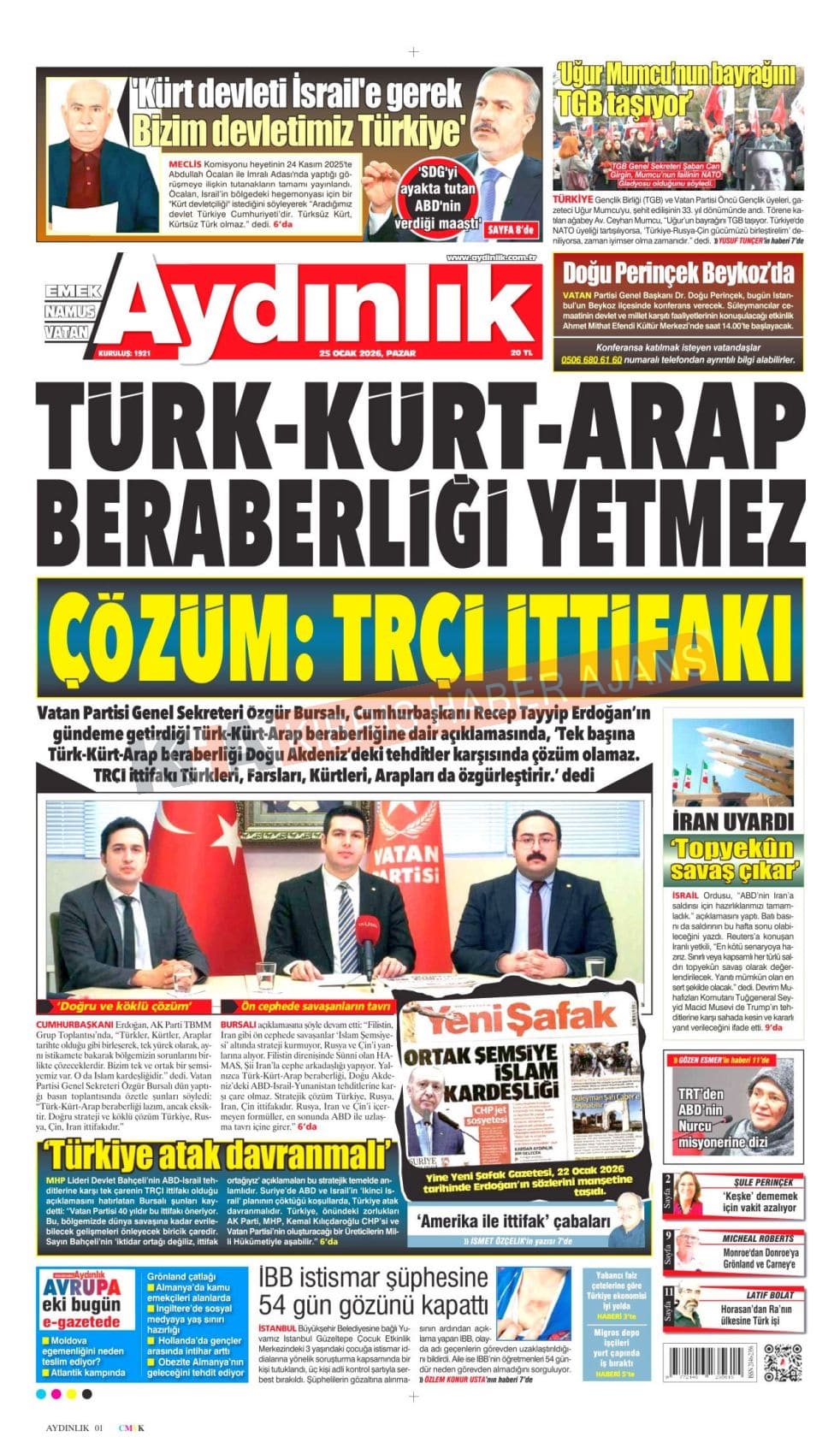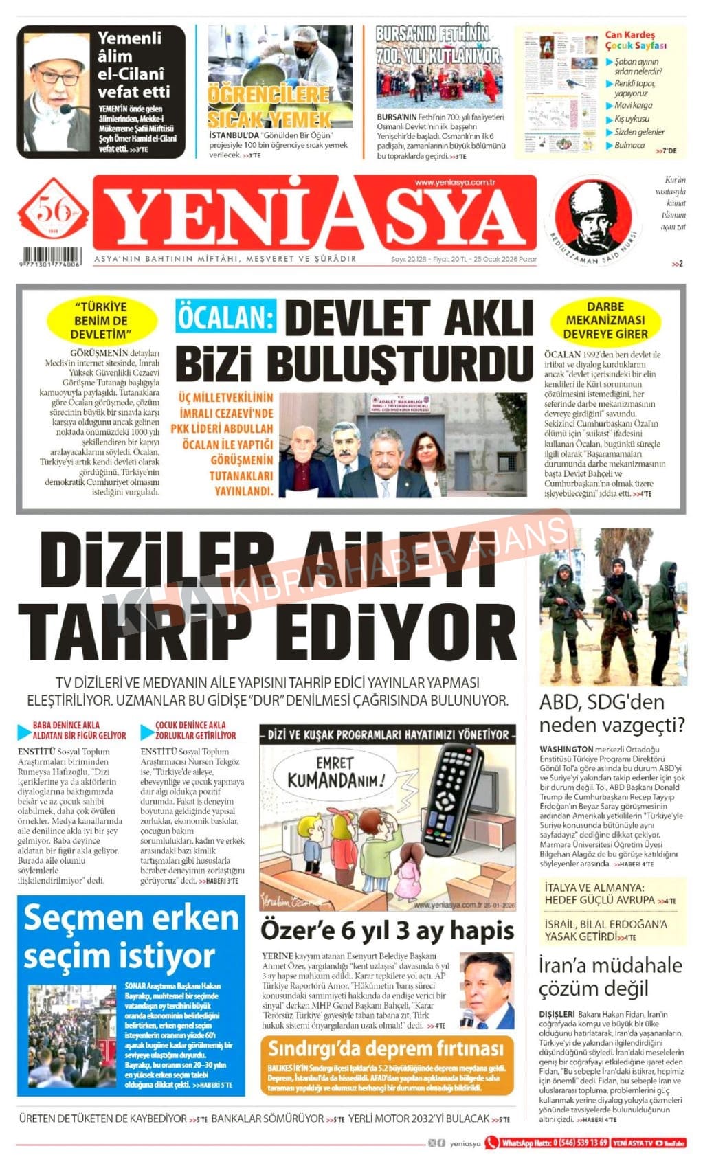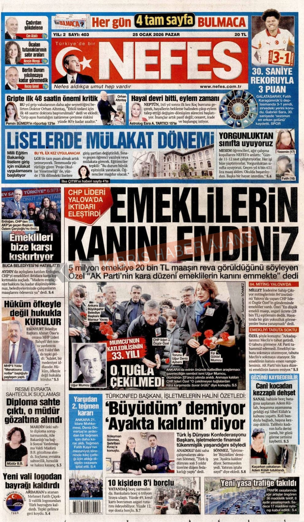 KIBRIS-TÜRKİYE Gazetelerinde Günün Manşetleri (25 OCAK 2026)