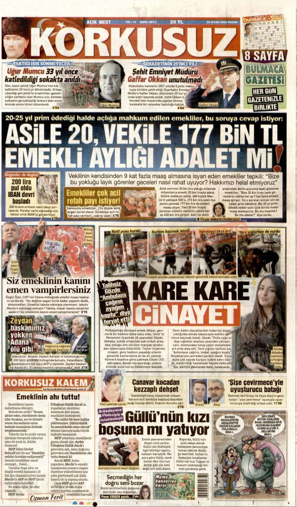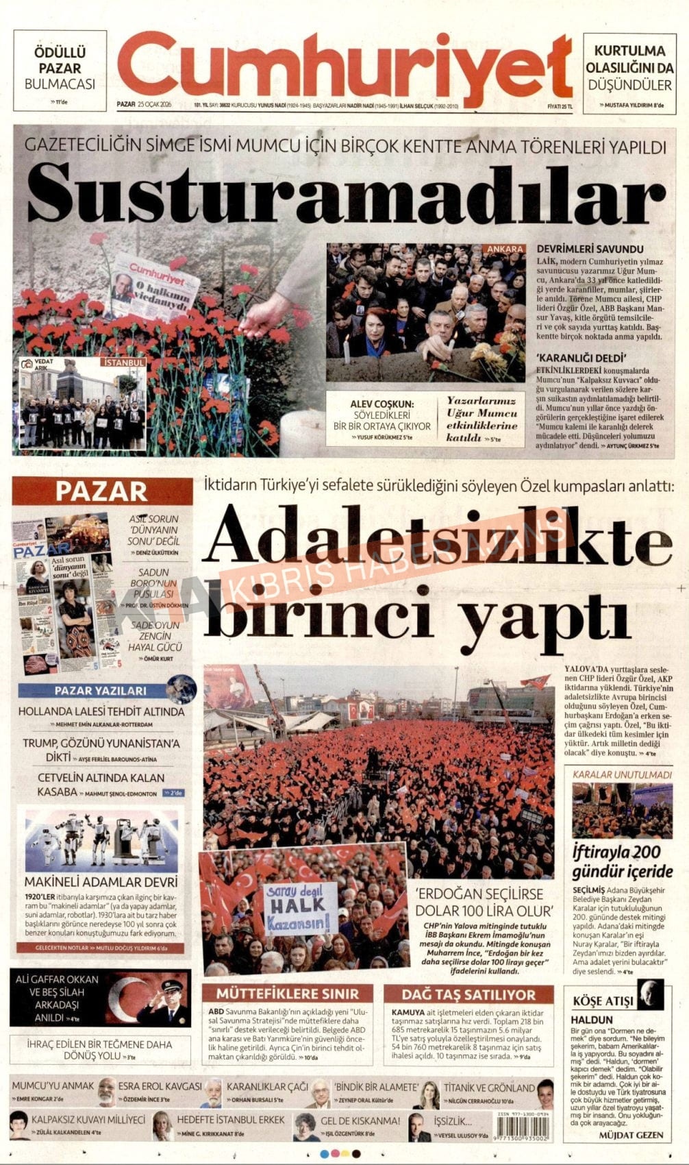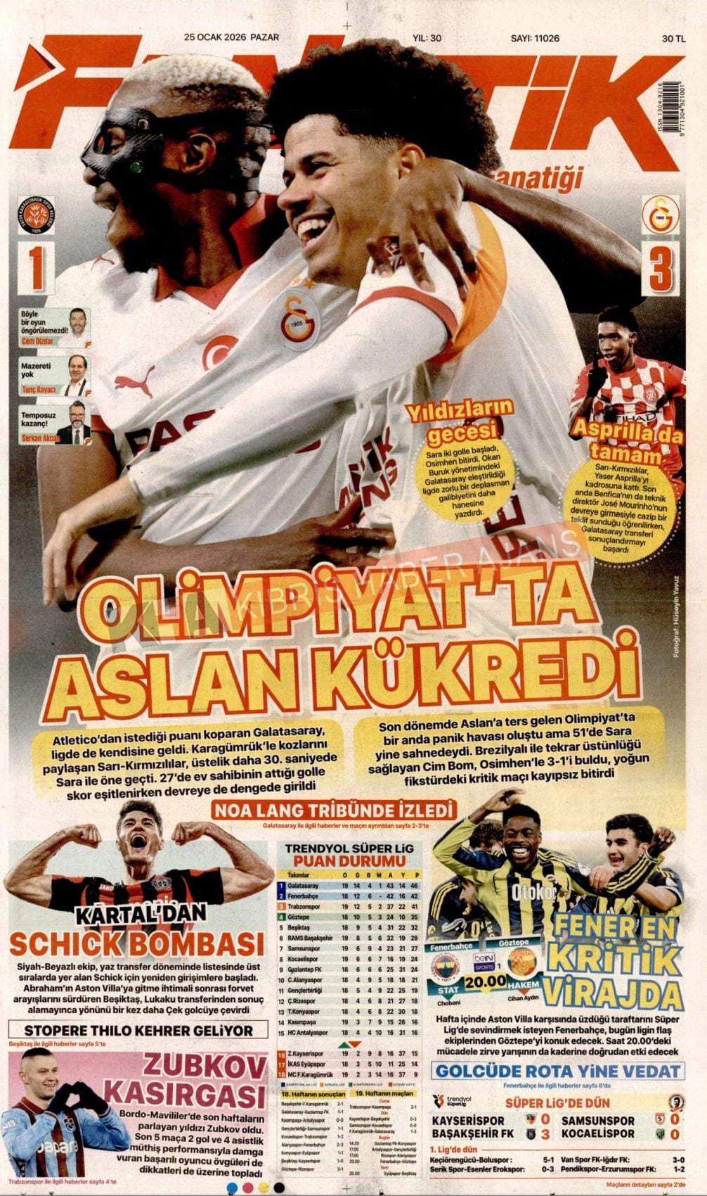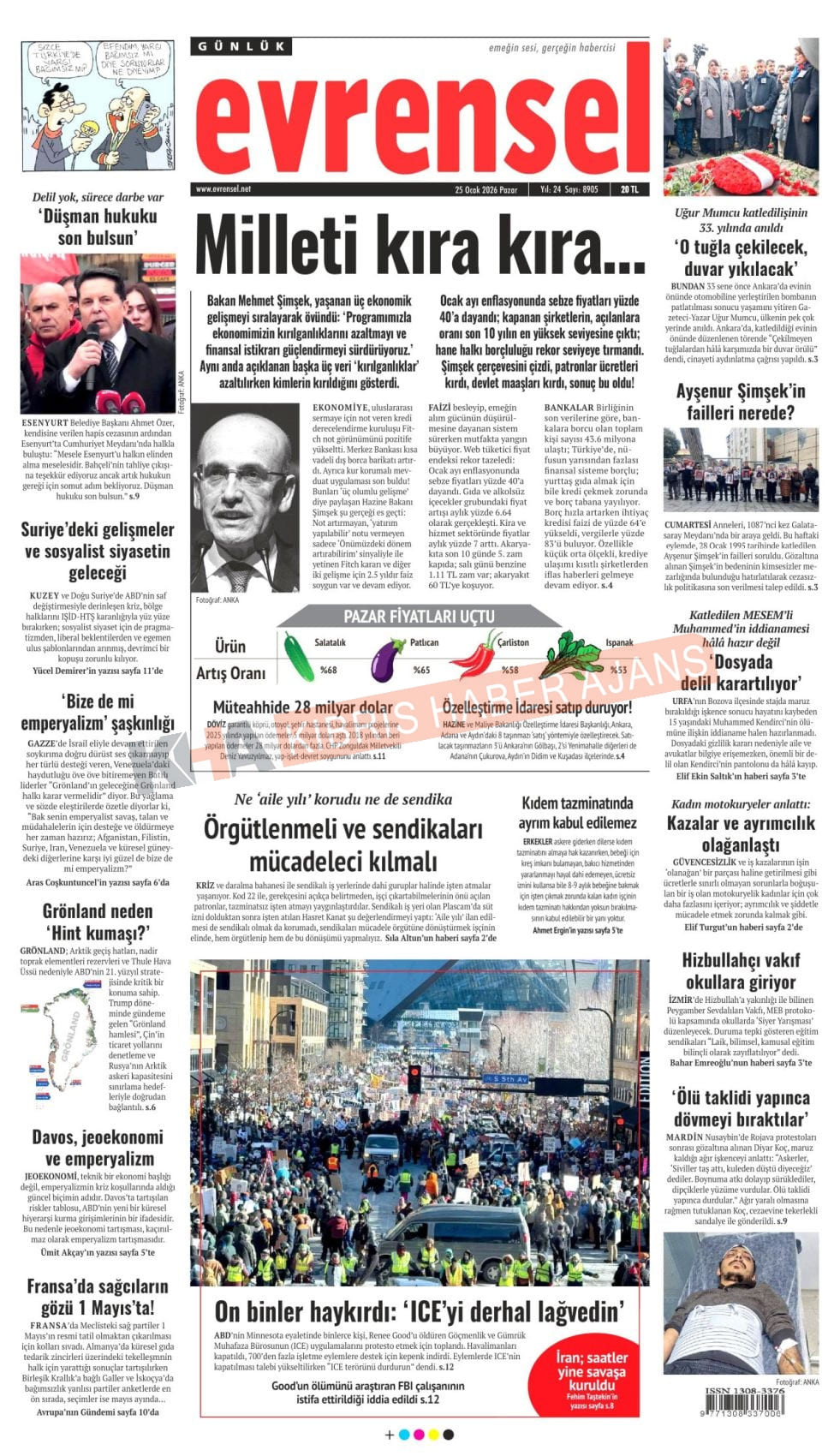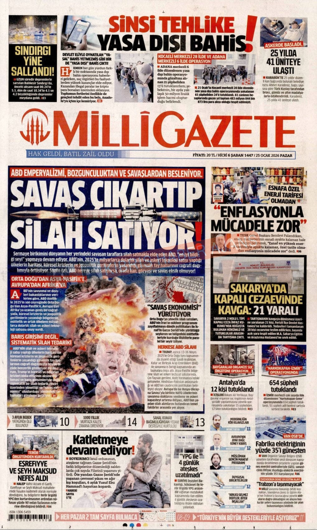 KIBRIS-TÜRKİYE Gazetelerinde Günün Manşetleri (25 OCAK 2026)