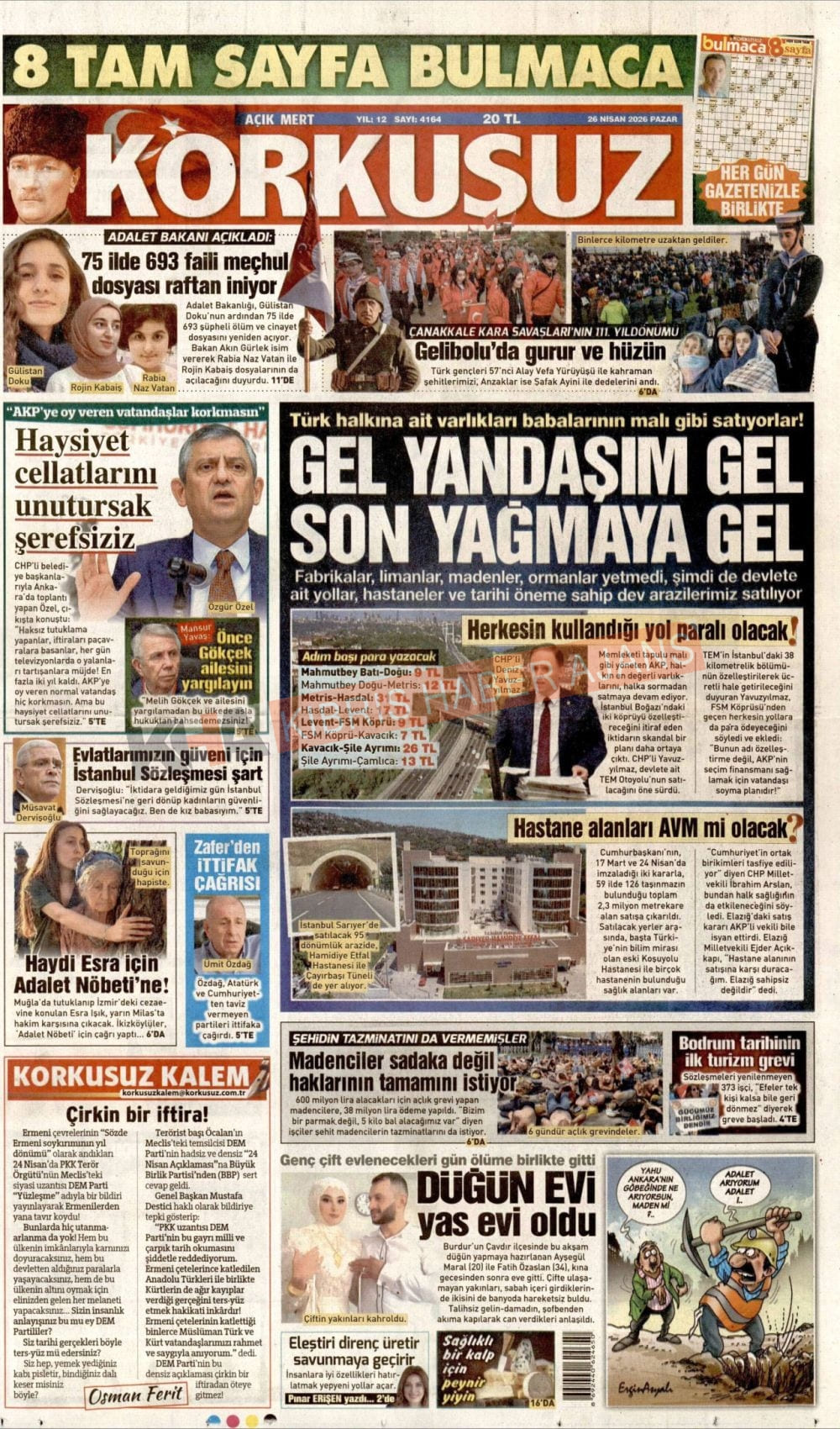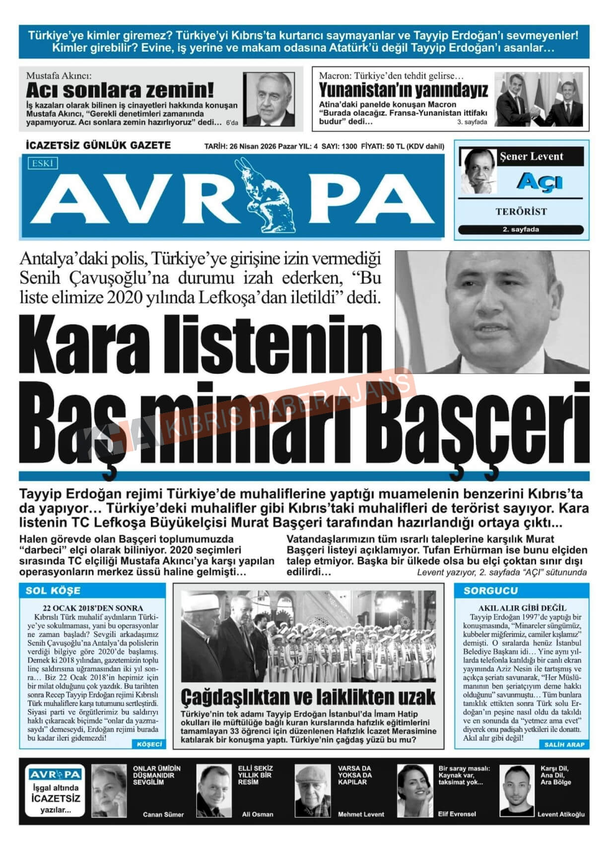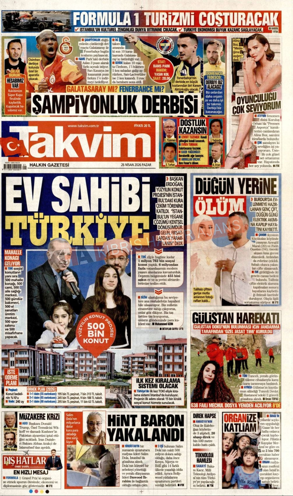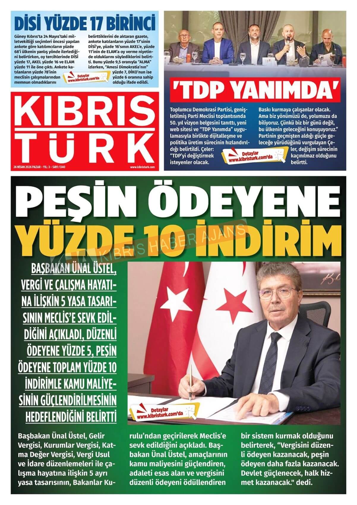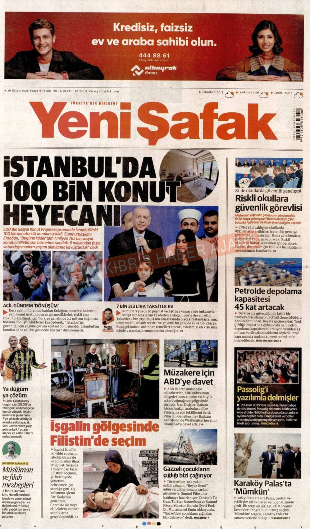 KIBRIS -TÜRKİYE Gazetelerinde Günün Manşetleri (26 NİSAN 2026)