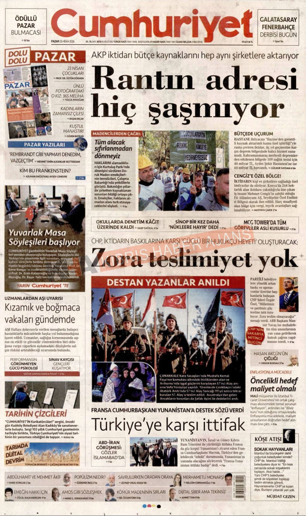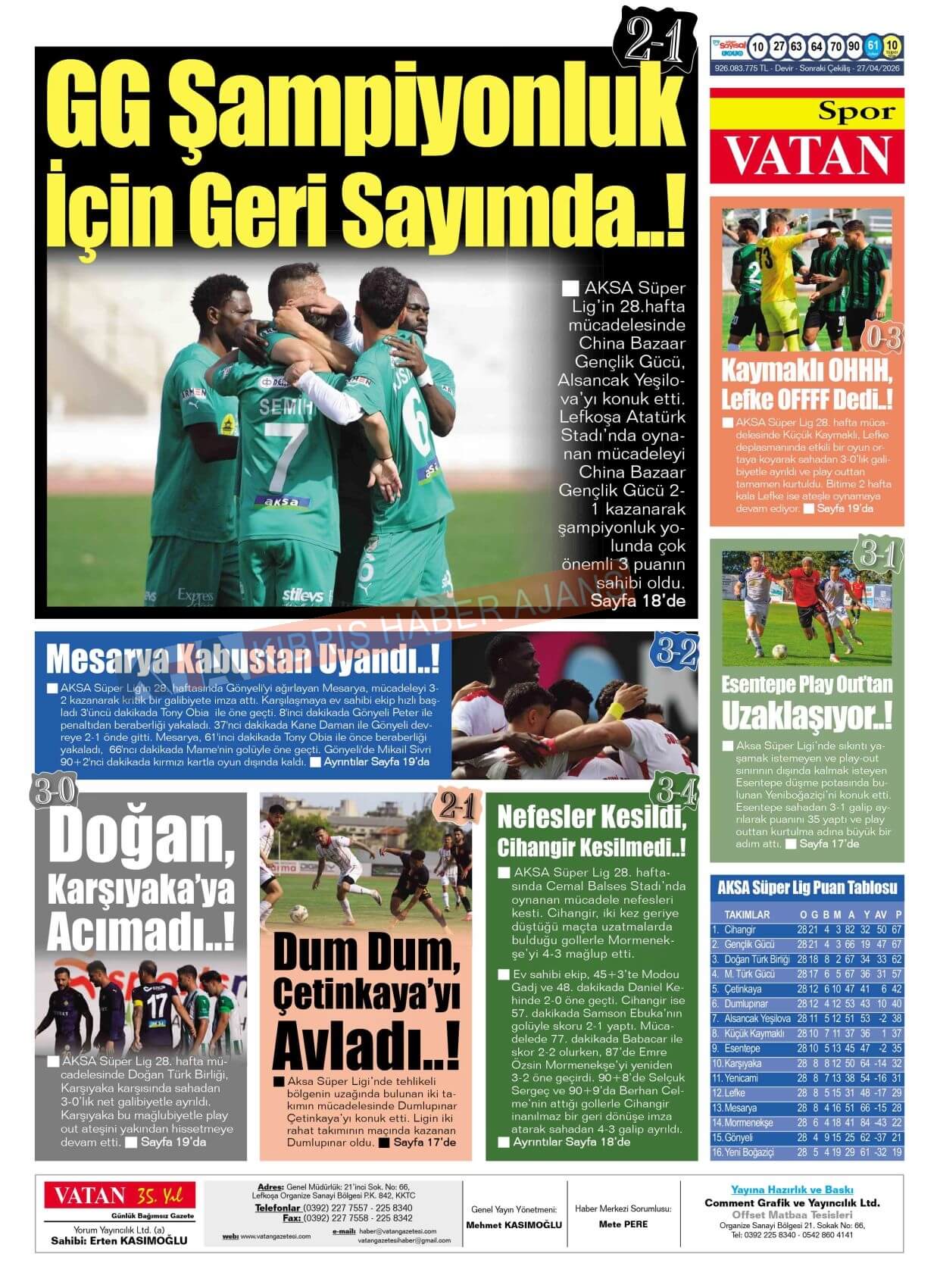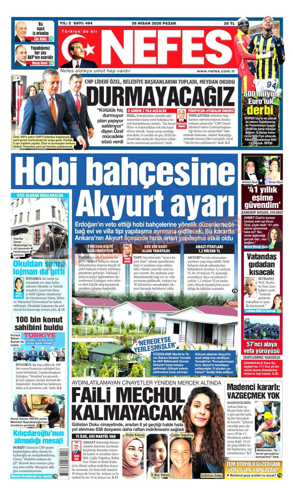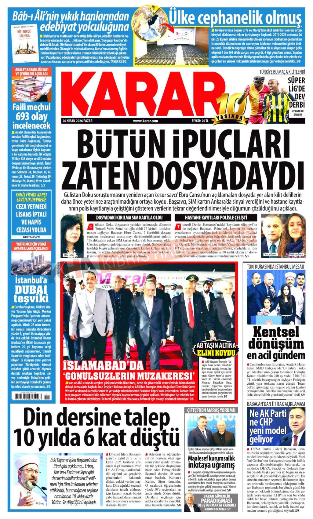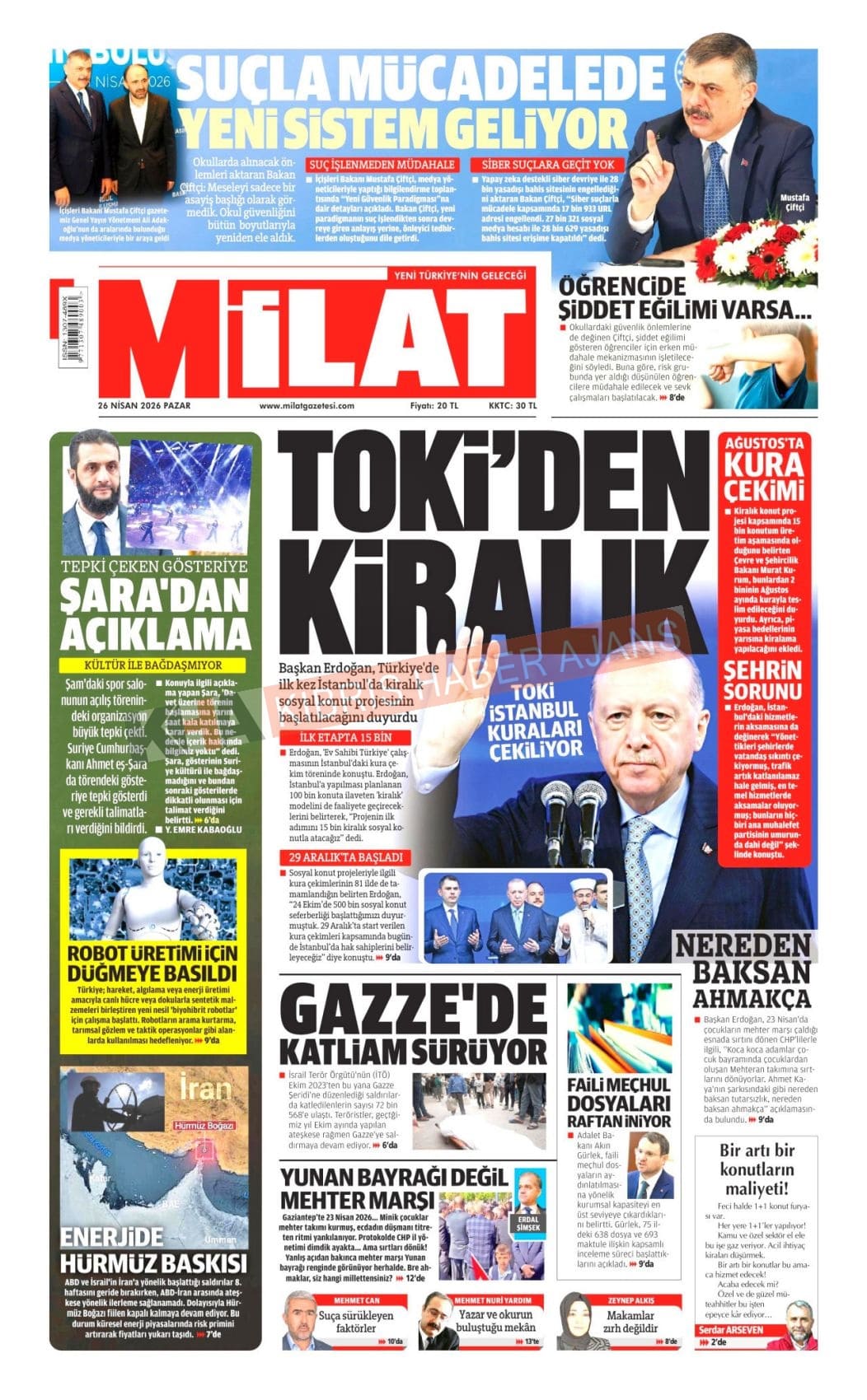 Ana SayfaGazetelerKIBRIS -TÜRKİYE Gazetelerinde Günün Manşetleri (26 NİSAN 2026)