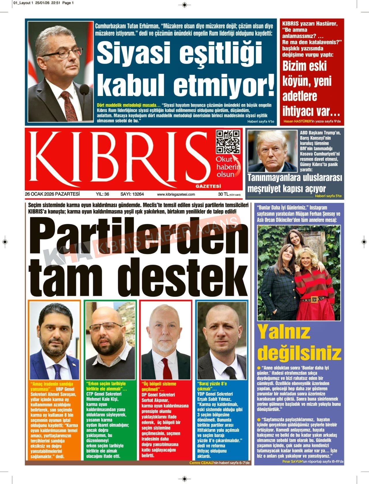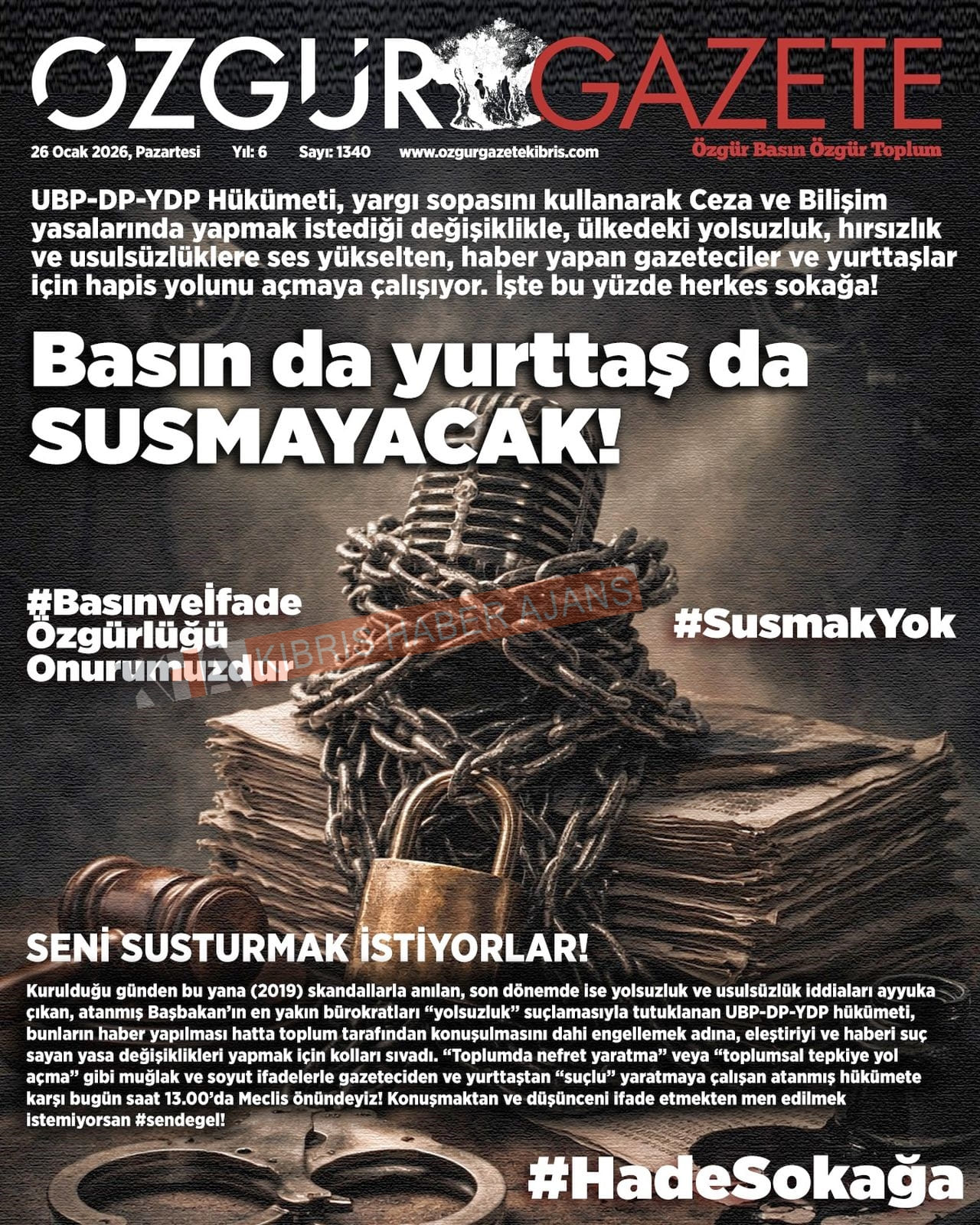 Sitede yayınlanan gazetelerdeki içeriklerden gazete sahipleri sorumludur. Yayınlanan gazeteler ve içeriklerinden Kıbrıs Haber Ajans ve Ajans Cyprus sorumlu tutulamaz.