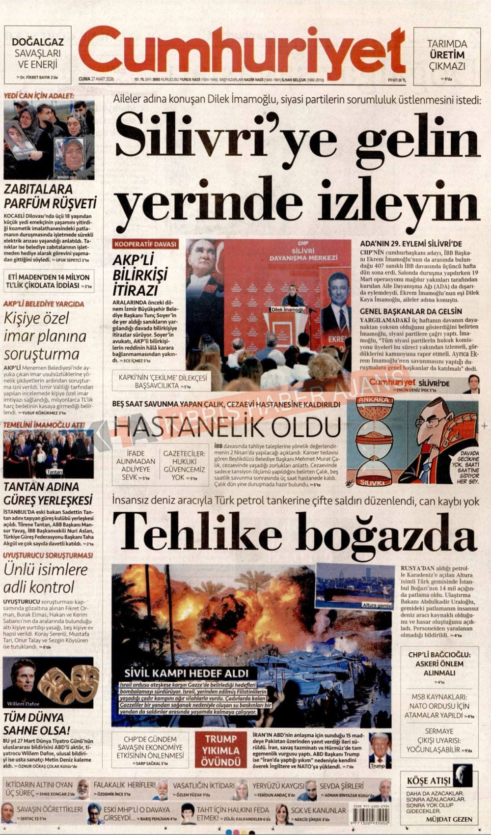 Ana SayfaGazetelerKIBRIS -TÜRKİYE Gazetelerinde Günün Manşetleri (27 MART 2026)