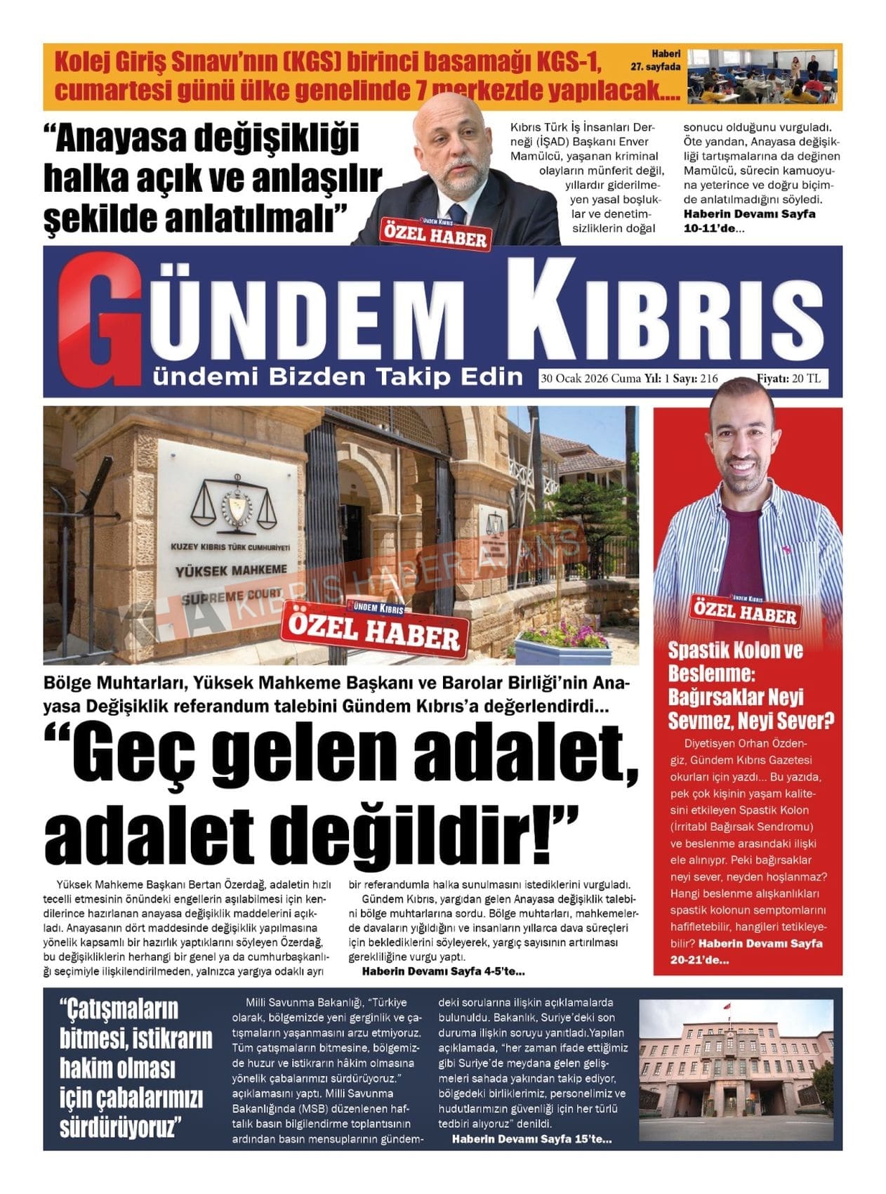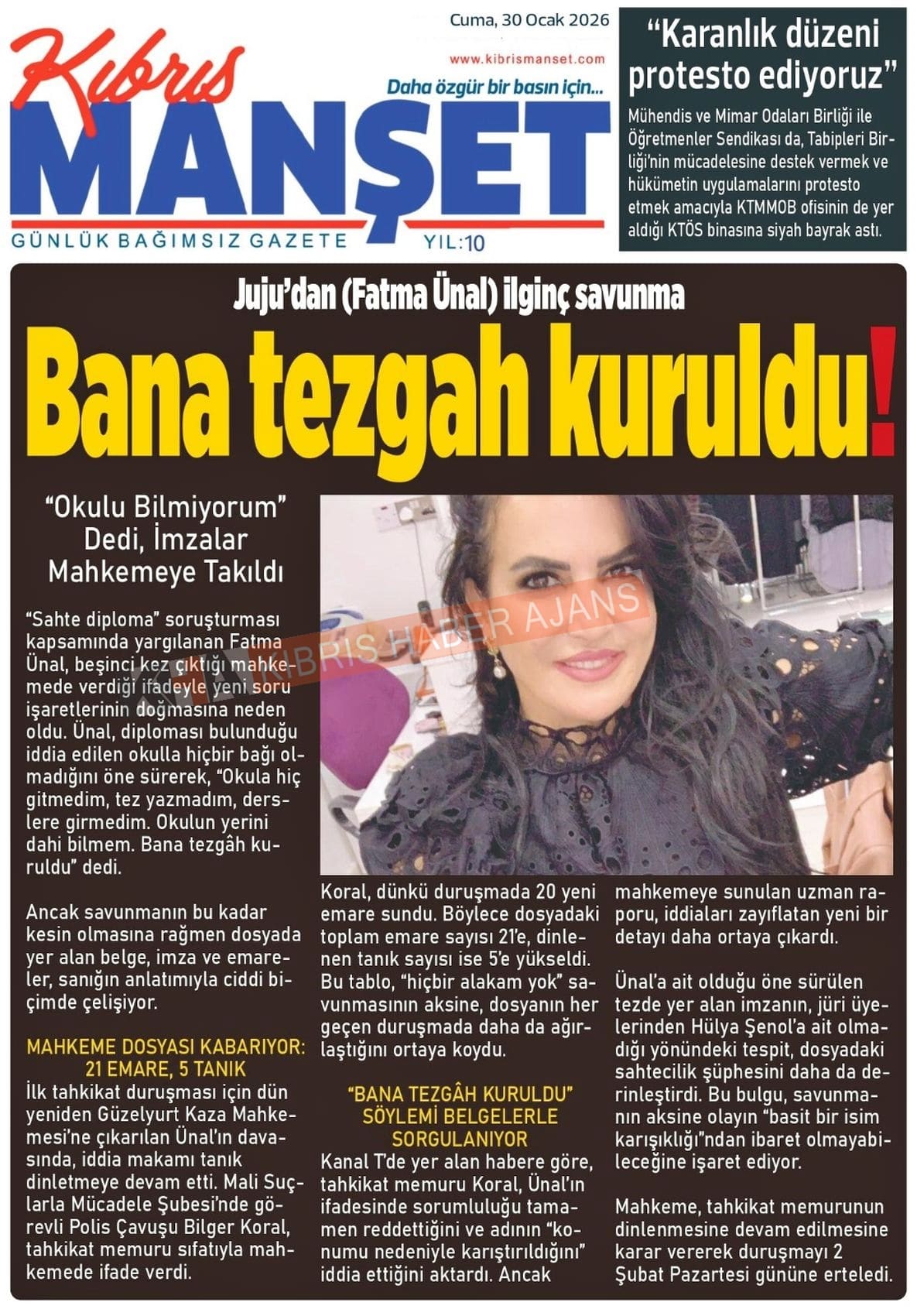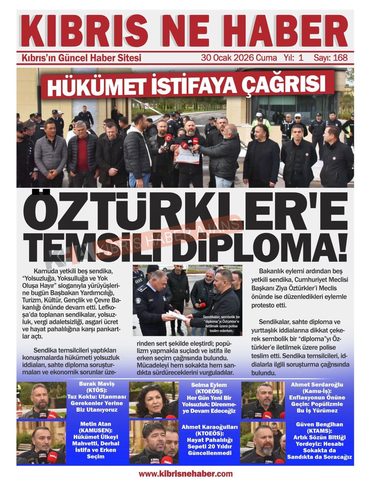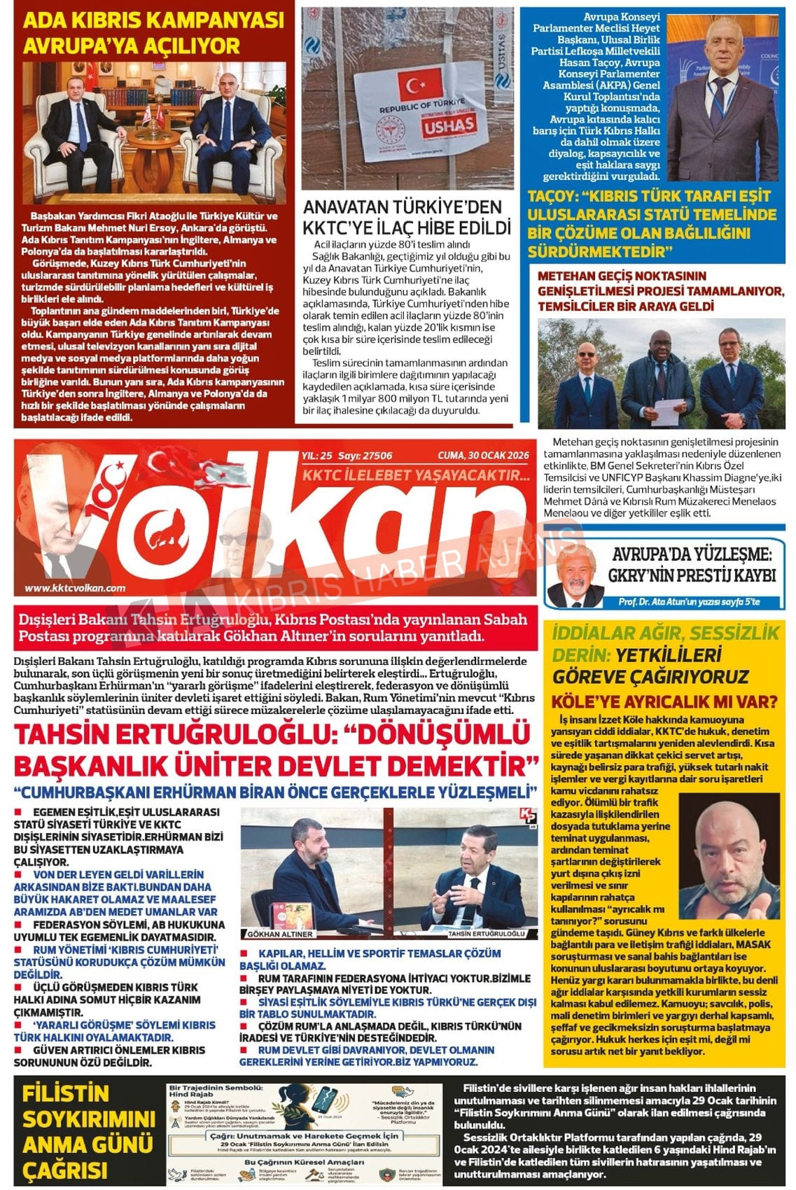 KIBRIS-TÜRKİYE Gazetelerinde Günün Manşetleri (30 OCAK 2026)