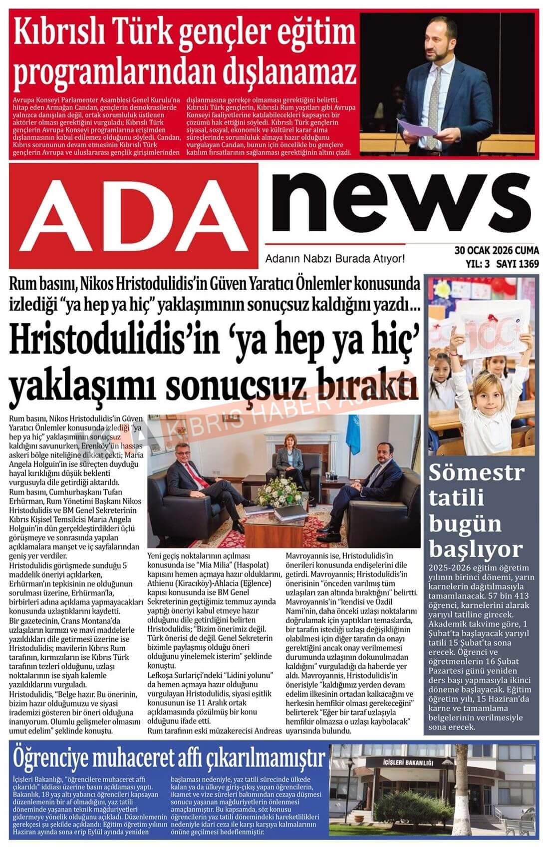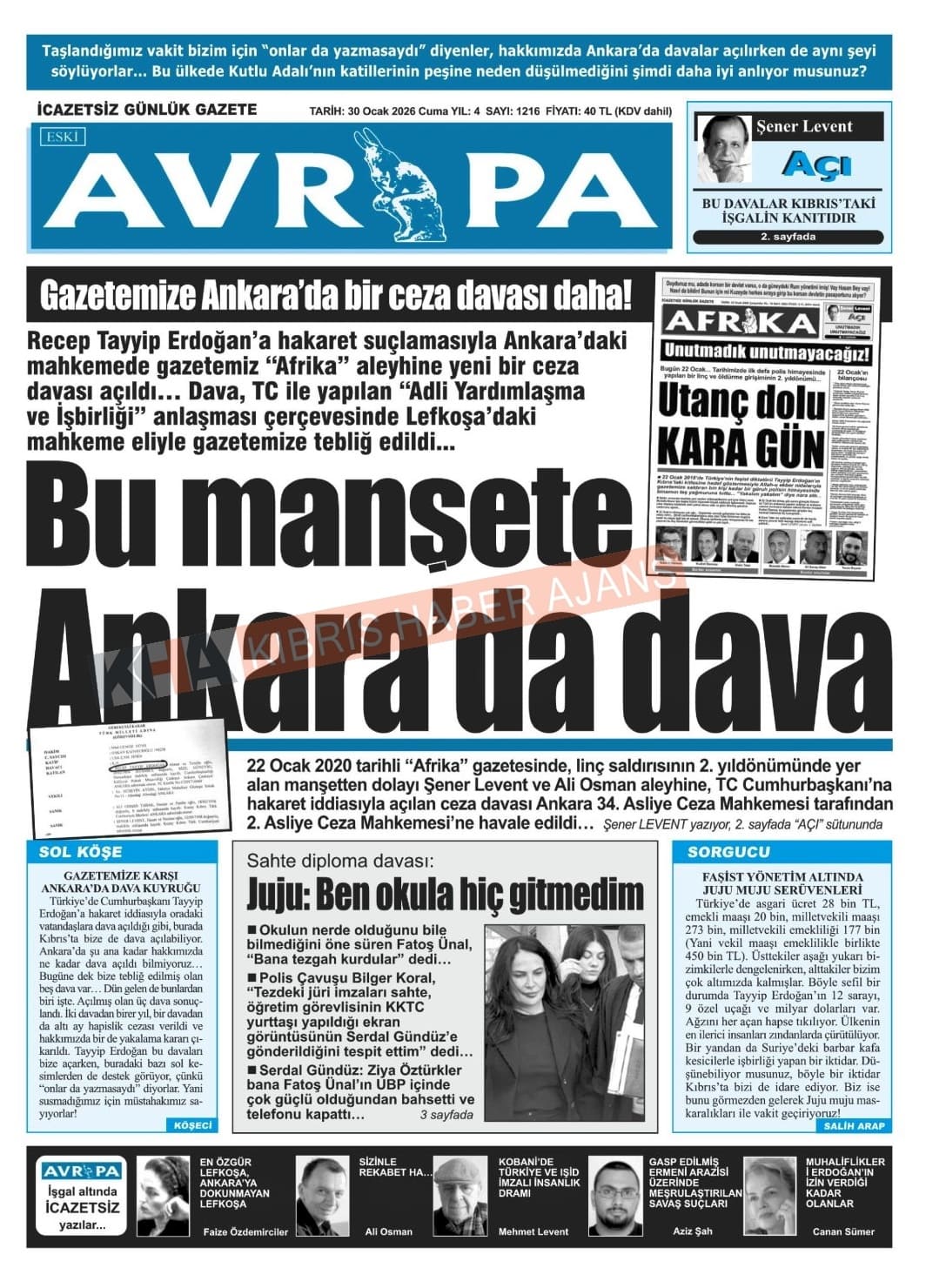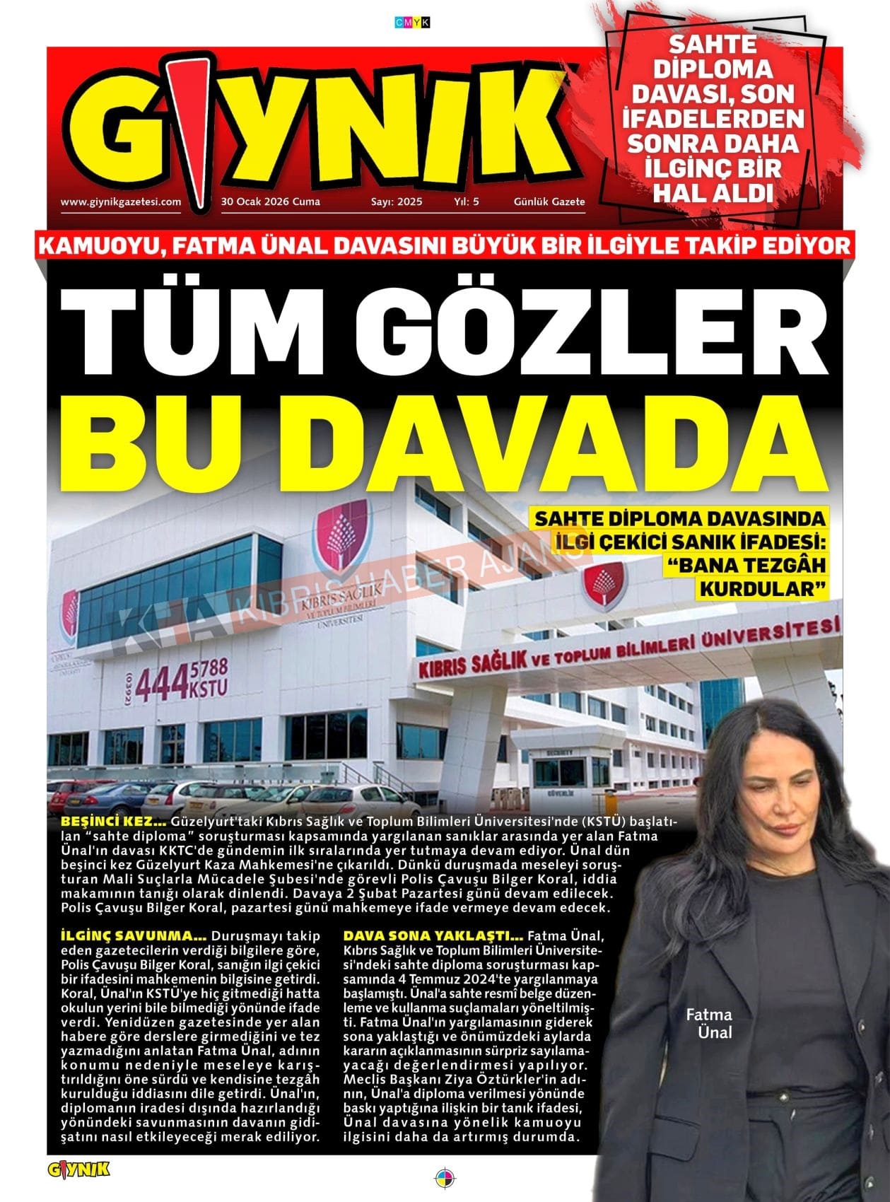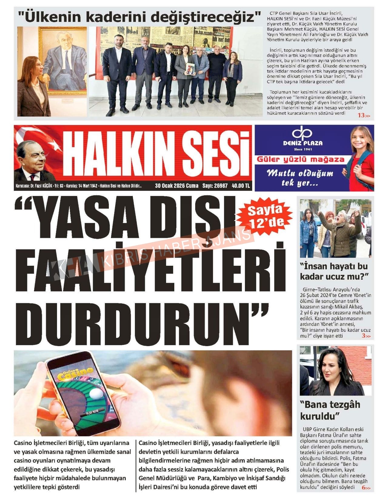 KIBRIS-TÜRKİYE Gazetelerinde Günün Manşetleri (30 OCAK 2026)