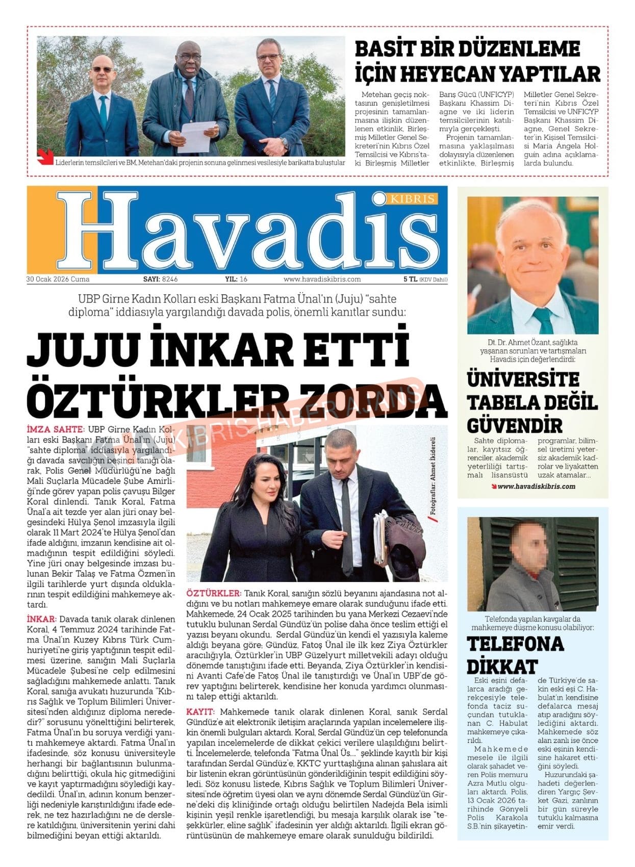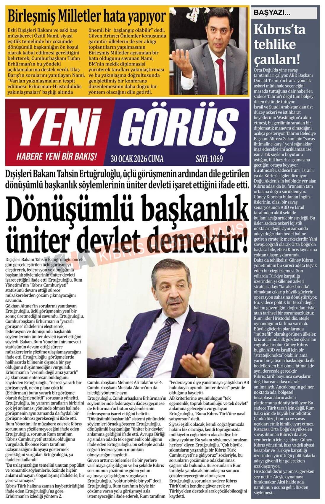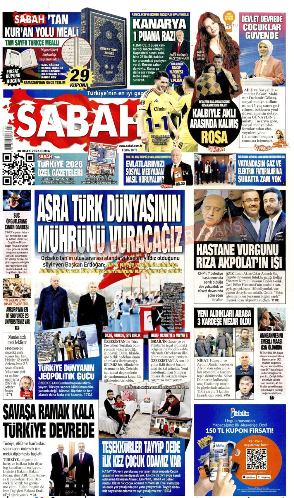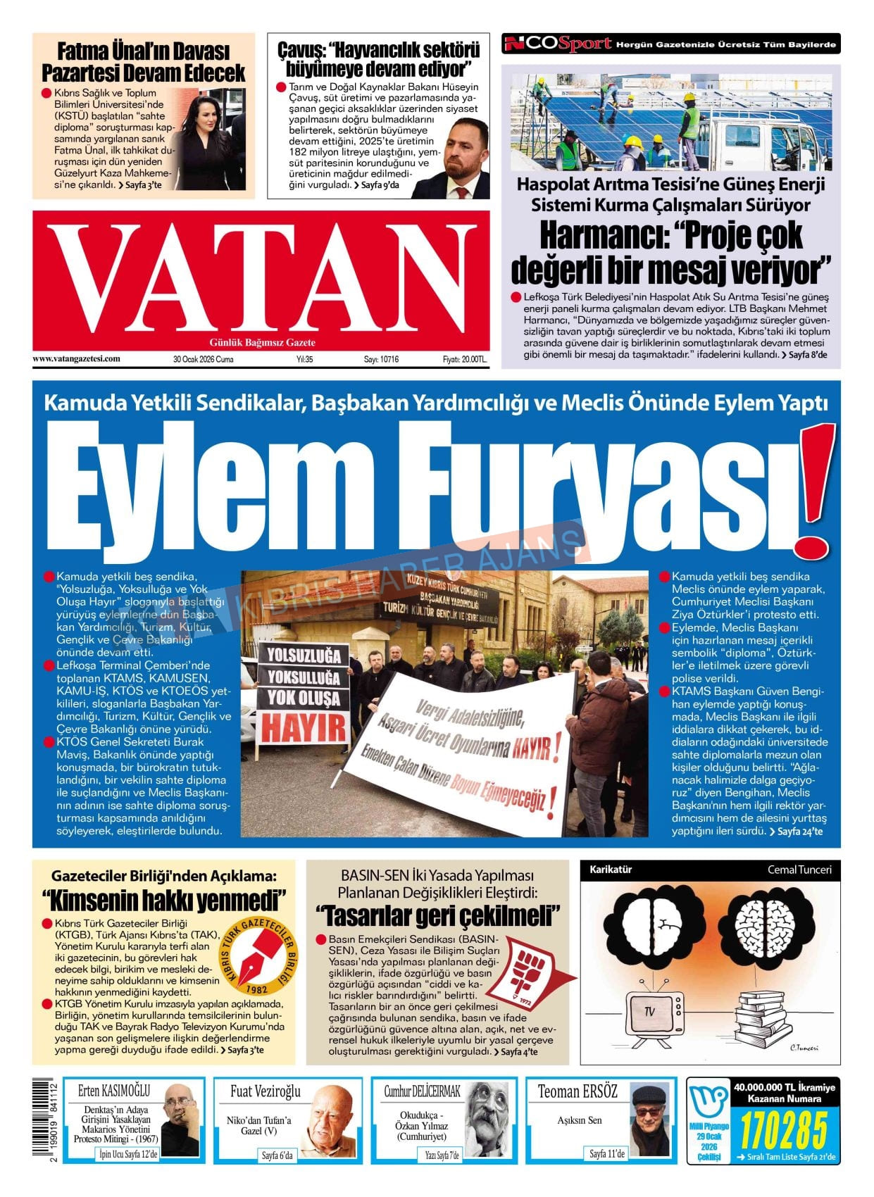 KIBRIS-TÜRKİYE Gazetelerinde Günün Manşetleri (30 OCAK 2026)