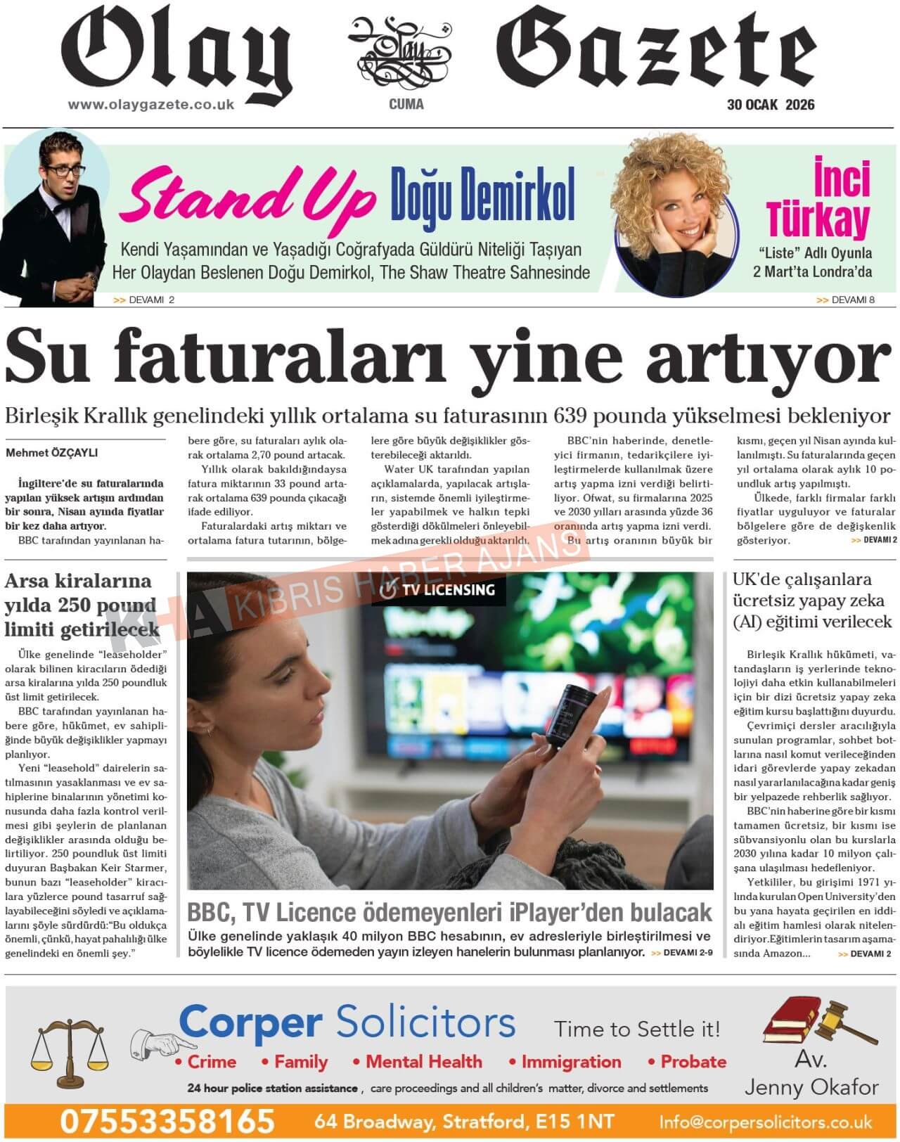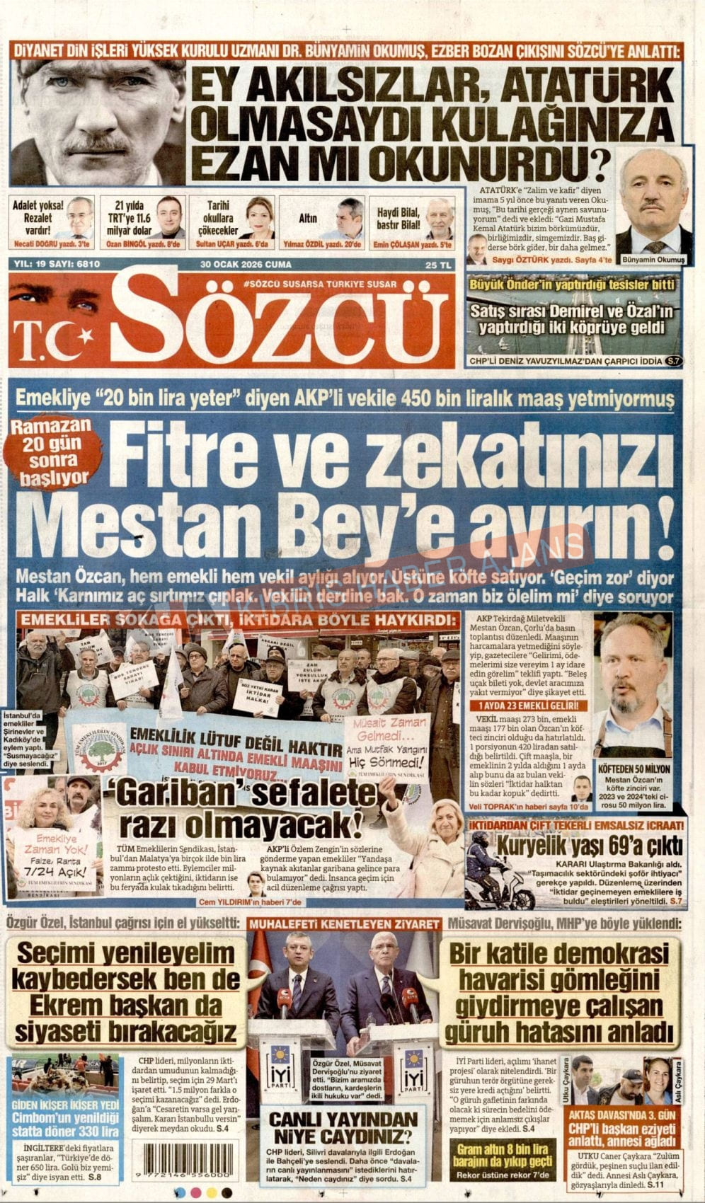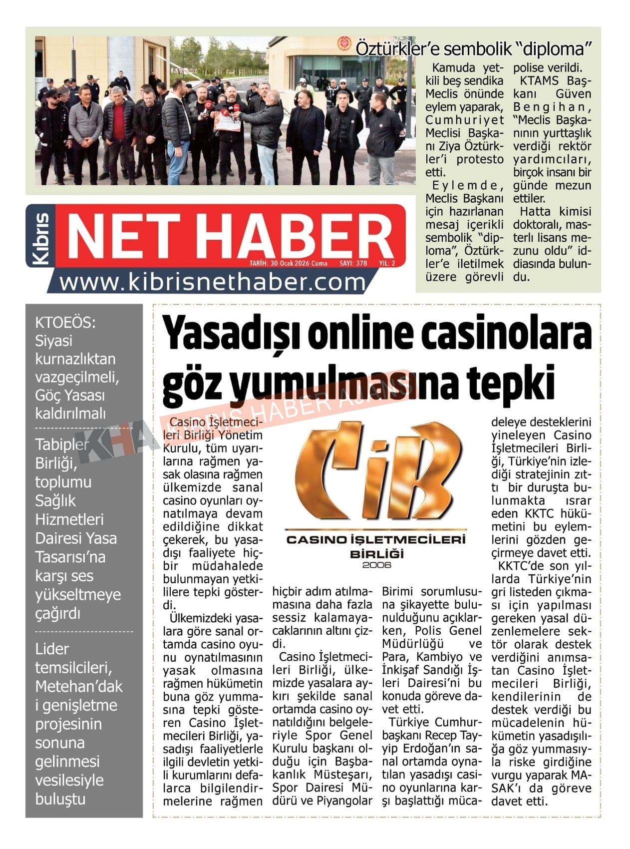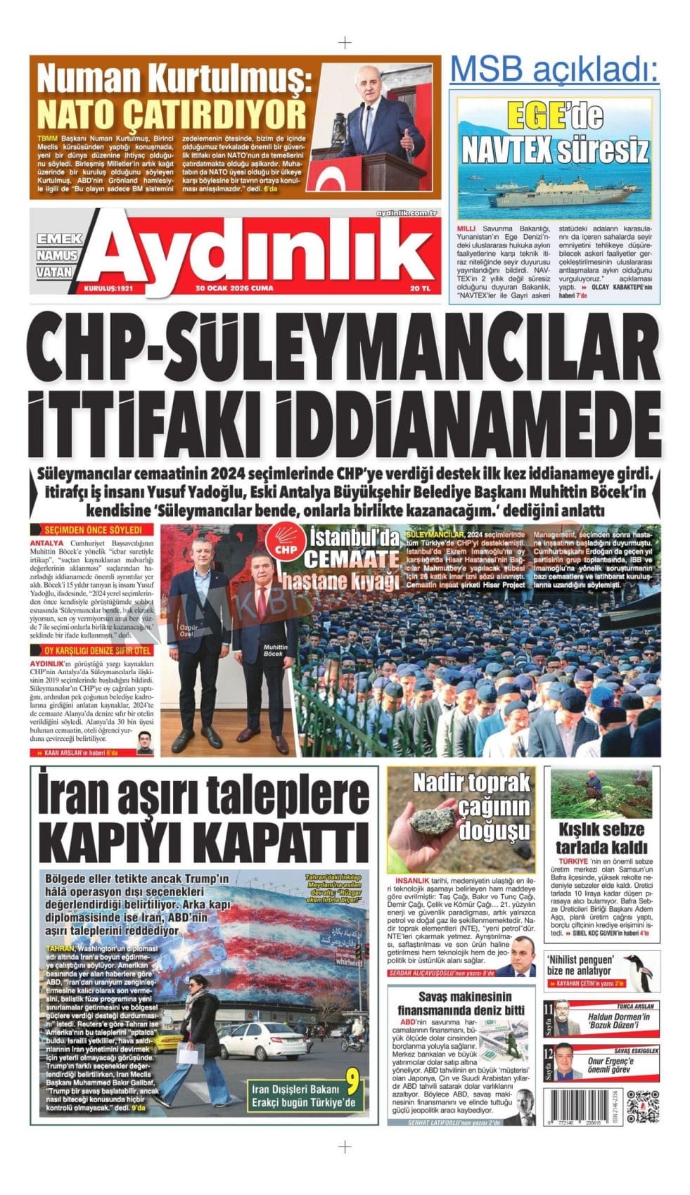 KIBRIS-TÜRKİYE Gazetelerinde Günün Manşetleri (30 OCAK 2026)