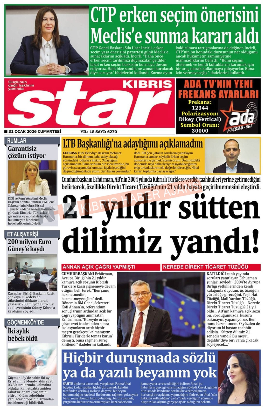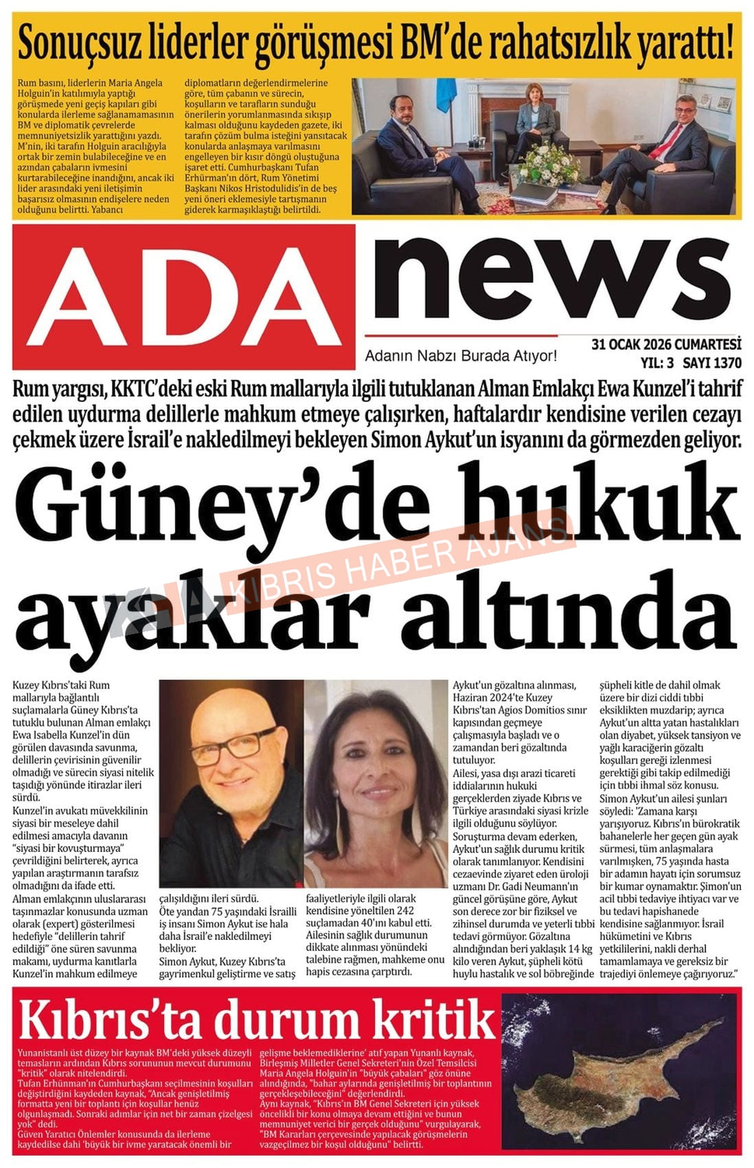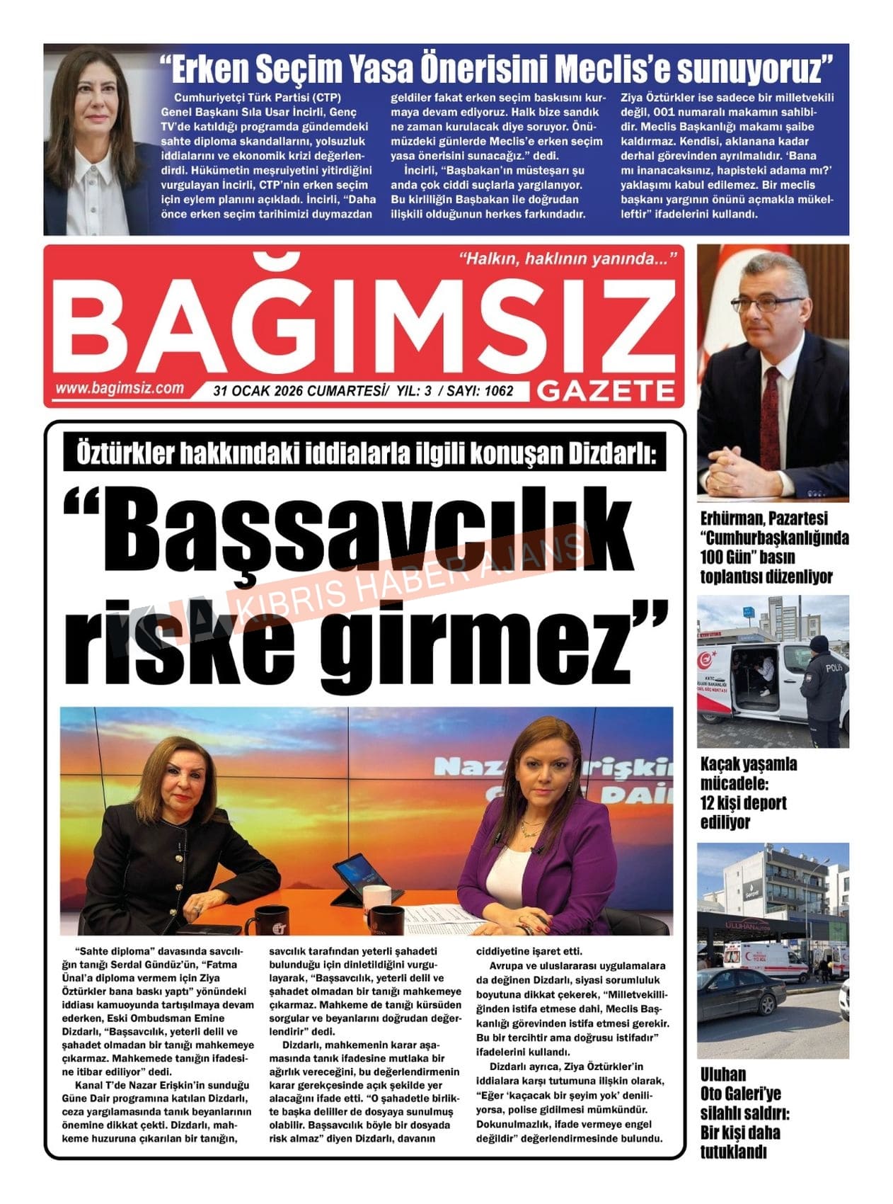 Sitede yayınlanan gazetelerdeki içeriklerden gazete sahipleri sorumludur. Yayınlanan gazeteler ve içeriklerinden Kıbrıs Haber Ajans ve Ajans Cyprus sorumlu tutulamaz.