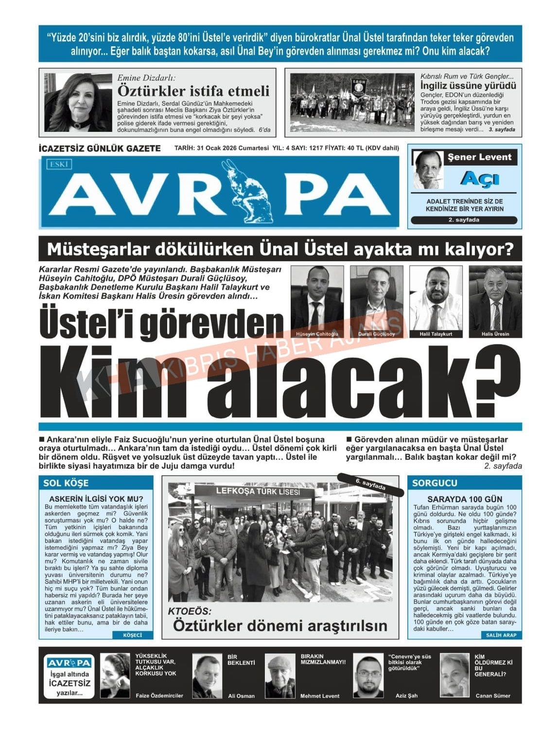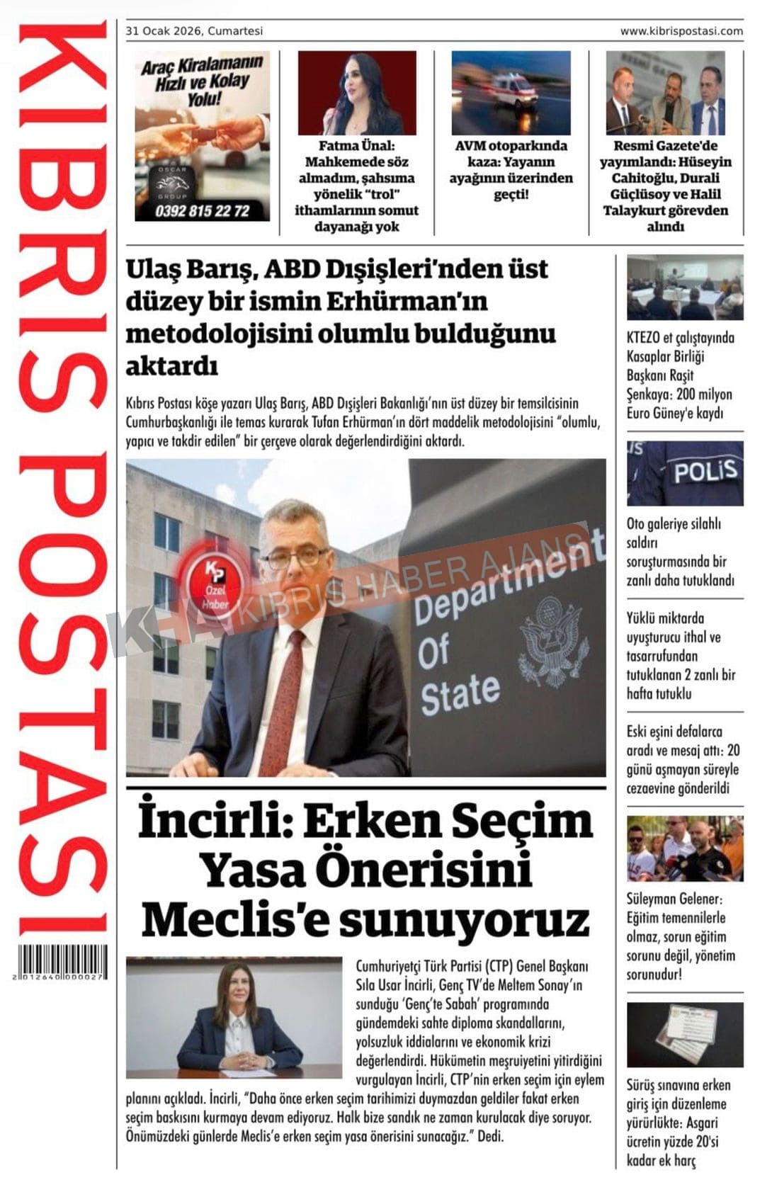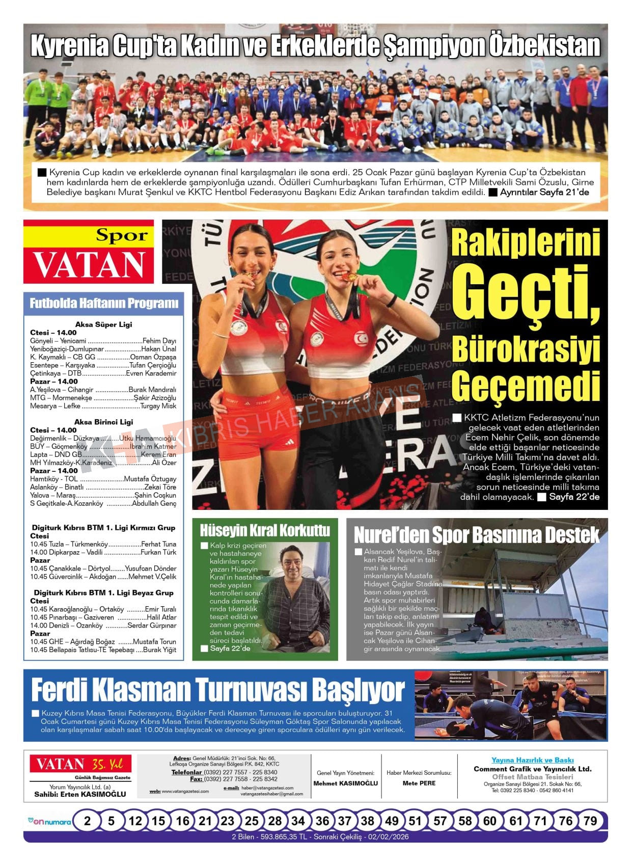 Sitede yayınlanan gazetelerdeki içeriklerden gazete sahipleri sorumludur. Yayınlanan gazeteler ve içeriklerinden Kıbrıs Haber Ajans ve Ajans Cyprus sorumlu tutulamaz.