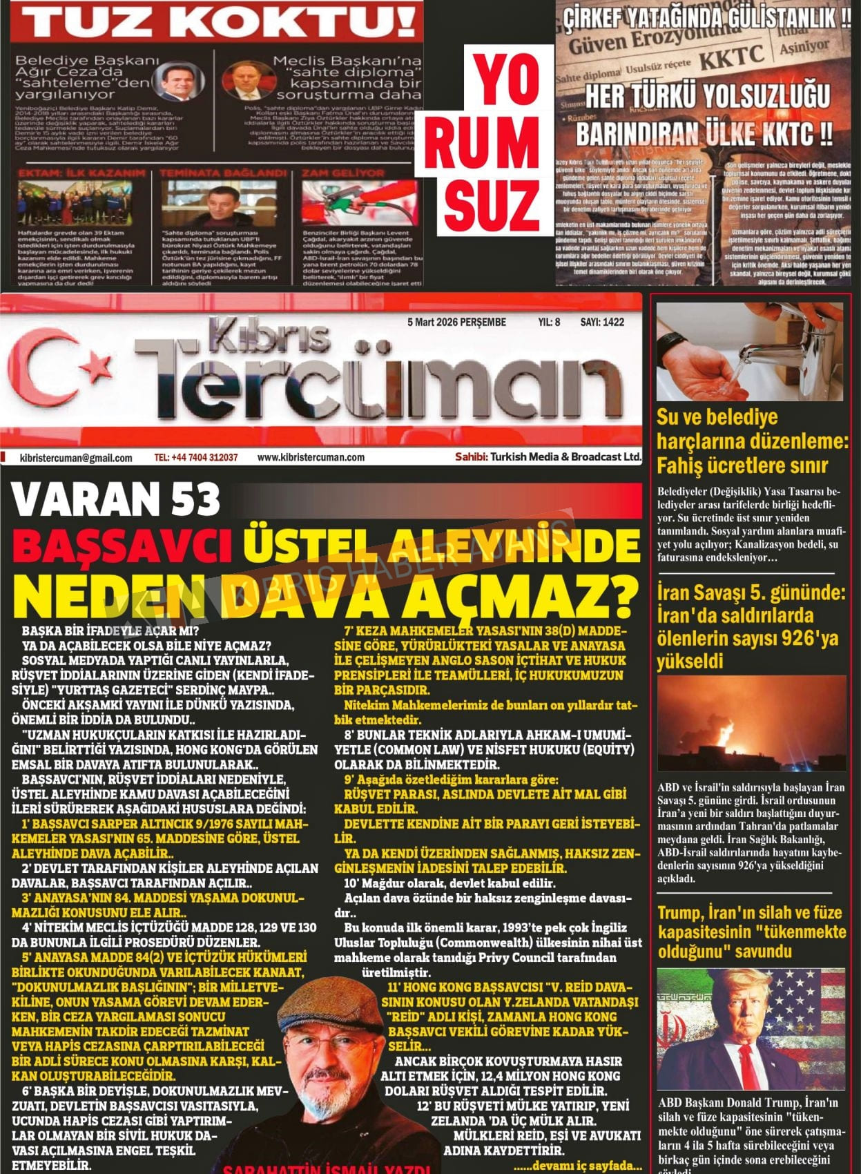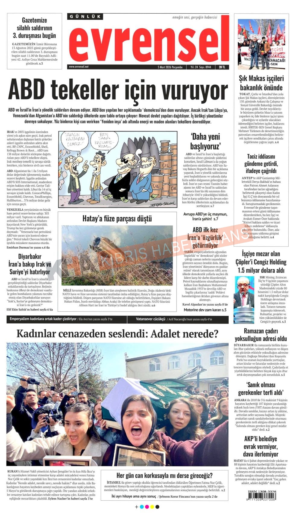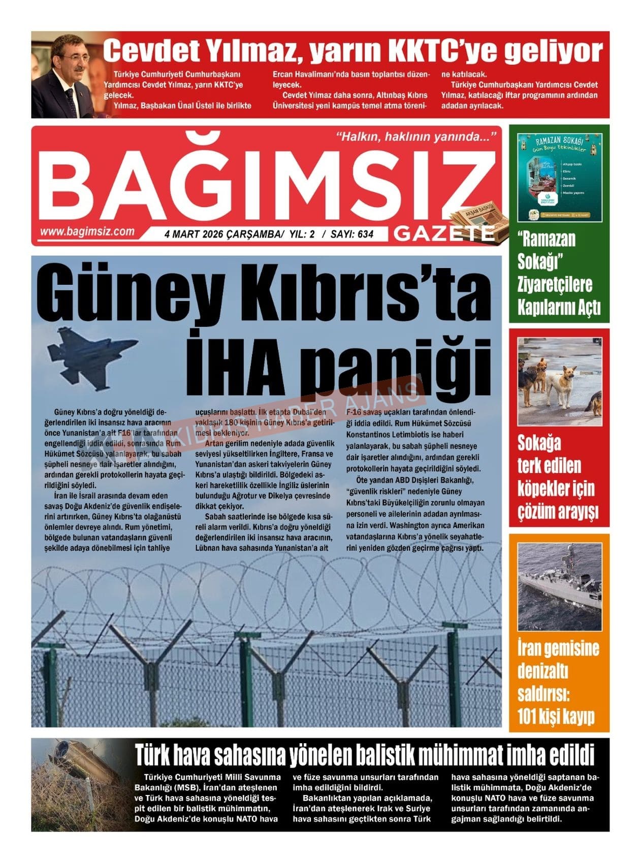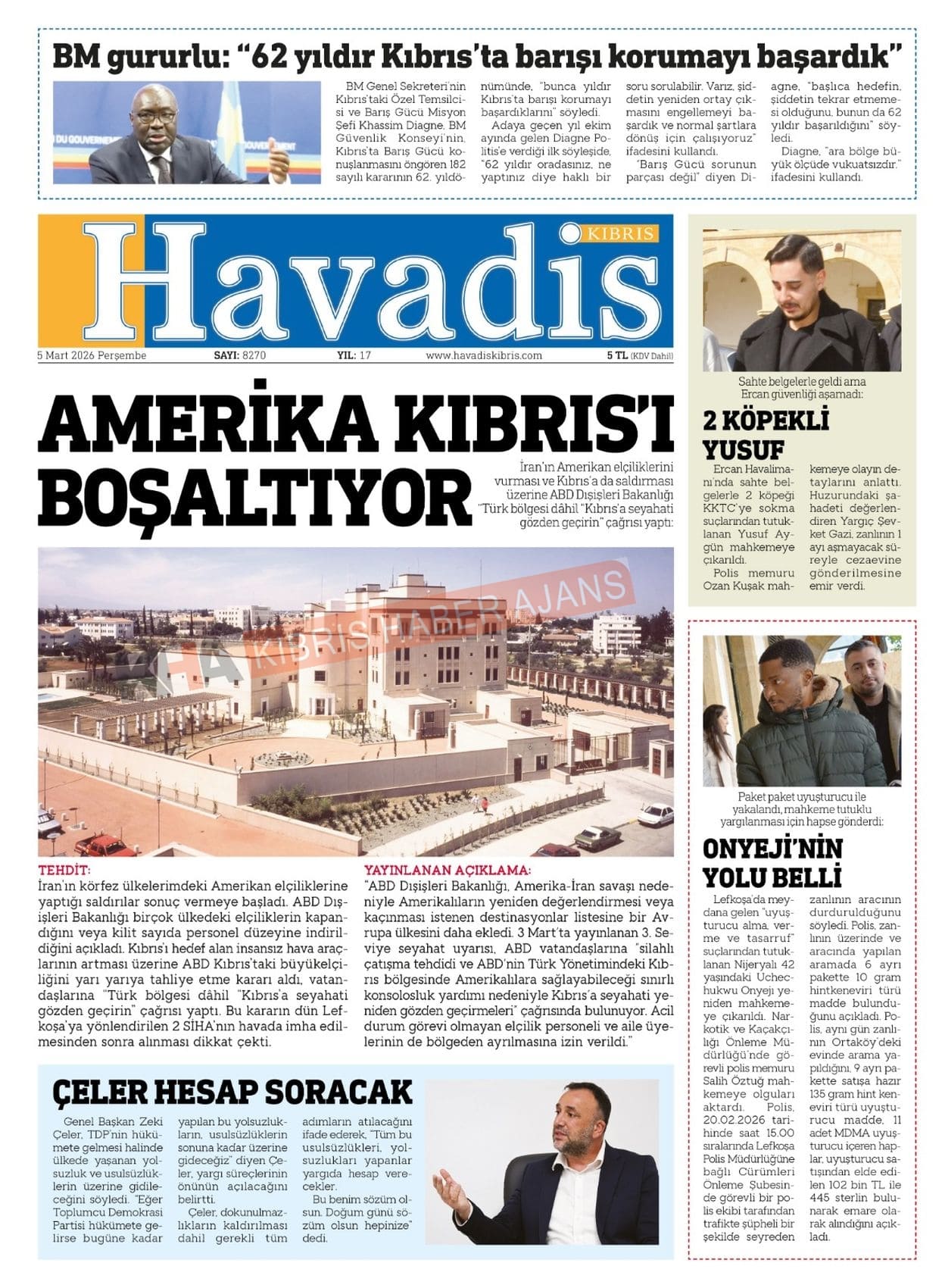 Sitede yayınlanan gazetelerdeki içeriklerden gazete sahipleri sorumludur. Yayınlanan gazeteler ve içeriklerinden Kıbrıs Haber Ajans ve Ajans Cyprus sorumlu tutulamaz.