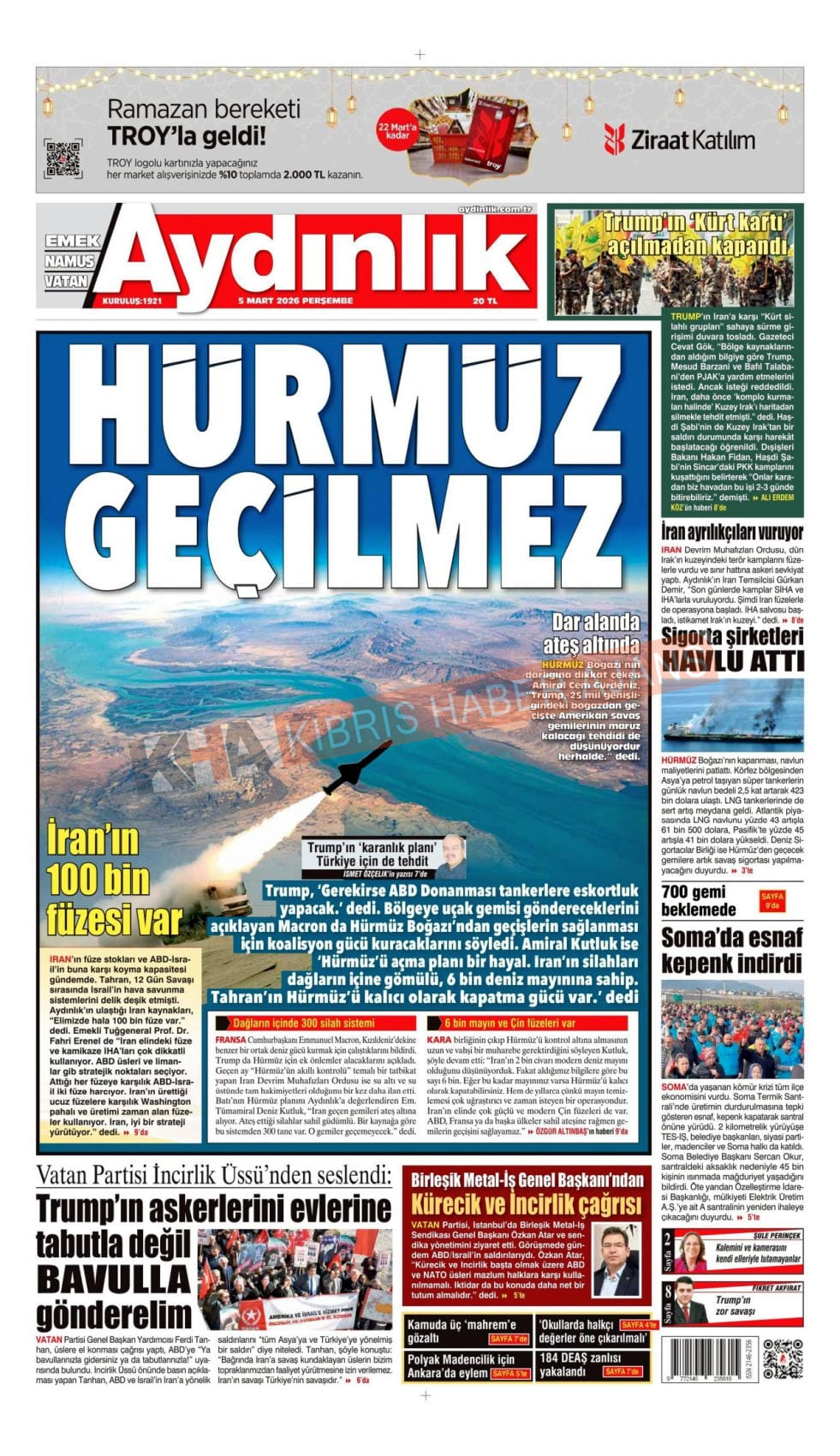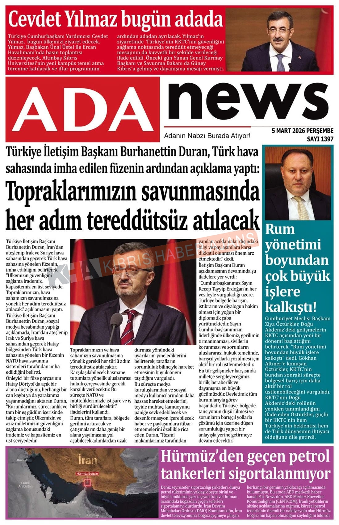 KKTC-TC Gazetelerinde Bugün (05 MART 2026) yazısı ilk önce Ajans Cyprus üzerinde ortaya çıktı.
