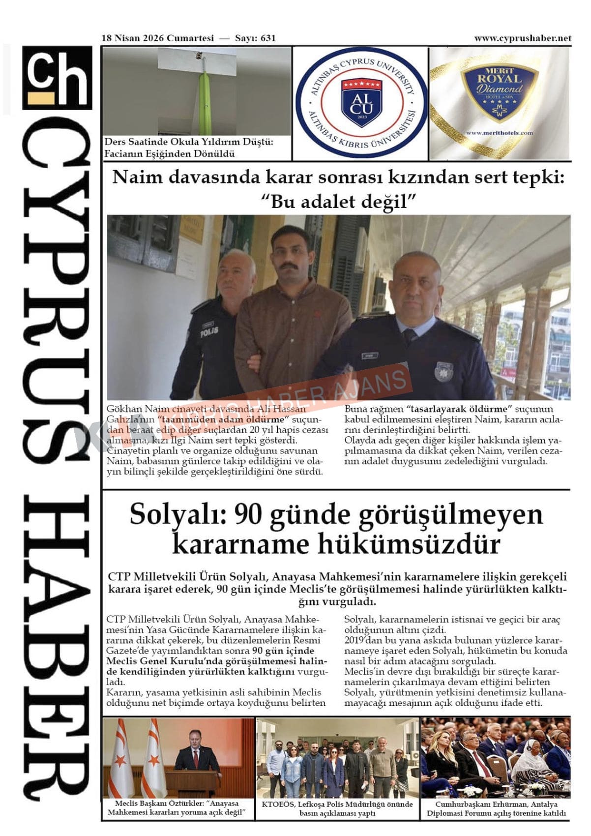 Sitede yayınlanan gazetelerdeki içeriklerden gazete sahipleri sorumludur. Yayınlanan gazeteler ve içeriklerinden Kıbrıs Haber Ajans ve Ajans Cyprus sorumlu tutulamaz.