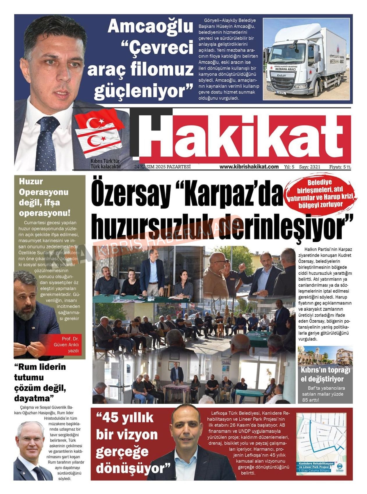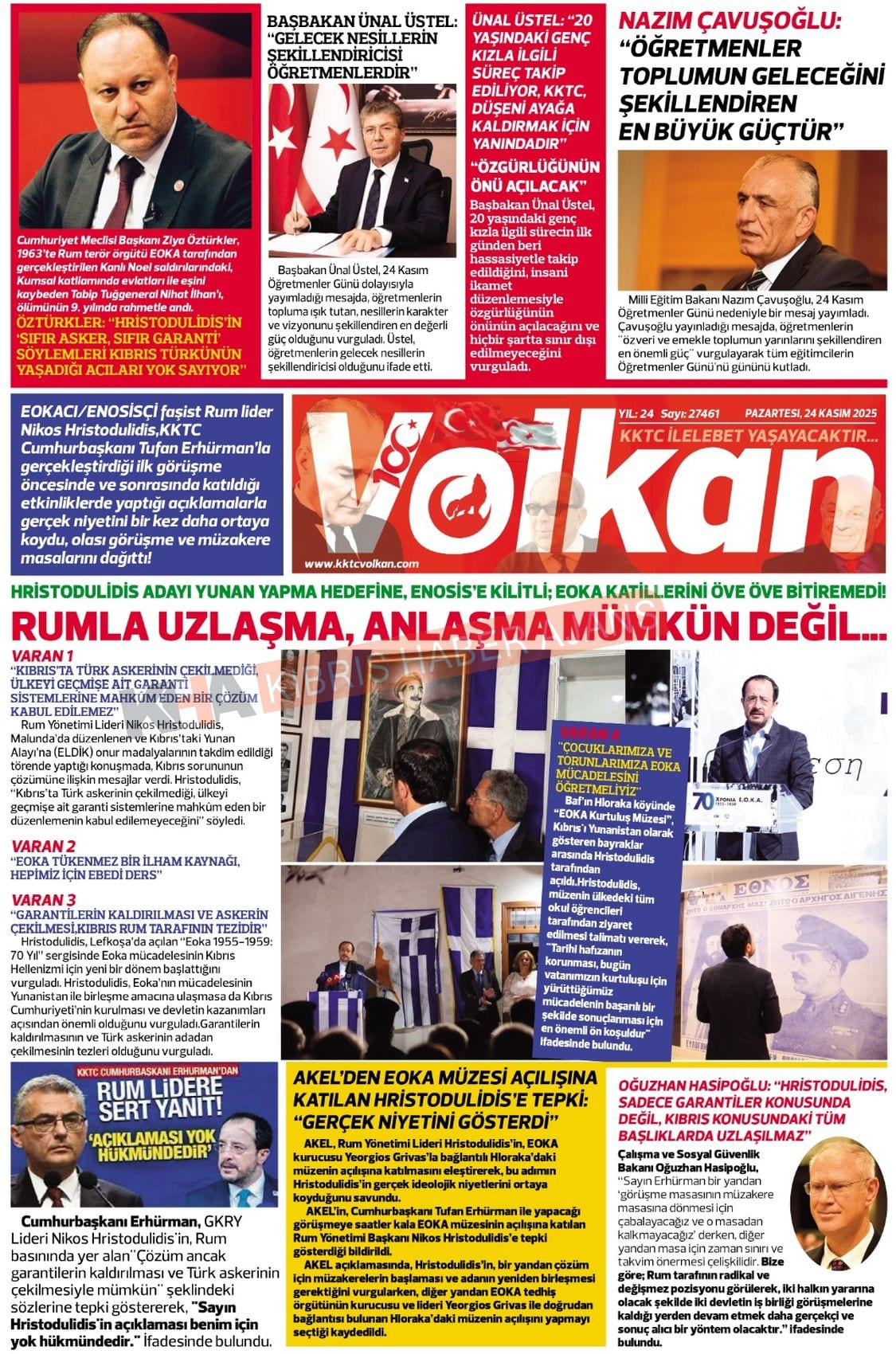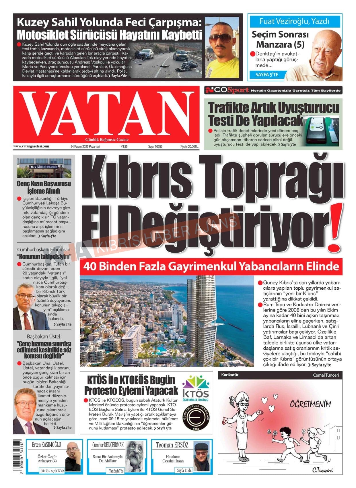 KKTC-TC Gazetelerinde Bugün (24 Kasım 2025)